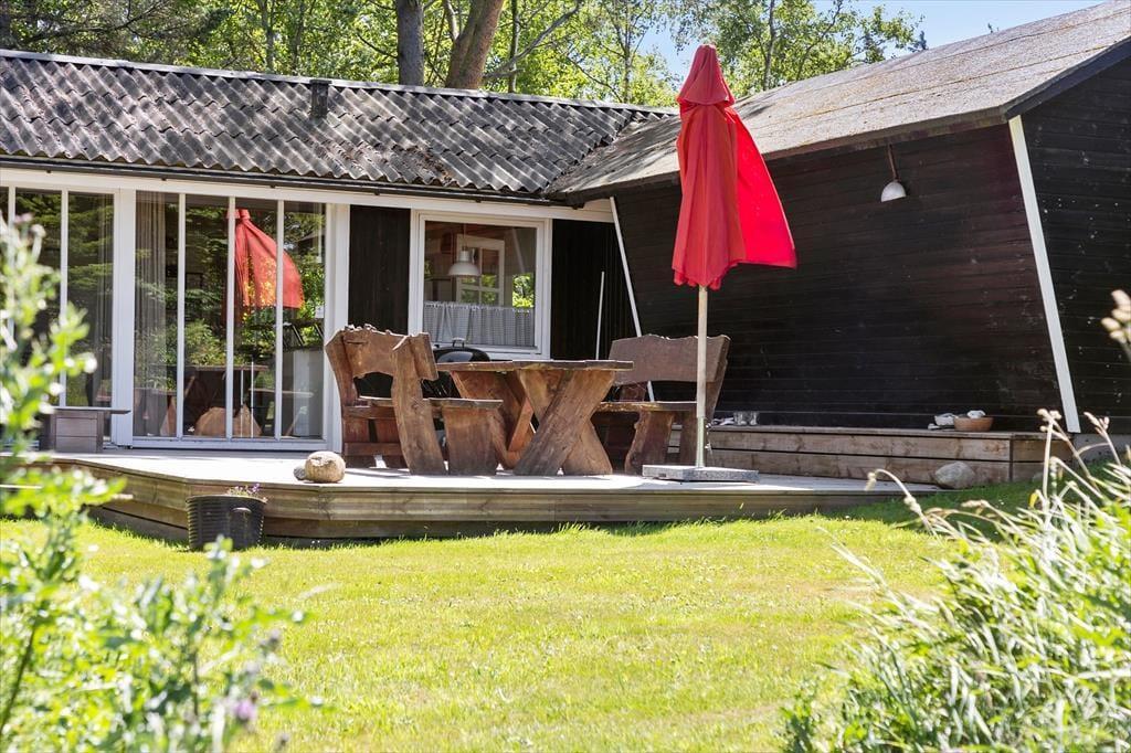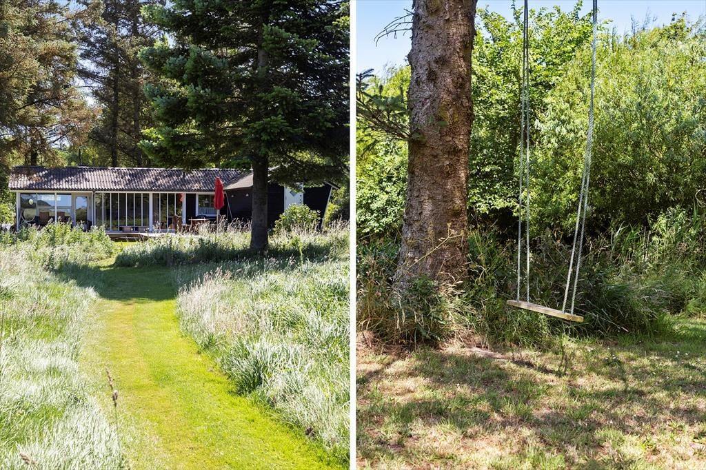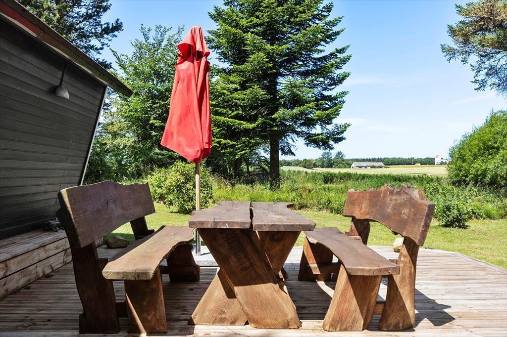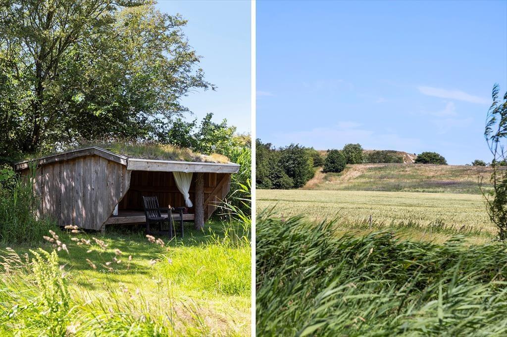 Udelivet kan nydes i fulde drag på den flotte terrasse, hvor I både kan fange solens stråler, dække op til morgenmad i det fri eller grille aftensmaden, mens duggen falder blidt over haven. Udsigten over det omkringliggende landskab skaber en følelse af ro og frihed – og det særlige shelter, som hører til huset, gør det muligt at tilbringe en nat under åben himmel, hvis I har lyst til en ferieoplevelse lidt ud over det sædvanlige. Haven er grøn og indbydende, og både børn og voksne vil hurtigt finde sig til rette her med leg, ro og måske en eftermiddagslur i solen.