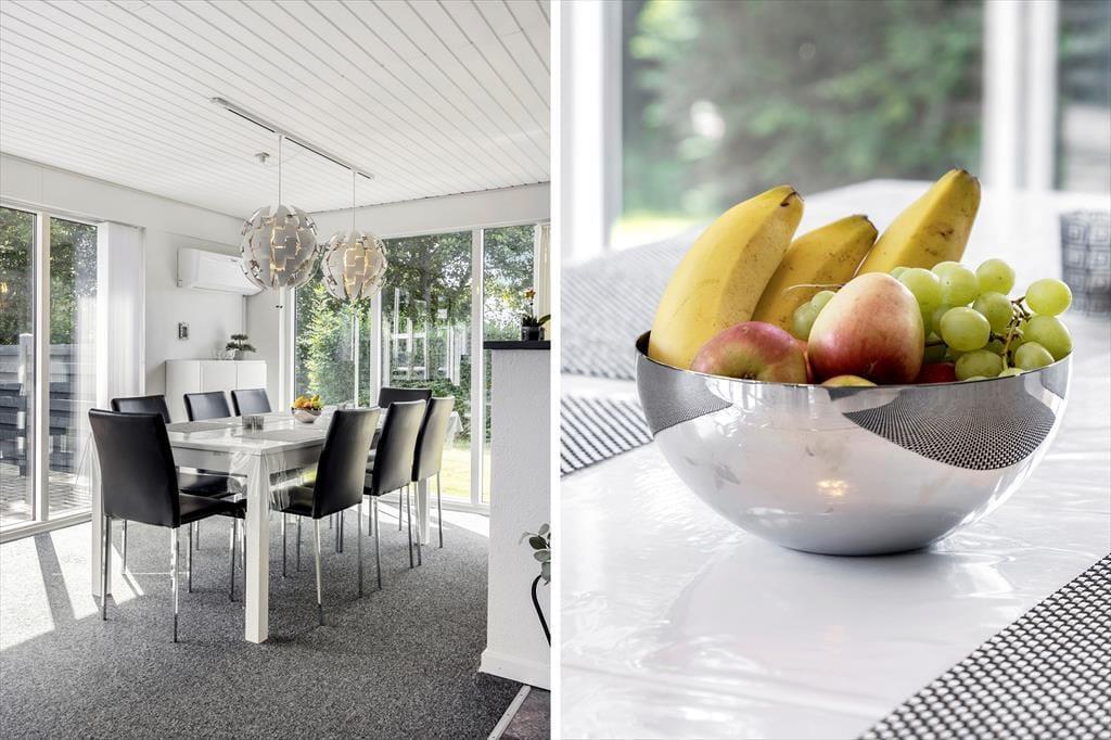 Sommerhuset har en fornuftig planløsning med to soveværelser, et badeværelse og en stue med integreret køkken, og dertil kommer et godt anneks, så det er muligt at være op til otte personer. To hunde er også velkomne inden døre, og mon ikke, at de også hurtigt kan føle sig hjemme i de lyse og enkelt indrettede rum. I stuen står der et fladskærms-tv med Chromecast, hvis aftenen indbyder til tilbagelænet afslapning i sofaen – og hvis du hellere vil løse krydsogtværs, strikke eller spille spil og hyggesnakke med familien ved spisebordet, kan det også sagtens lade sig gøre.