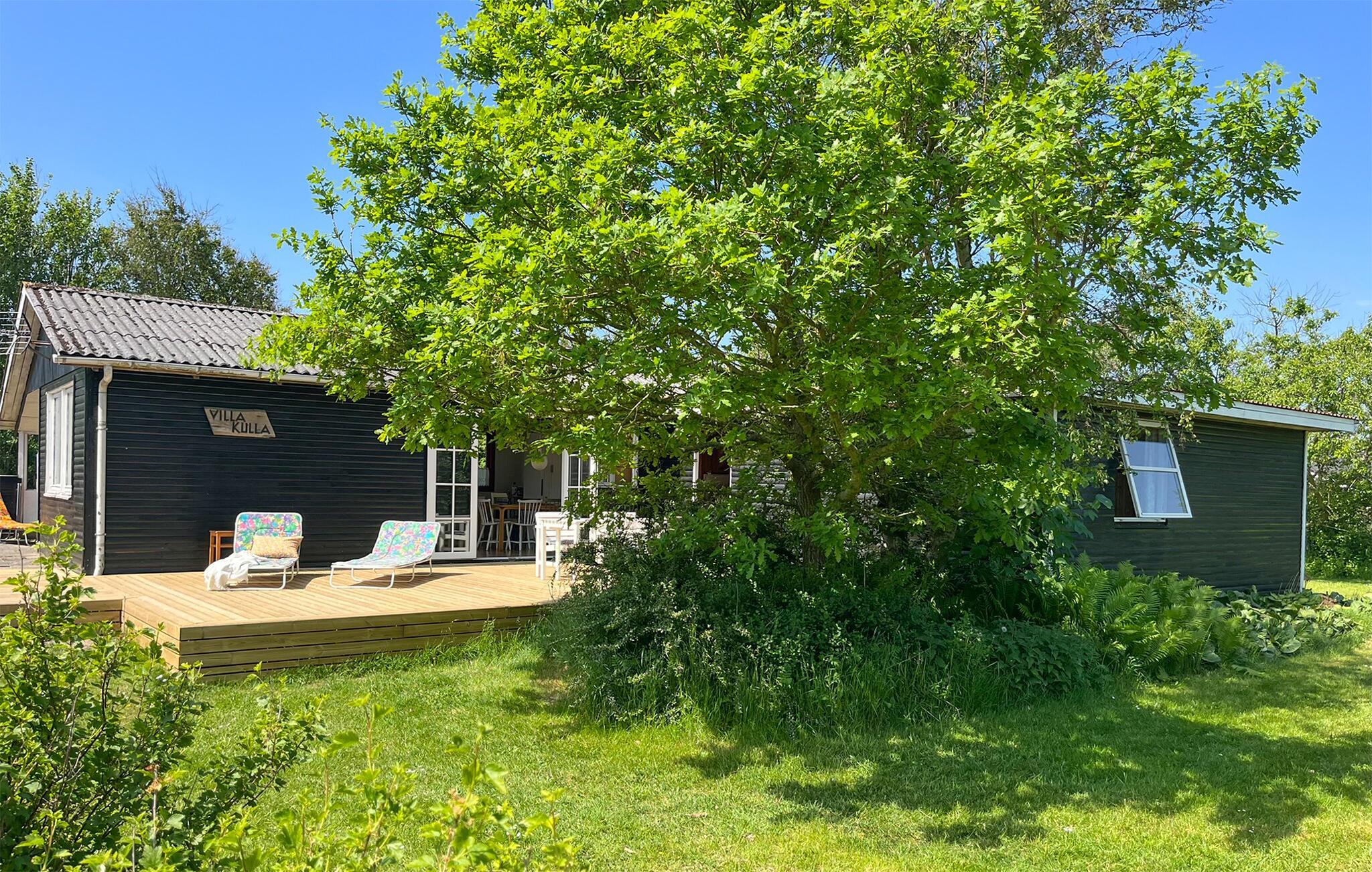 På de varme dage kan I nyde solen på den skønne træterrasse lige fra morgenstunden med en god kop kaffe. Dele af terrassen er overdækket, så I kan finde sol og skygge efter behov, mens børnene går på opdagelse på den store grund. Tilbered nogle lækre bøffer på grillen og nyd dem under aftensolen, mens I lægger planer for de kommende dage.