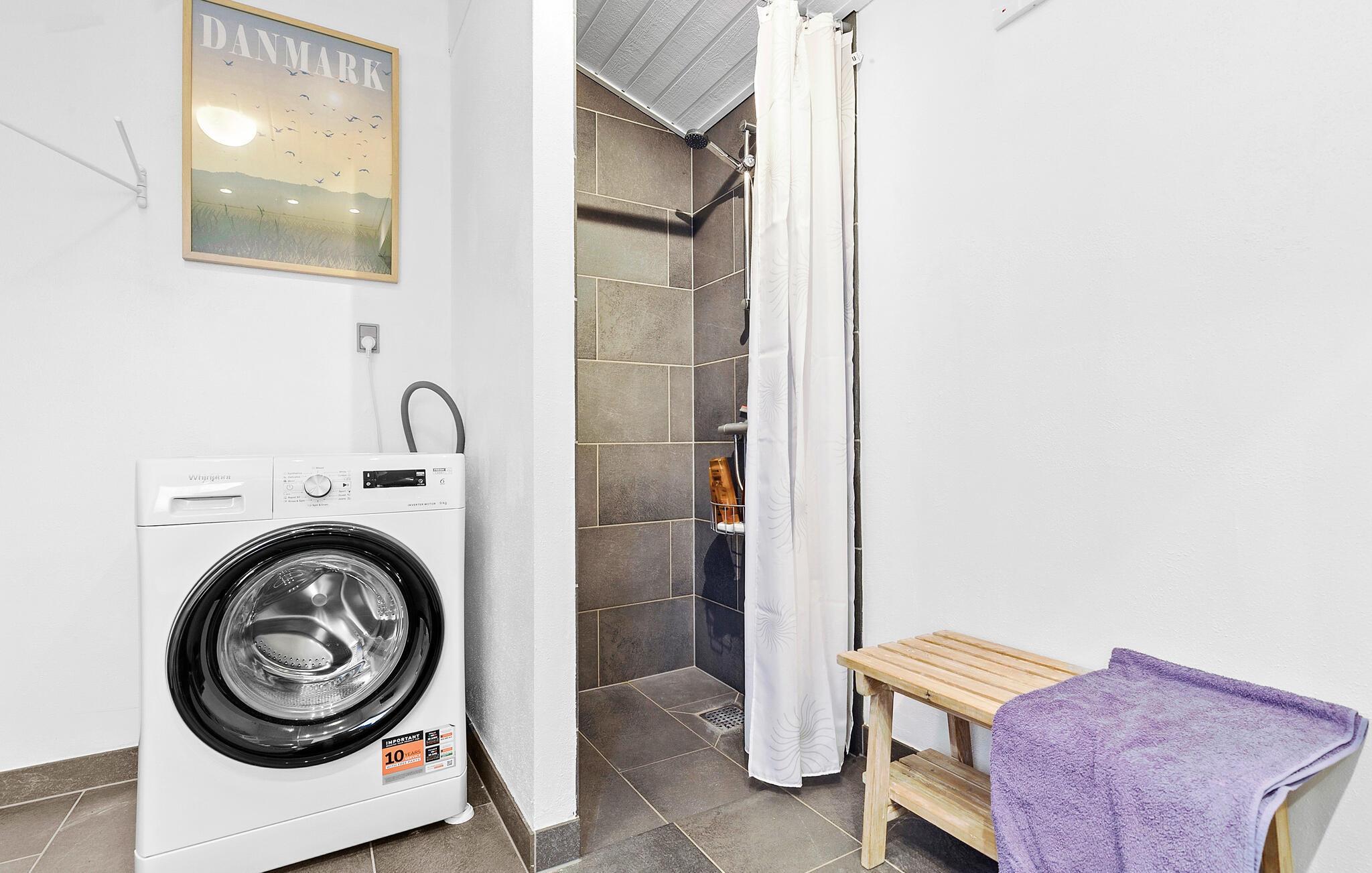 Lige syd for Ebeltoft ligger dette hyggelige og velholdte træhus, der danner rammen om en herlig familieferie tæt på stranden. Indretningen fremtræder varmt og velholdt med tydelige træelementer, et flot lysindfald og gode indretningsløsninger. Hyg jer med dagens gøremål i køkkenet - tag jer god tid med madlavningen, spil kort ved spisebordet eller find jer godt til rette i sofaen med en god bog eller en spændende podcast. På de varme dage kan I nyde måltiderne ude på terrassen, inden I fyrer op i vildmarksbadet og glider ned i de varme bobler under stjernehimlen. I har flere terrasser at vælge mellem, så I kan finde sol, skygge og læ efter behov i løbet af dagen.