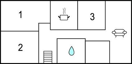 Soveværelse (nr. 3) - 1 Soveplads. (Enkeltseng(e)). 2 Sovepladser. (Dobbeltseng(e)).