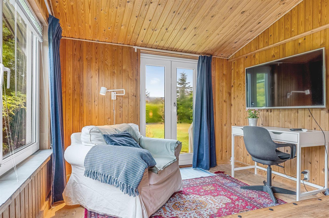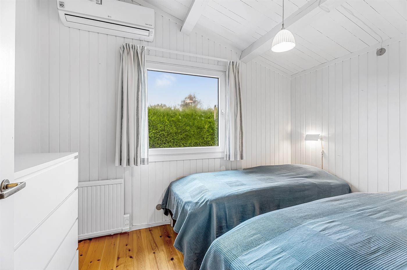 Der er i alt 2 soveværelser. Sovepladserne fordeler sig på: 2 sovepladser i køjeseng.2 sovepladser i elevationssenge. 2 sovepladser i sovesofa (dobbelt). 2 af disse sovepladser befinder sig i stuen.