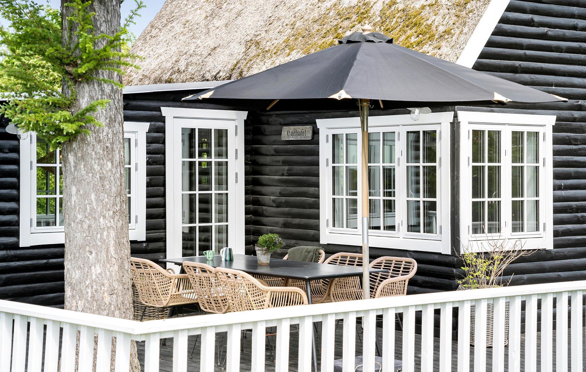 Det skønne stråtagshus direkte ved stranden i Faxe Ladeplads er et rigtigt blikfang. Det byder på en indbydende stemning og talrige muligheder for idylliske udflugter. Start dagen med en fælles morgenmad, og planlæg dagens aktiviteter. Brændeovnen i stuen sørger for ekstra hygge, så I kan slappe af efter alle kunstens regler på den komfortable sofa. Også den rummelige terrasse byder på masser af plads til at slappe af. Og takket være det store spisebord kan I også nyde jeres måltider udendørs, når vejret er godt.