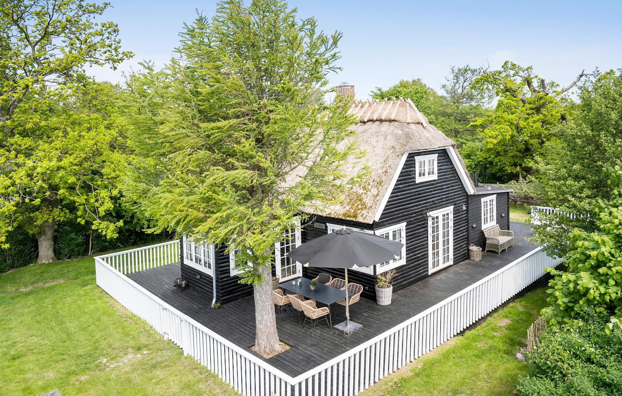 Charmerende stråtagshus ved stranden i Faxe Ladeplads