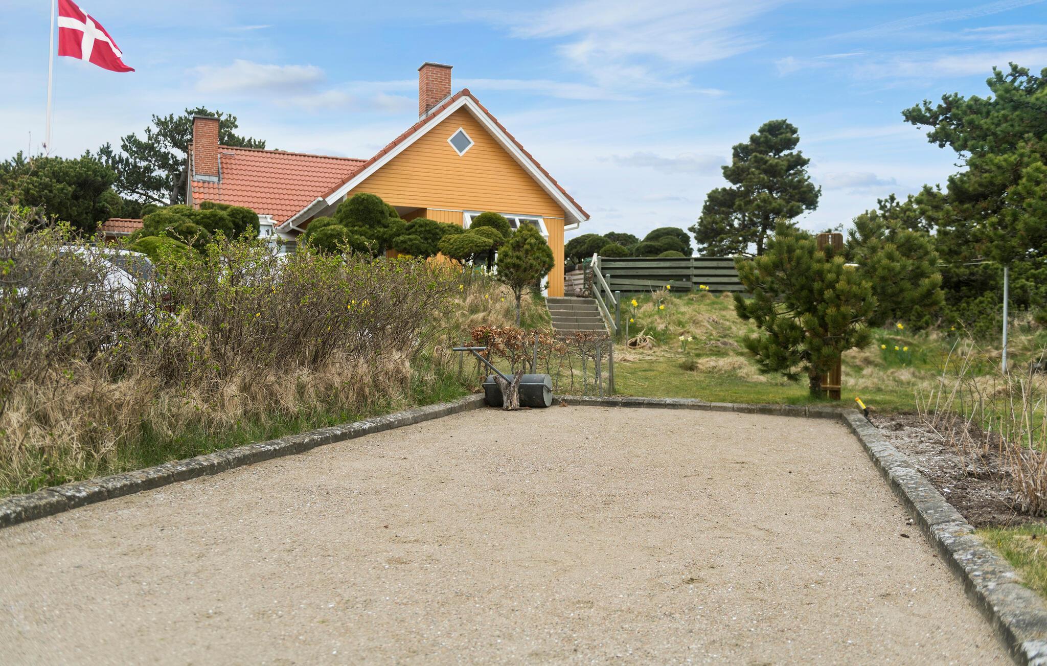 Dette charmerende sommerhus byder jer velkommen i en rolig og beskyttet beliggenhed. Den rummelige ejendom ligger lige ud til klitterne og tilbyder de bedste betingelser for en afslappende ferie med familien. Oplev det stilfulde interiør med kærligt afstemte detaljer. I opholdsstuen indbyder et stort sofahjørne til at blive hængende, hvor brændeovnen sørger for hyggelig varme på kølige dage. Nyd hyggelige timer med spil, gode samtaler eller en kop te med udsigten udenfor. På øverste etage finder I et ekstra retræterum under taget – lyst, roligt og med en smuk udsigt. Et sandt højdepunkt er det rummelige wellness-område med spabad og sauna.