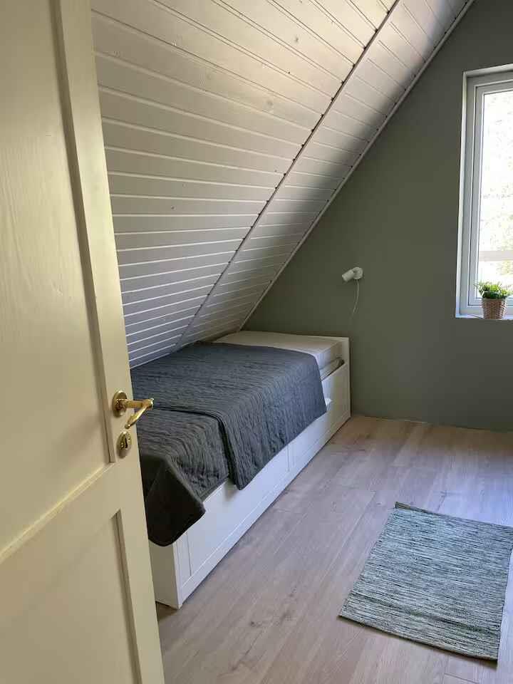 Sommerhus kun 500 meter til vandet Tag hele familien med til denne fantastiske bolig med masser af plads til sjov og ballade. Masser af plads til den store familie eller flere familier som er på ferie sammen. Det 5. soveværelse er i annex i haven Der skal afregnes for forbrug til ejer ved afgang udover lejen. 3,5kr/0,5€ pr. KWh, vand med 20 kr/3€. pr døgn. Afregnes til ejer ved afrejse. Der er vildmarksbad i haven som man kan gøre brug af. Det koster 300kr/45€ af benytte vildmarksbadet udover lejen af huset. Afregnes til ejer ved afrejse Vi lejer ikke ud til ungdomsgrupper.