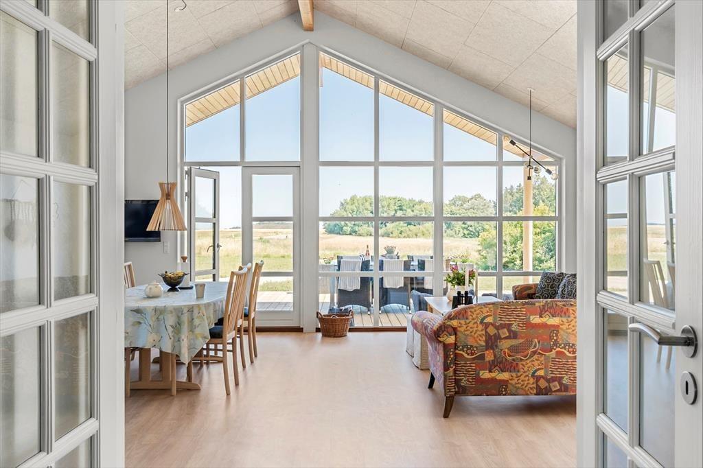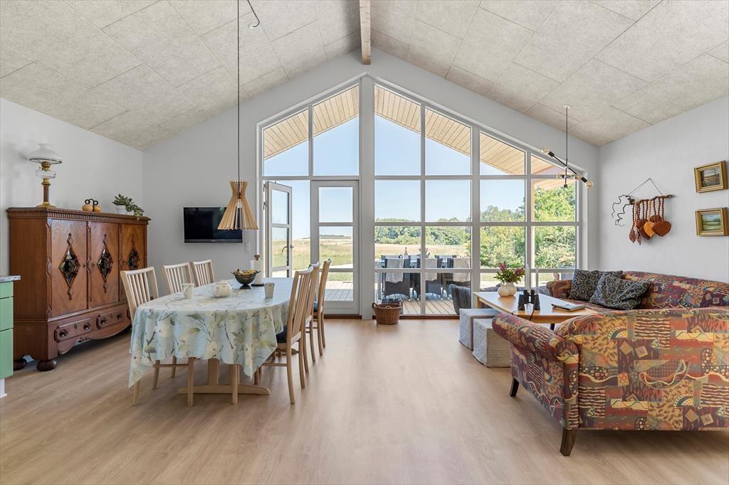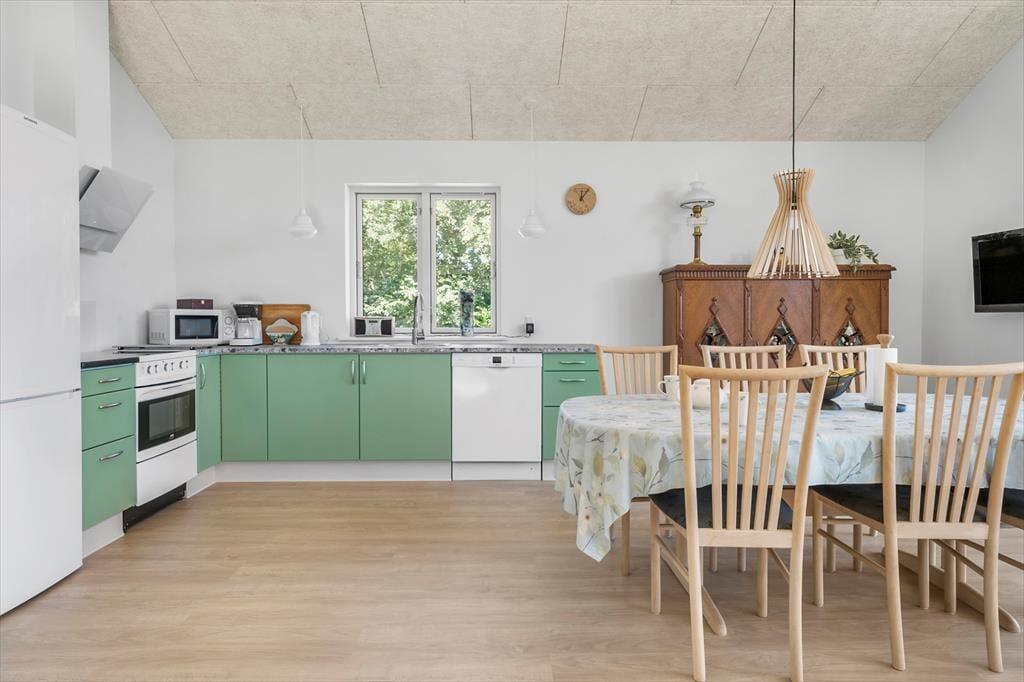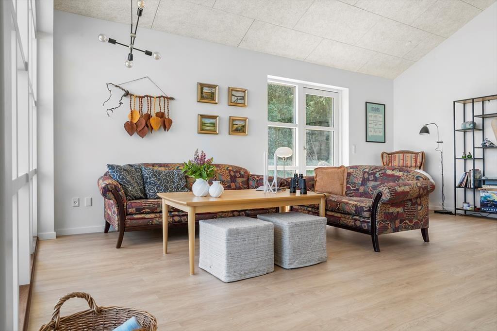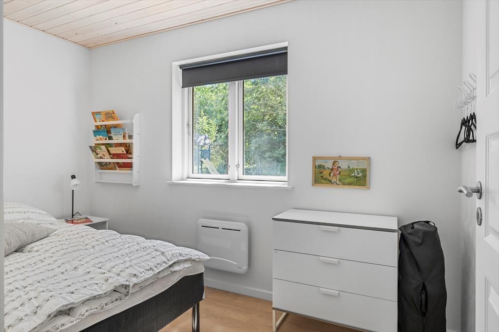 Sommerhuset er opført i 2023, måler 87 m2 og har med sine tre soveværelser en glimrende planløsning til seks personer. Der er dobbeltseng på alle værelser, mens badeværelset er rummeligt og har både glasbruseniche og vaskemaskine. Et veludstyret køkken er integreret med stuen, der er et skønt opholdsrum med loft til kip, varmepumpe og hyggeskabende møblement. Både spisebordet og sofaarrangementet er placeret nær det store vindue, så I kan sidde og nyde livet med kig ud over det naturskønne landskab.