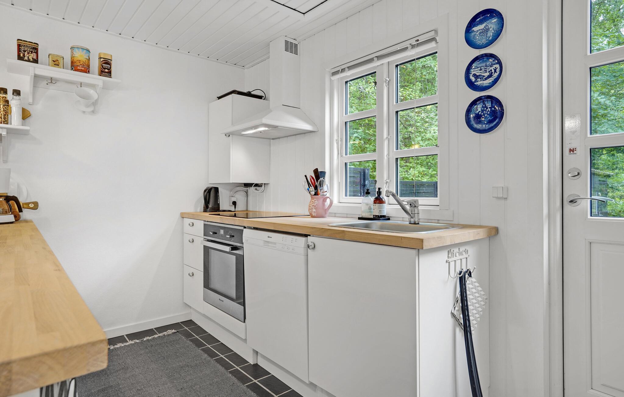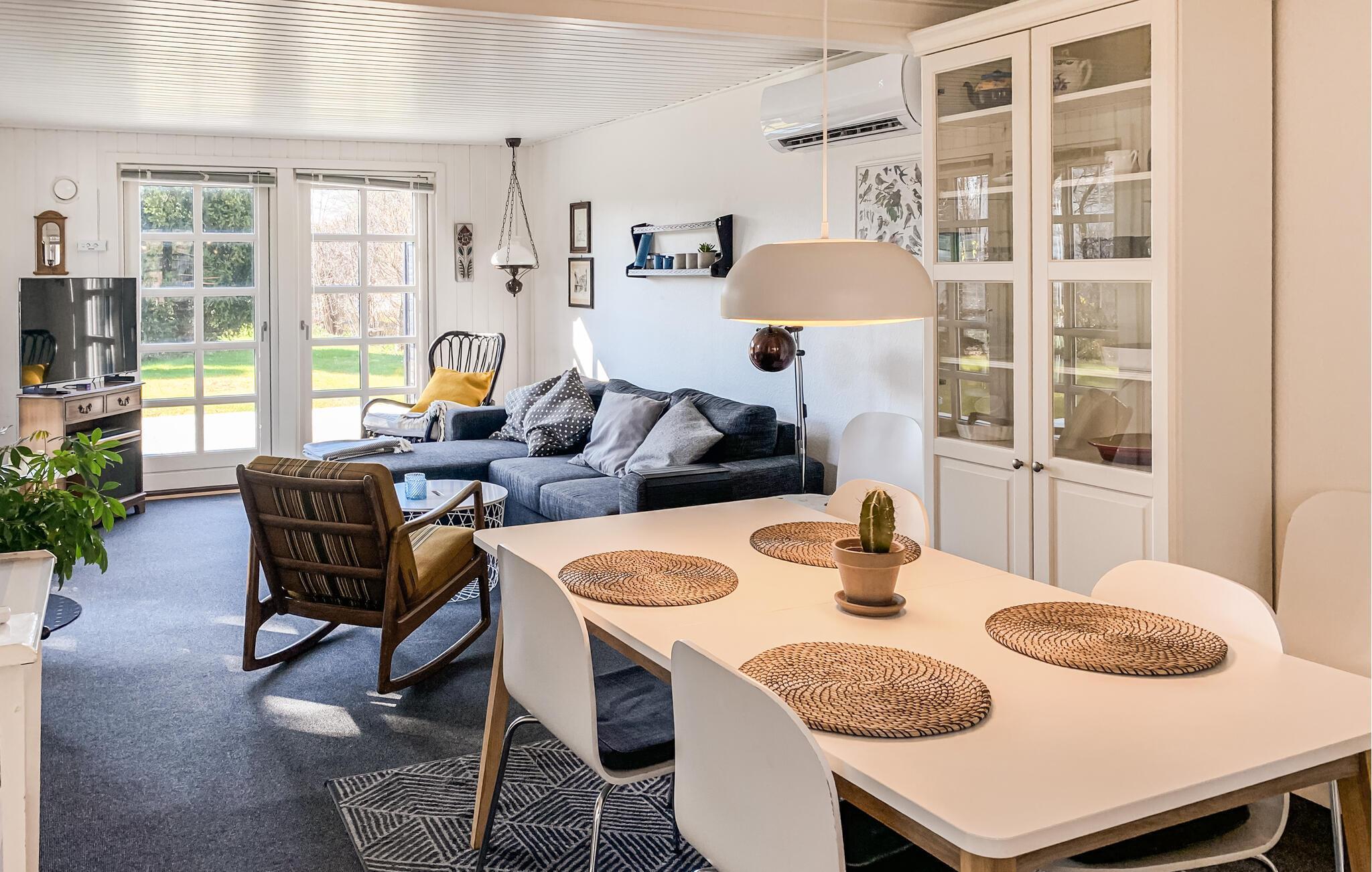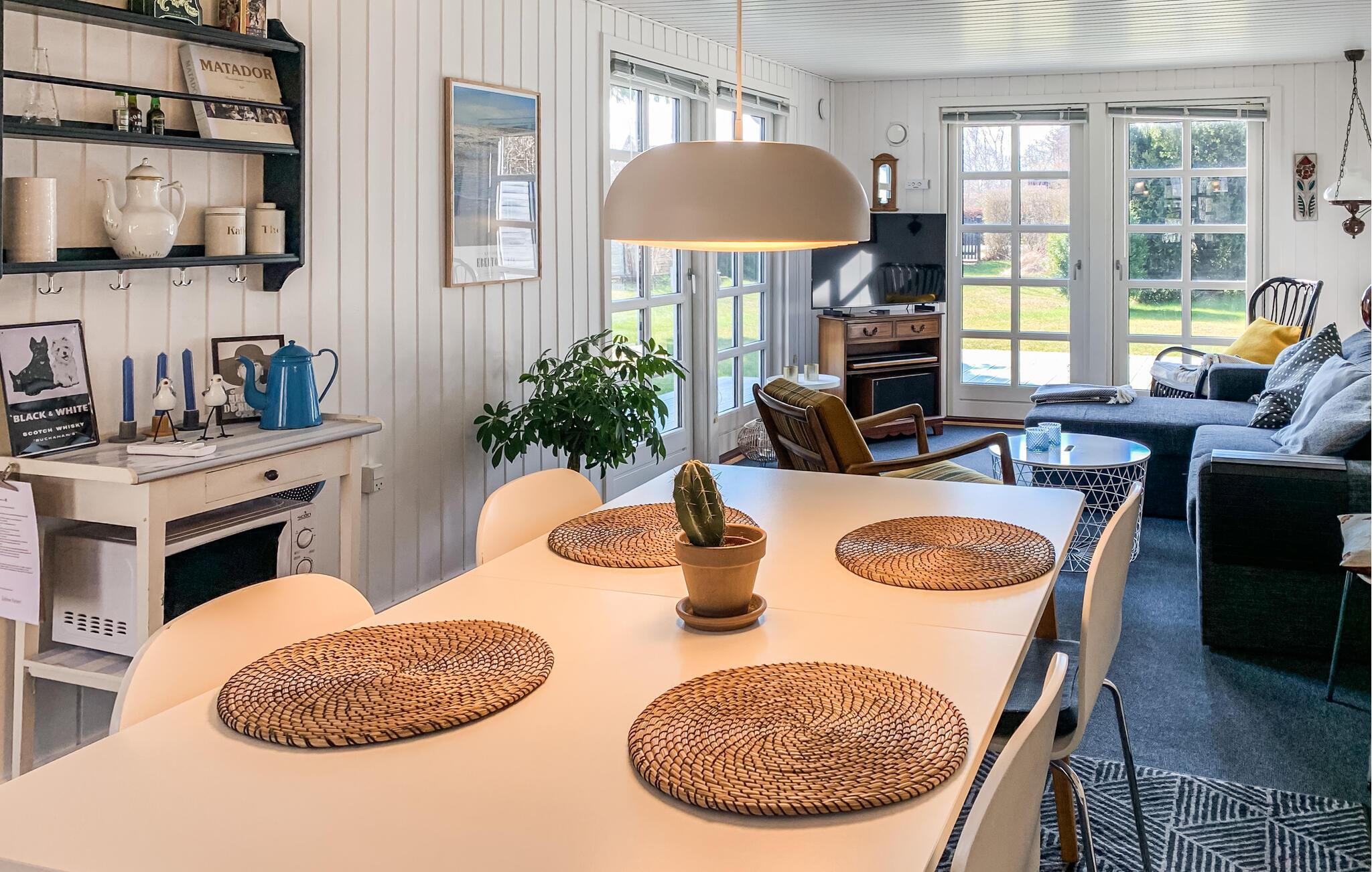 Dette hyggelige træhus nær stranden er det ideelle tilflugtssted for dig og din familie. Den charmerende indretning og det lyse, indbydende miljø skaber med det samme en hjemlig atmosfære. Slap af i stuen med hyggelige filmaftener, eller tilbered måltider sammen i det veludstyrede køkken. Et særligt højdepunkt er udendørsbruseren – ideel til en forfriskende skylle efter en dag på stranden. På terrassen kan I nyde solrige timer, grille og spise sammen, mens børnene leger på græsplænen.