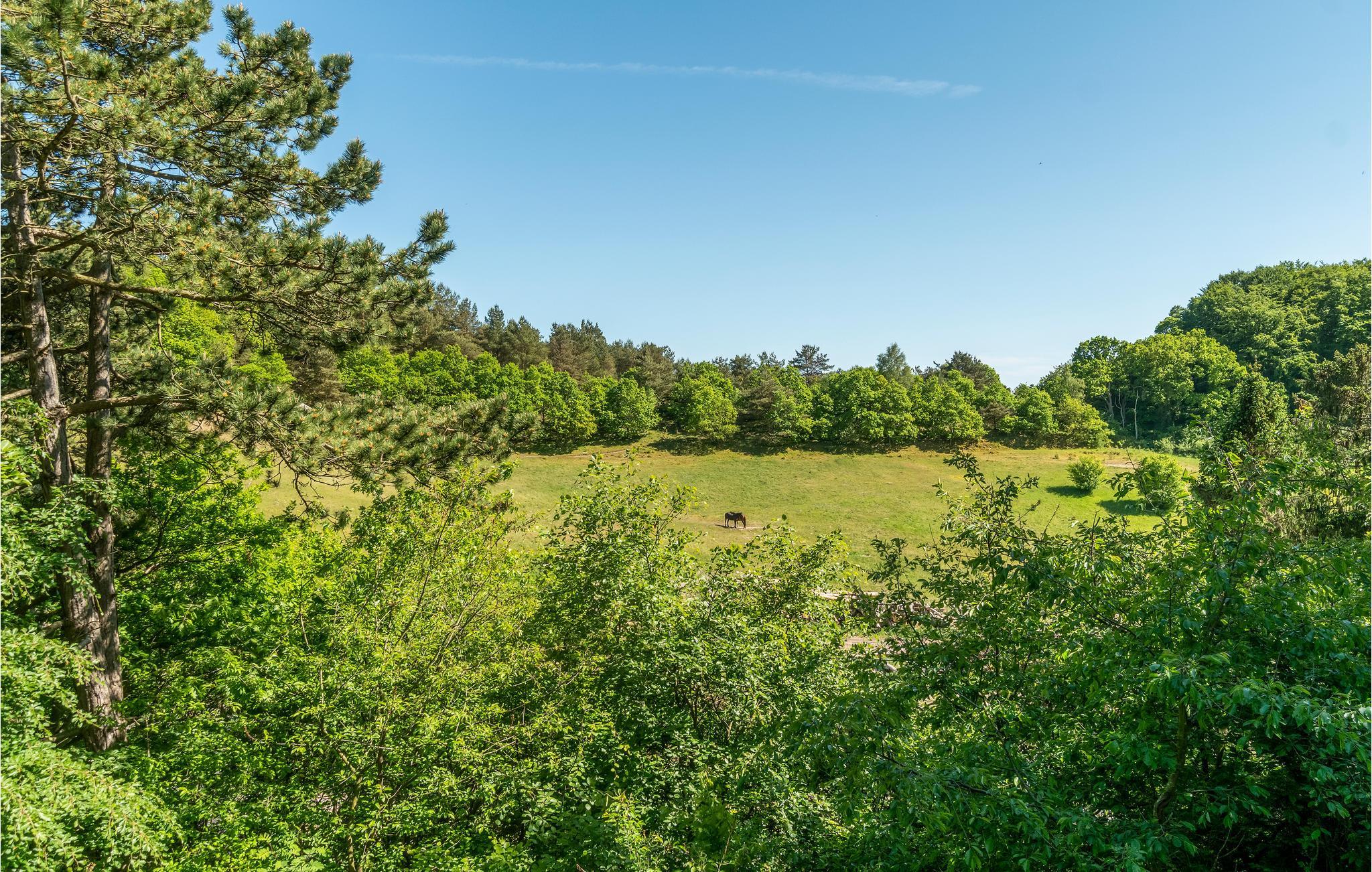 Charmerende feriehus i fredelige omgivelser på Djursland med smuk udsigt til eng og skov.