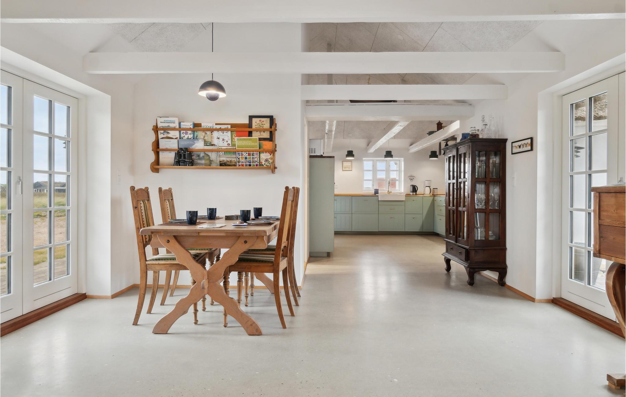 Glæd jer til afslapning, en hyggelig atmosfære og en sand oase af velvære, der venter jer i Strandhuset fra 1875 med synlige loftsbjælker, loft til kip og individuelt indrettede rum, som tilsammen skaber et behageligt sted, hvor I kan tilbringe hyggelige timer med god mad, leg og hygge. Ved moderniseringen af huset har der været fokus på komfort og samtidig bevaring af den historiske atmosfære, som gør huset unikt. Der er mulighed for en ekstra seng i stuen og på hemsen, men uden sengetøj. Vågn op om morgenen med udsigt over klitlandskabet og snak sammen om dagens udflugt over morgenmaden i køkkenet eller ved det lange spisebord i opholdsstuen. I kan også drikke jeres morgenkaffe på terrassen til udsigten over landskabet og drivende lammeskyer.