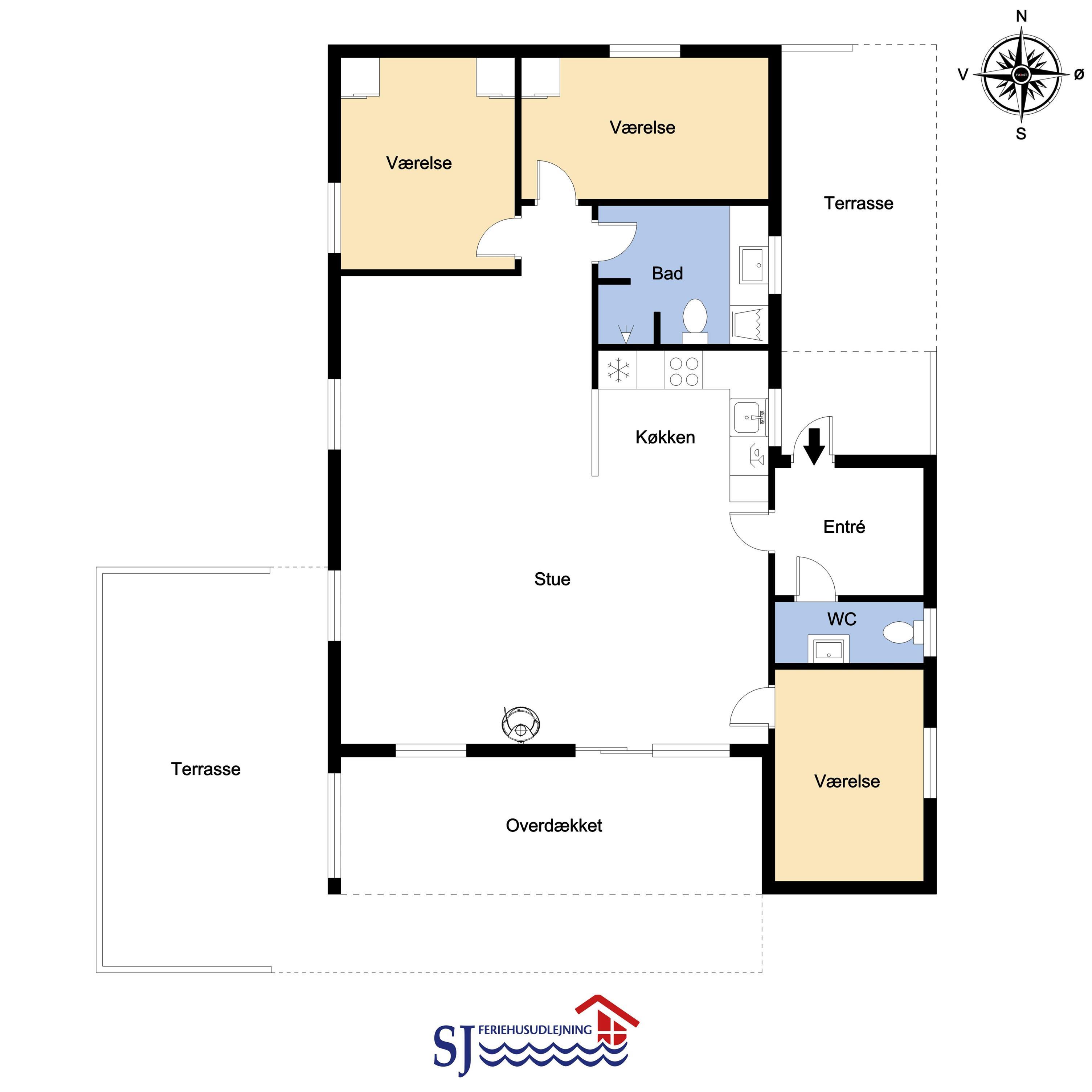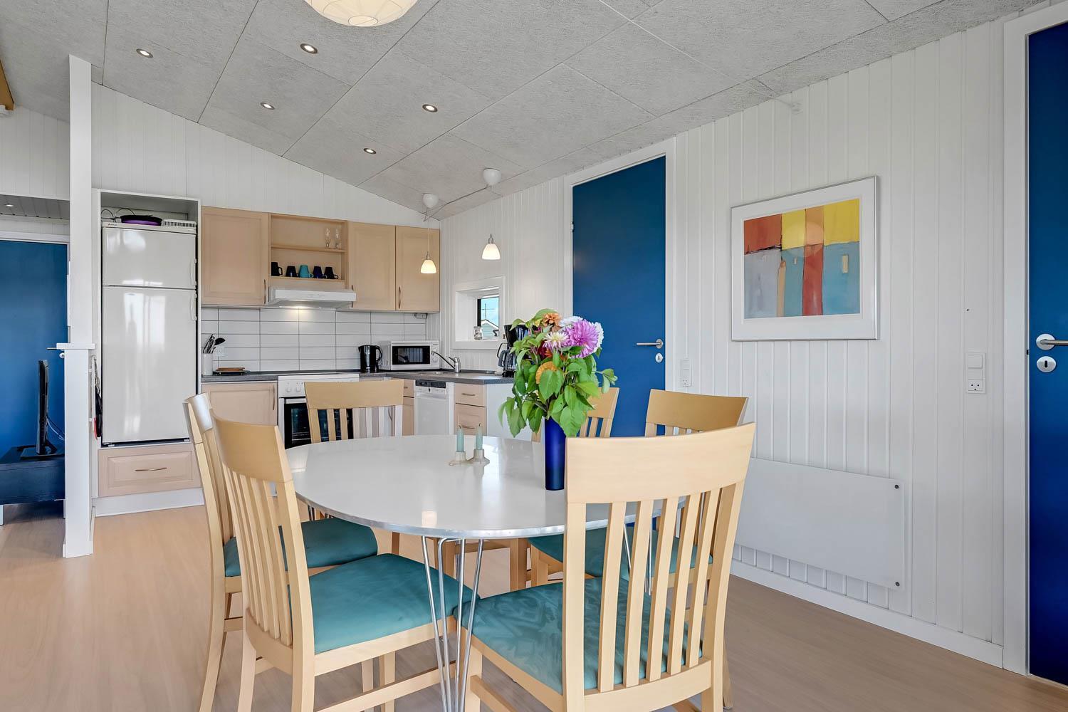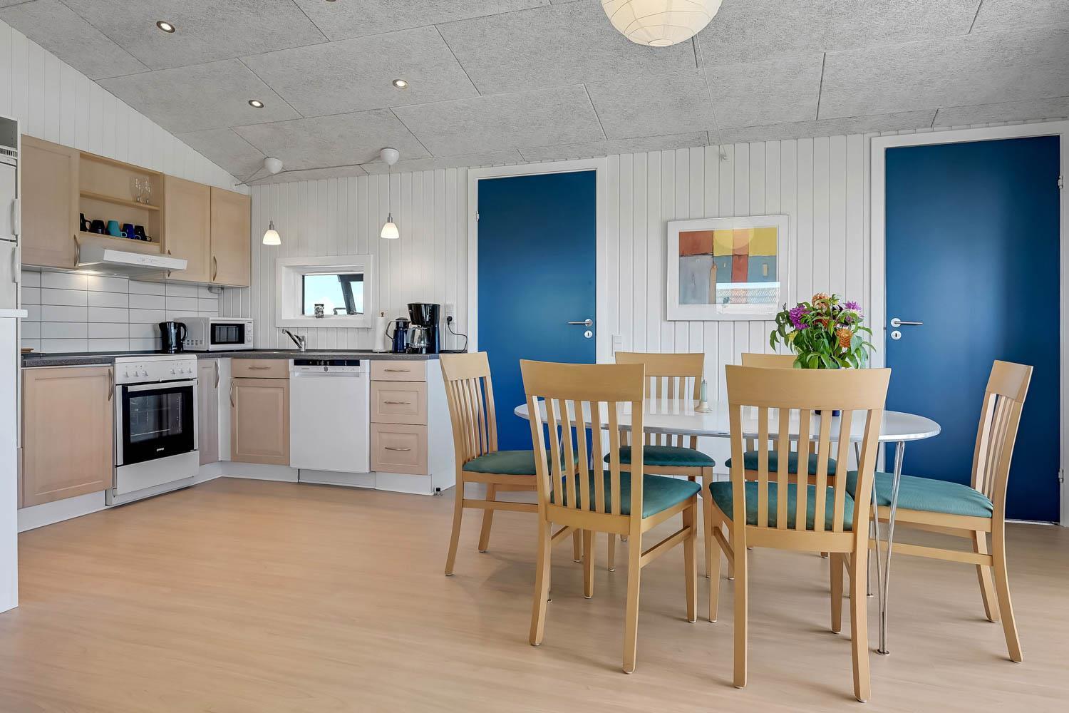 Ferien kan starte lige så snart bilen er parkeret i husets tilknyttede carport. Huset har en størrelse på 84 m2 og er blevet renoveret i 2025. Husets entre byder velkommen og giver plads til sko og jakker. Fra entréen kommer man til husets lyse og indbydende hjerterum, der består af stue og køkken. Køkkenet er bl.a. udstyret med glaskeramisk komfur, emhætte, mikroovn, køle-/fryseskab og opvaskemaskine. I stuen er der læder og polstermøbler, fjernsyn med danske og tyske programmer, radio og CD-afspiller. I køkken-alrummet bidrager brændeovn og varmepumpe til hygge og god opvarmning og store vinduer bidrager til et godt lysindfald. Der er tre gode soveværelser i huset. Det ene er med 1 DS og de to andre soveværelser er med 2 ES hver. På badeværelset er der et toilet, en håndvask, en bruser og en vaskemaskine og badeværelset opvarmes via gulvvarme. Desuden er der et ekstra gæstetoilet med toilet og håndvask.