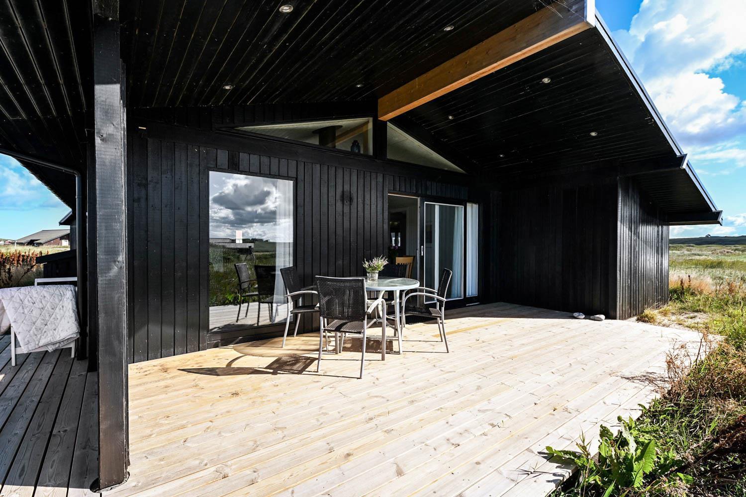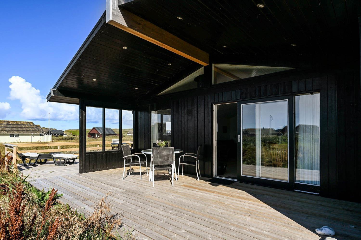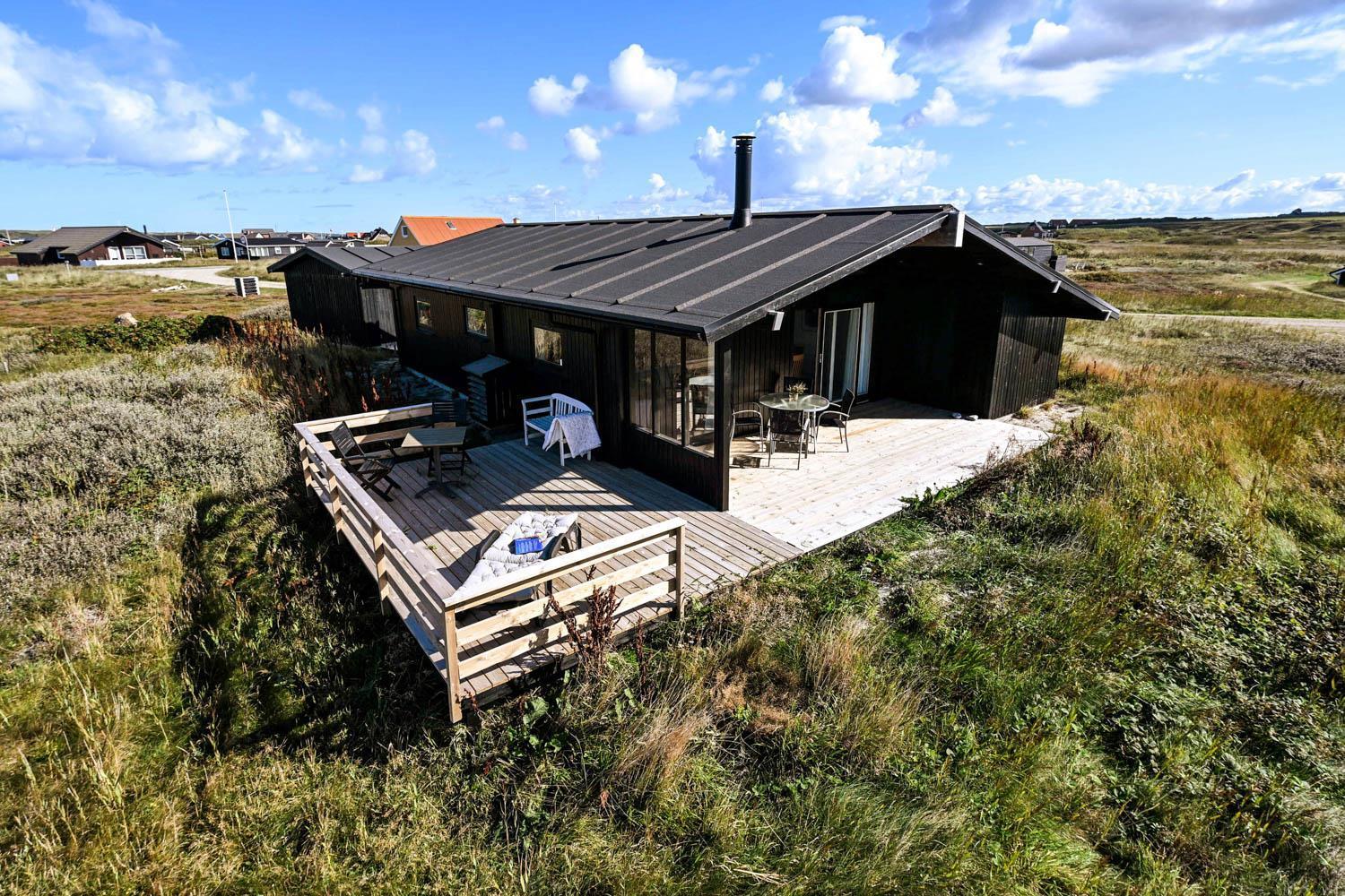 Huset ligger på en 1269 m2 stor grund kun ca. 200 m fra det brusende Vesterhav. Havets brusen kan høres, når man fx nyder morgenkaffen på den store træterrasse. Terrassen er delvis overdækket og der er havemøbler og gasgrill til rådighed, og lægger op til at tilbringe de sene sommeraftener med sine nærmeste. Ferring Sø ligger heller ikke langt fra huset, kun ca. 600 m, og er oplagt til en lang gåtur. En af favorit-ferieattraktionerne i området, Bovbjerg Fyr, ligger også kun få minutter væk bil. Her kan man nyde en kop kaffe og et stykke kage i caféen og blive blæst bagover den flotte udsigt fra toppen af fyret. Fra huset tager det ikke mange minutter i bil til Harboøre, hvor der er forskellige indkøbsmuligheder.