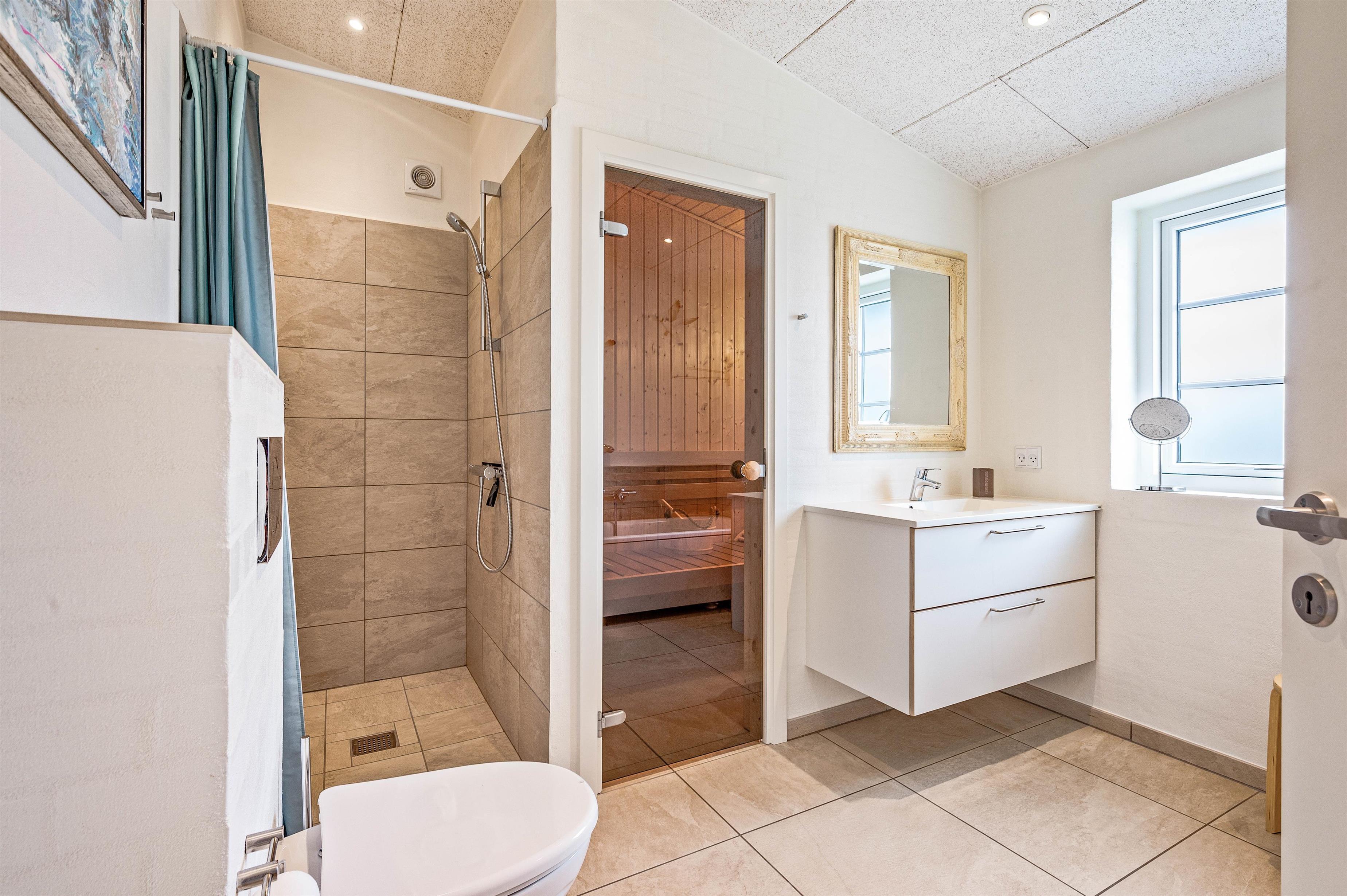Efter en lang og begivenhedsrig dag kan I trække jer tilbage til de 3 soveværelser for at genoplade batterierne. 2 soveværelser er udstyret med en dobbeltseng, mens det tredje soveværelse har 2 enkeltsenge. Hvis I ønsker at ankomme med hele familien eller vennerne, giver ferieboligen jer den bedste mulighed for det, da den er udstyret med i alt 2 badeværelser, så der vil ikke være trafikprop foran badeværelset om morgenen. Det ene af de to badeværelser har sin egen sauna, så I efter en lang gåtur ved stranden igen kan få varmen. Der er også et stort badekar i badeværelset.