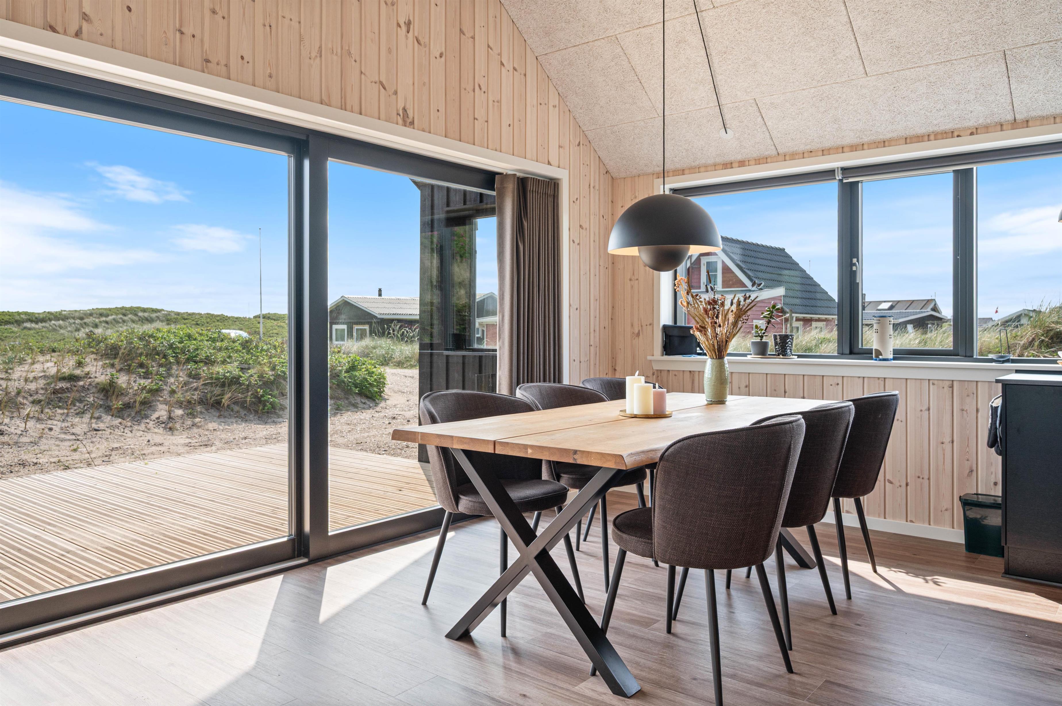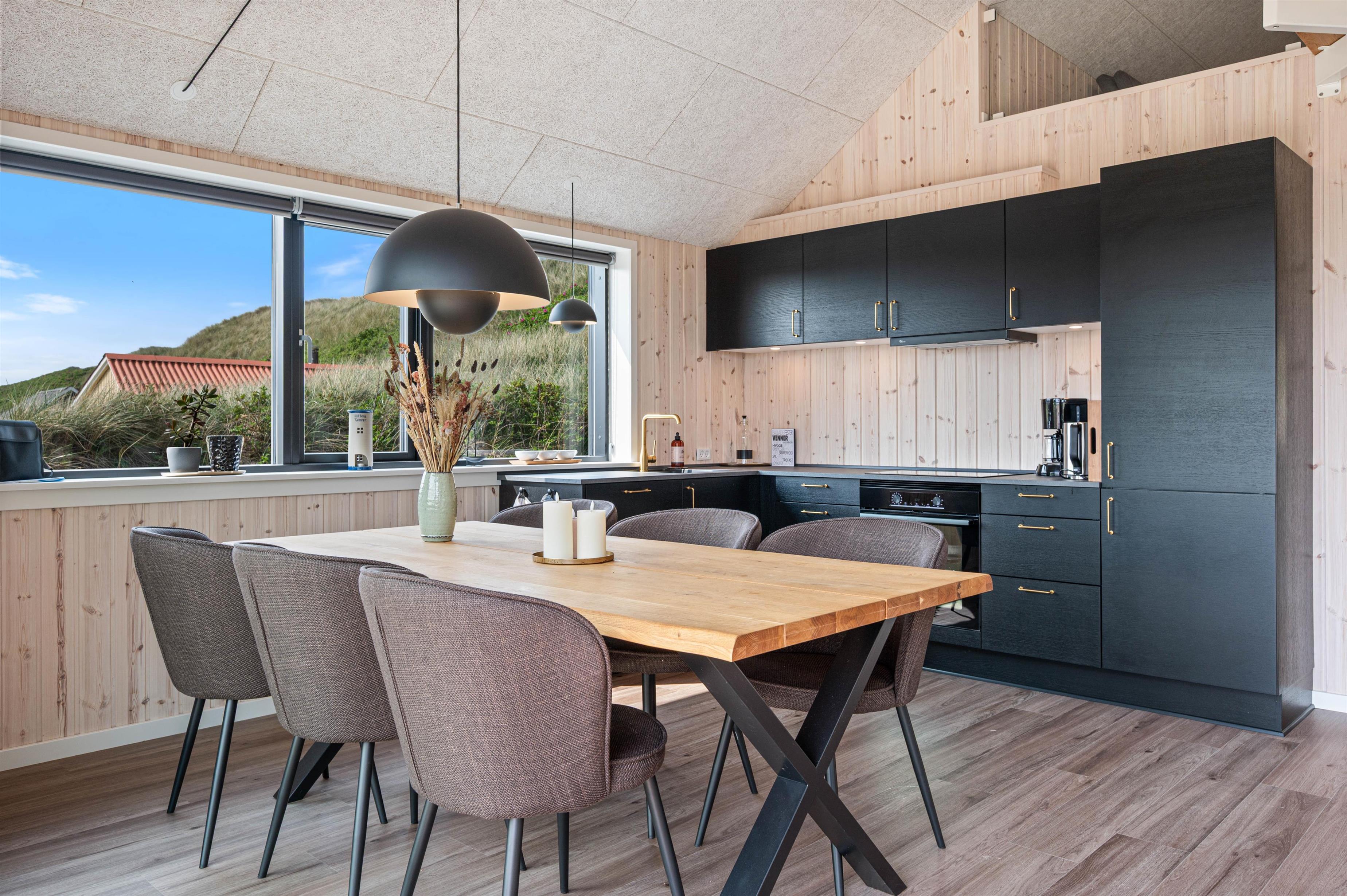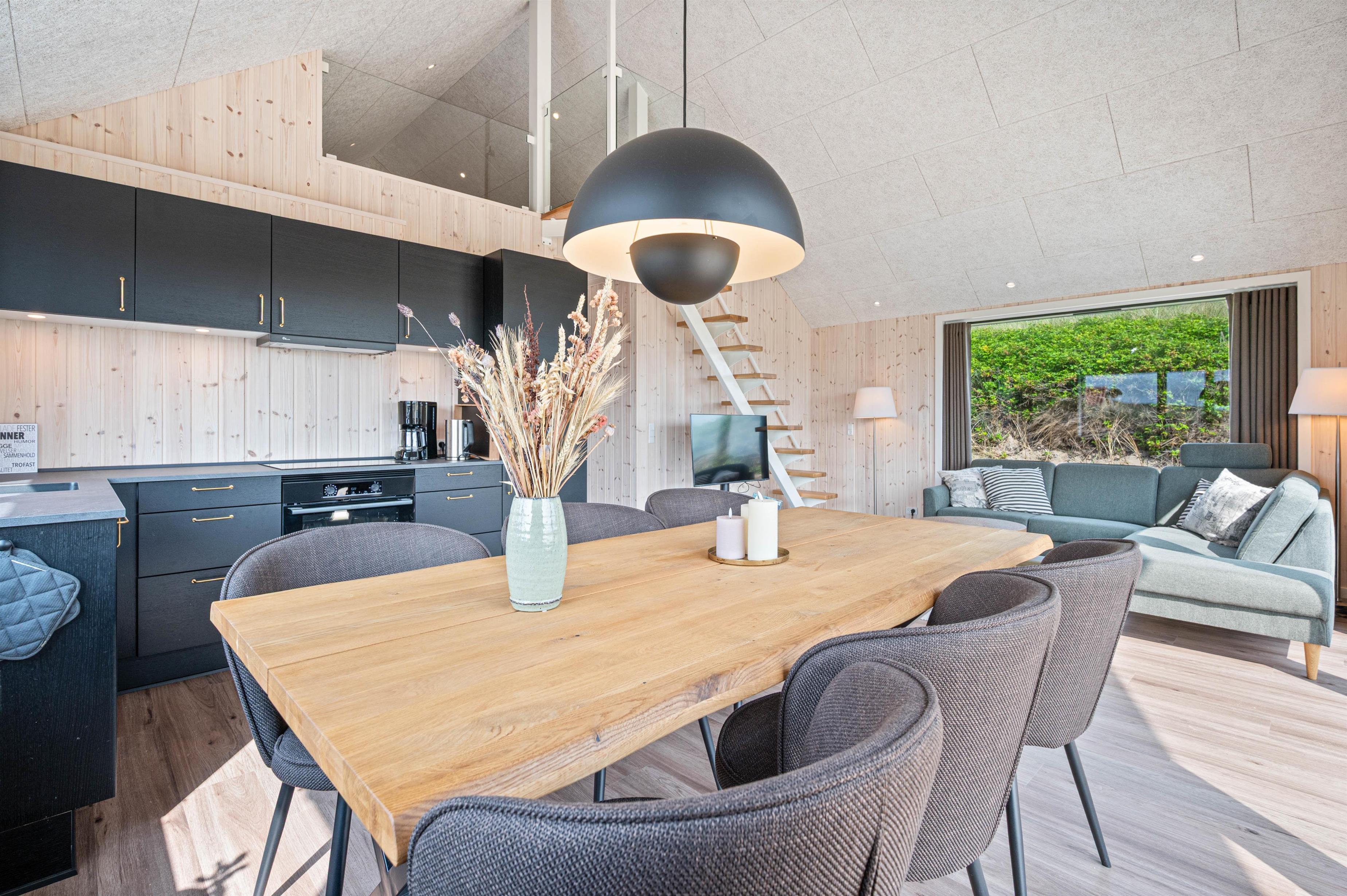 I sommerhusets køkken-alrum finder I et yderst praktisk og veludstyret køkken, hvor feriekokken kan kreere nogle lækre feriemiddage. Her går loftet også hele vejen til kip, hvilket får rummet til at føle større, end det faktisk er. Her er også behagelige stuemøbler, hvor I kan sætte jer tilbage og slappe af. Med et fladskærms-TV med Chromecast og fibernet kan I rigtig føle jer hjemme og nyde netop jeres yndlingsunderholdning.