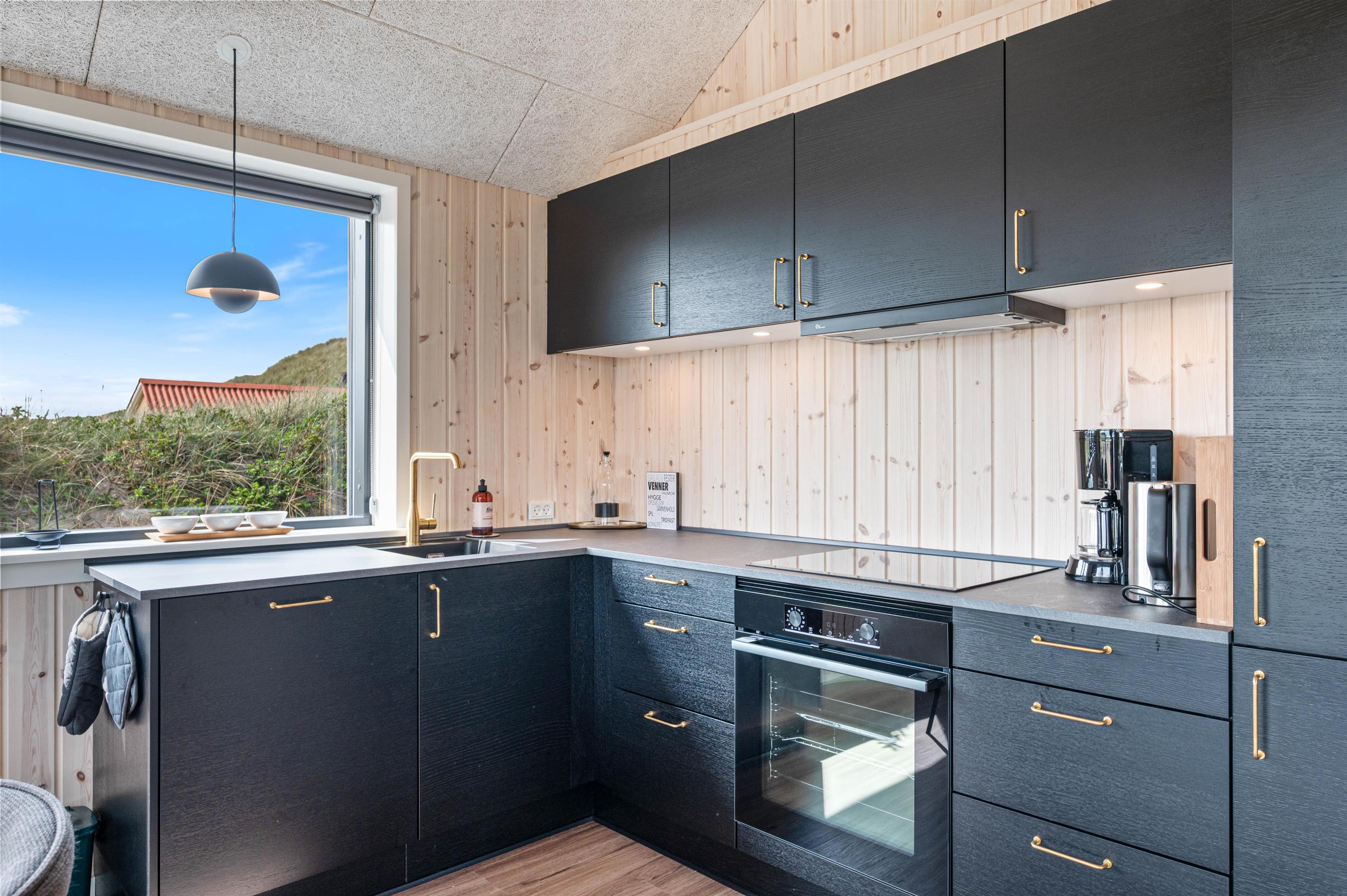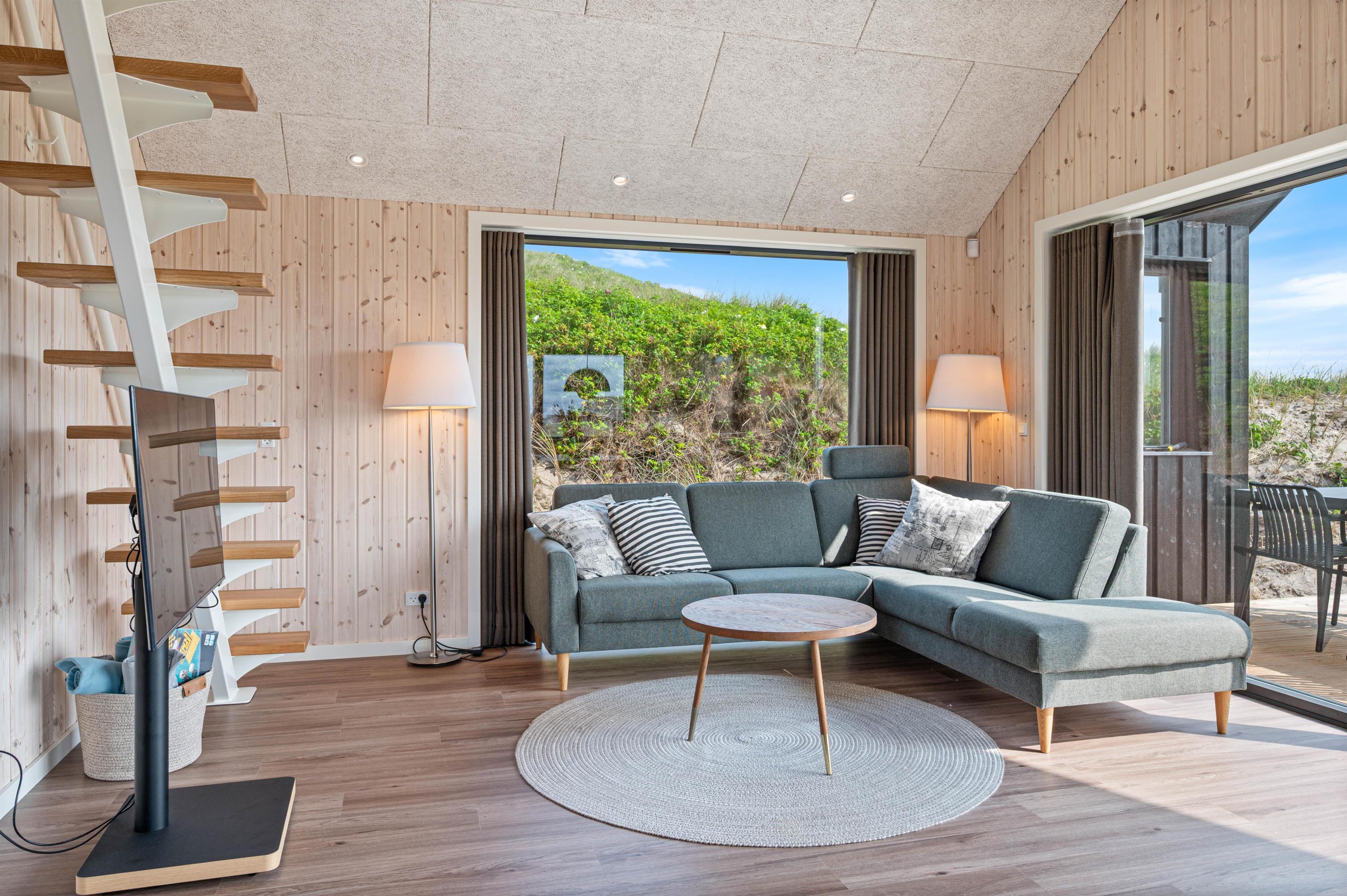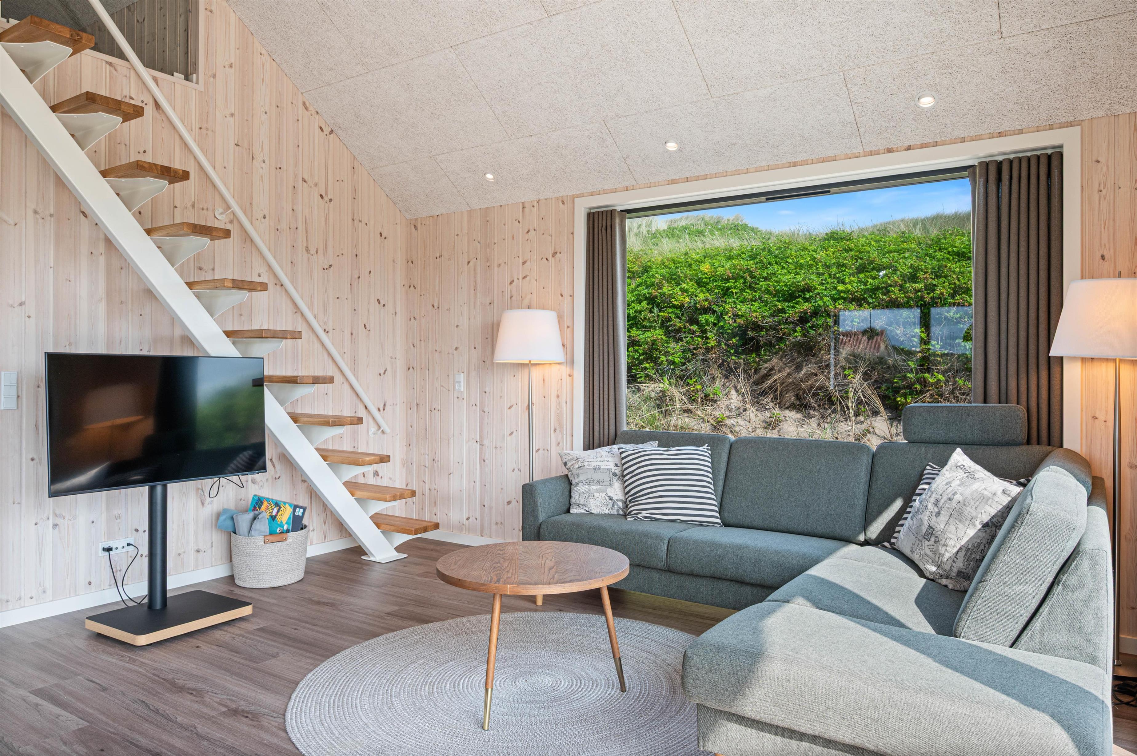 I sommerhusets køkken-alrum finder I et yderst praktisk og veludstyret køkken, hvor feriekokken kan kreere nogle lækre feriemiddage. Her går loftet også hele vejen til kip, hvilket får rummet til at føle større, end det faktisk er. Her er også behagelige stuemøbler, hvor I kan sætte jer tilbage og slappe af. Med et fladskærms-TV med Chromecast og fibernet kan I rigtig føle jer hjemme og nyde netop jeres yndlingsunderholdning.
