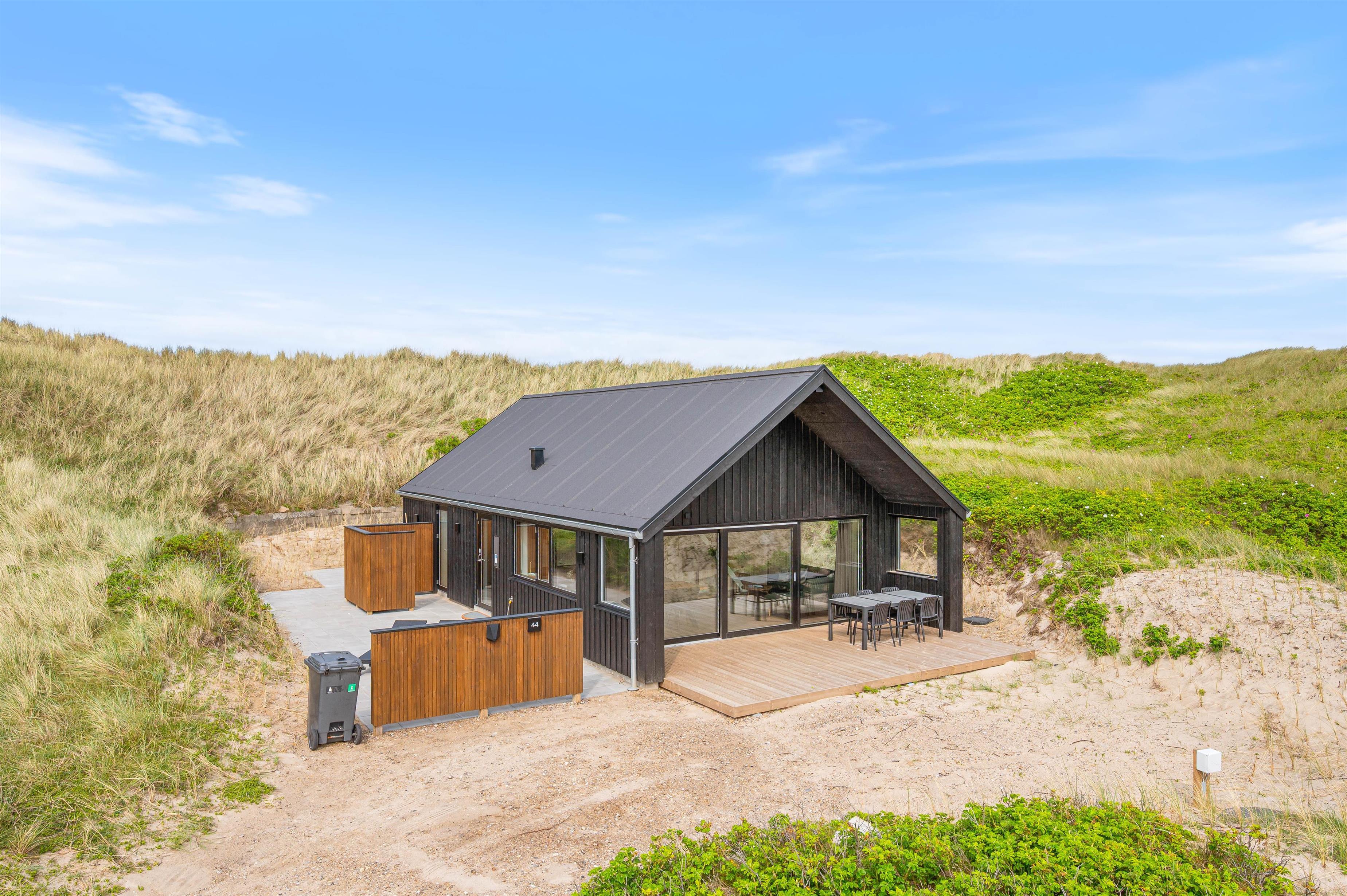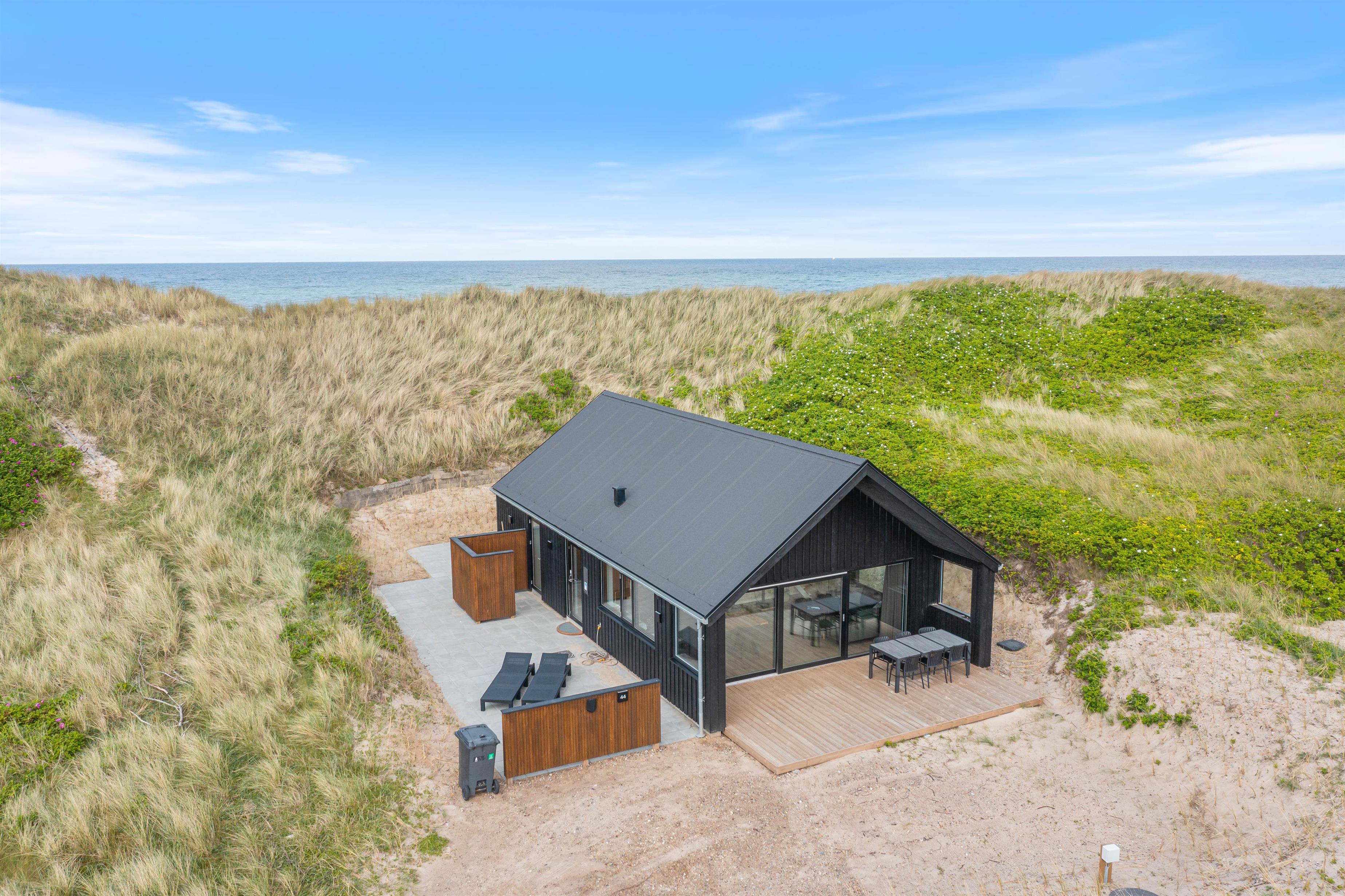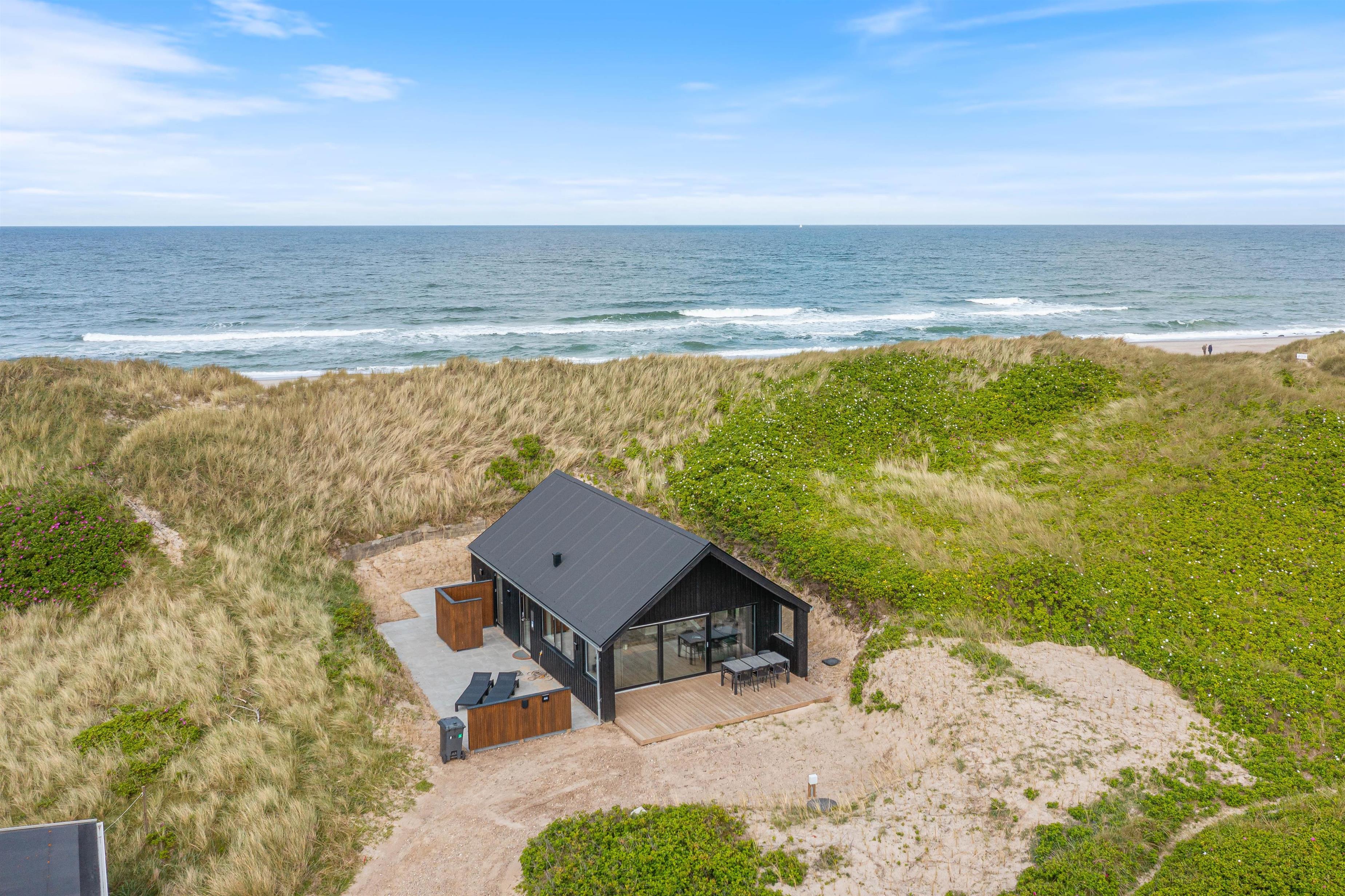 Hvis I ønsker et afbræk fra jeres travle hverdag, hvor I er omringet af skøn natur, så skal I virkelig overveje at booke dette sommerhus i Fjand med adressen Bjerghuse 44. Beliggenheden er virkelig skøn, da I blot befinder jer cirka 50 meter fra Vesterhavet. Sommerhuset er opført i 2025, så her er alle de moderne fornøjeligheder, I kunne ønske jer, og med en god planløsning kan her snildt være op til seks feriegæster og en enkelt hund.