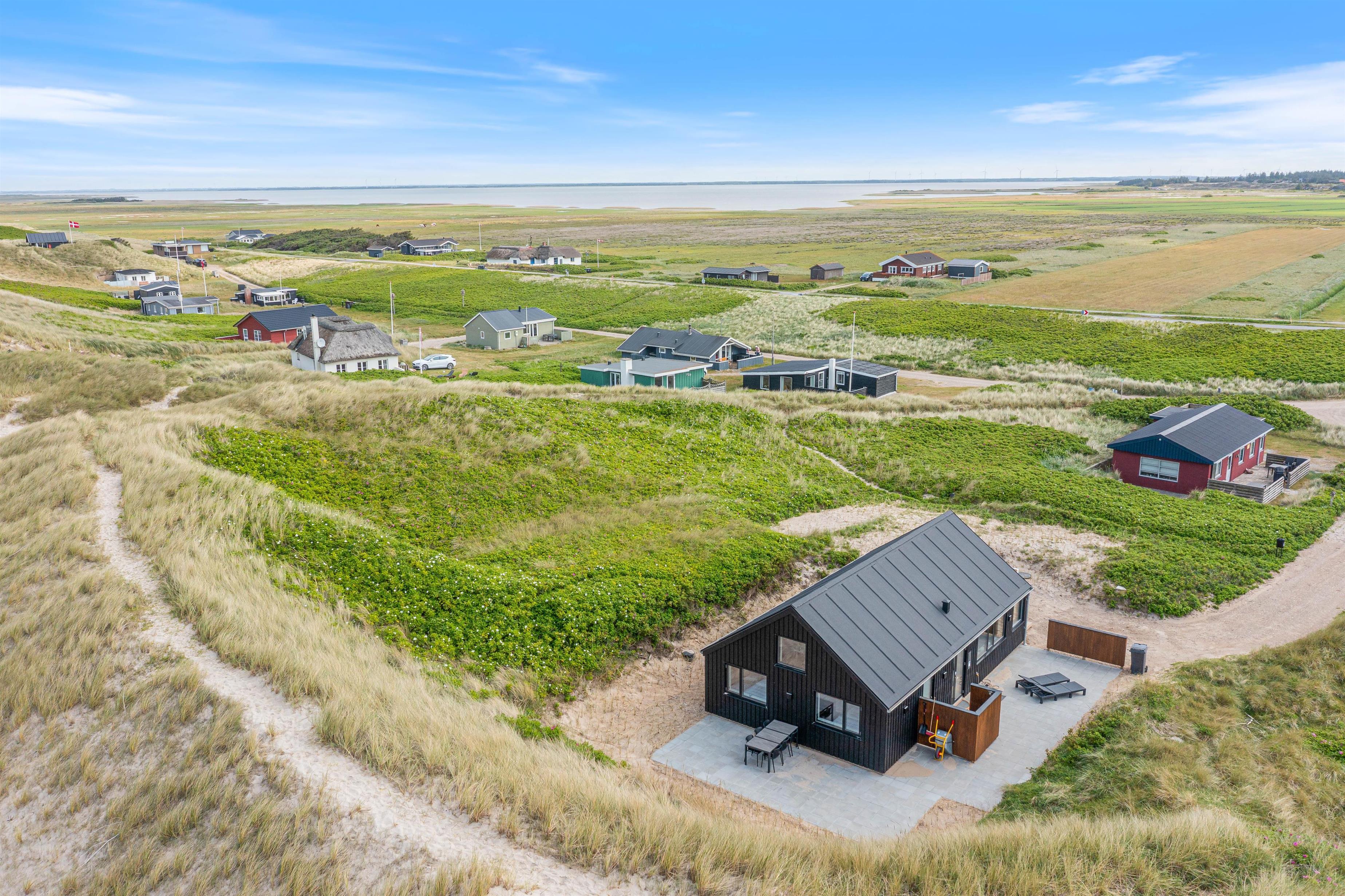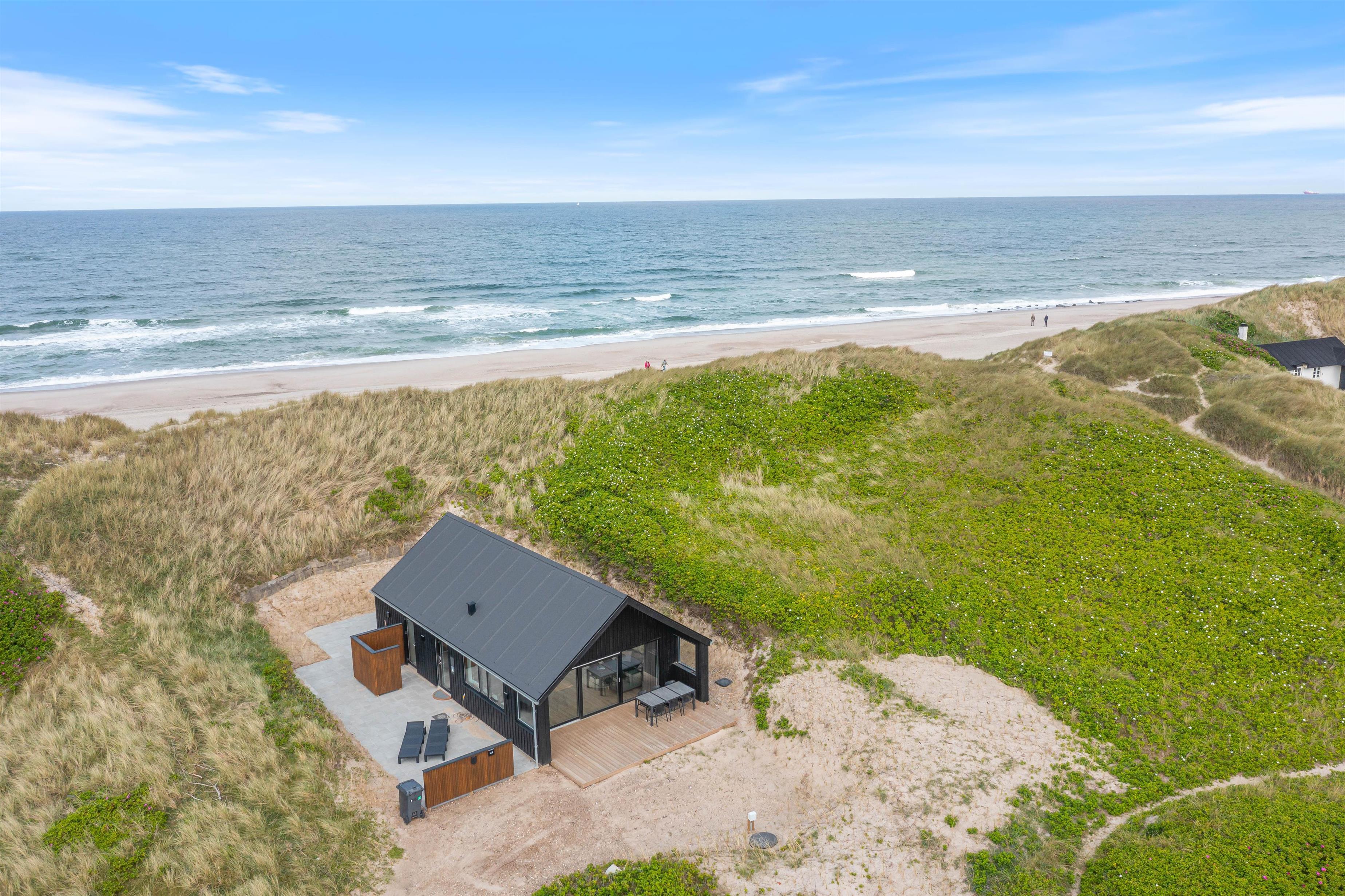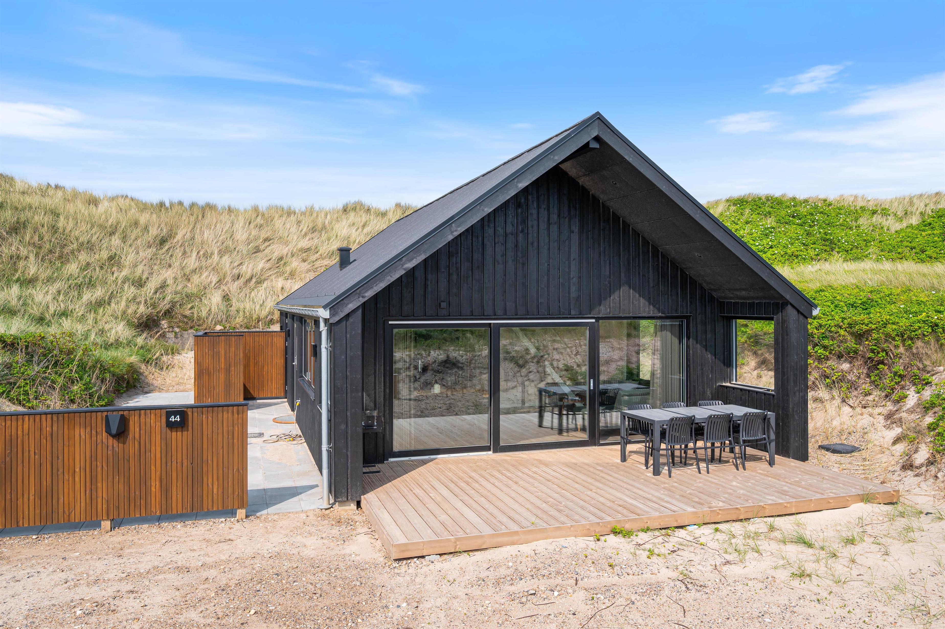 Hvis I ønsker et afbræk fra jeres travle hverdag, hvor I er omringet af skøn natur, så skal I virkelig overveje at booke dette sommerhus i Fjand med adressen Bjerghuse 44. Beliggenheden er virkelig skøn, da I blot befinder jer cirka 50 meter fra Vesterhavet. Sommerhuset er opført i 2025, så her er alle de moderne fornøjeligheder, I kunne ønske jer, og med en god planløsning kan her snildt være op til seks feriegæster og en enkelt hund.