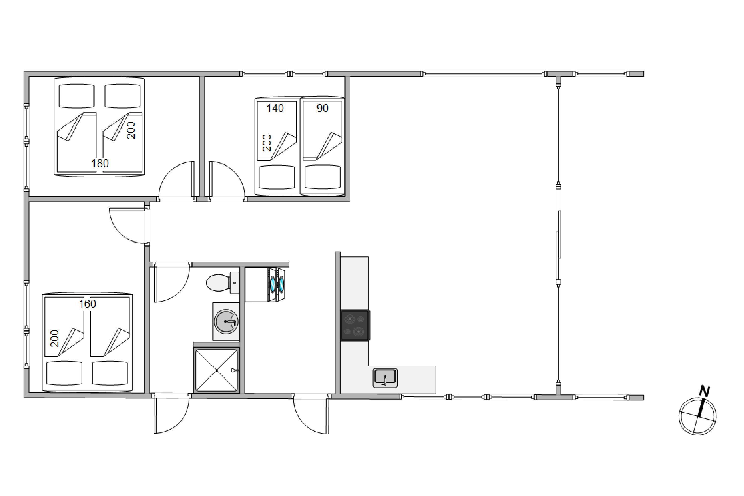 Så snart I ankommer til sommerhuset, vil kunne mærke feriestemningen brede sig. Sommerhuset byder på 77 veludnyttede kvadratmeter og tillader op til seks feriegæster og en enkelt hund. Sovepladserne er fordelt på tre soveværelser, der alle er med dobbeltsenge, hvoraf det ene soveværelse er med en dobbeltseng med en overkøje. I er derfor garanteret en god nats søvn. Huset råder over et enkelt, moderne badeværelse, der er med gulvvarme og fantastisk flotte messingarmaturer og -greb.
