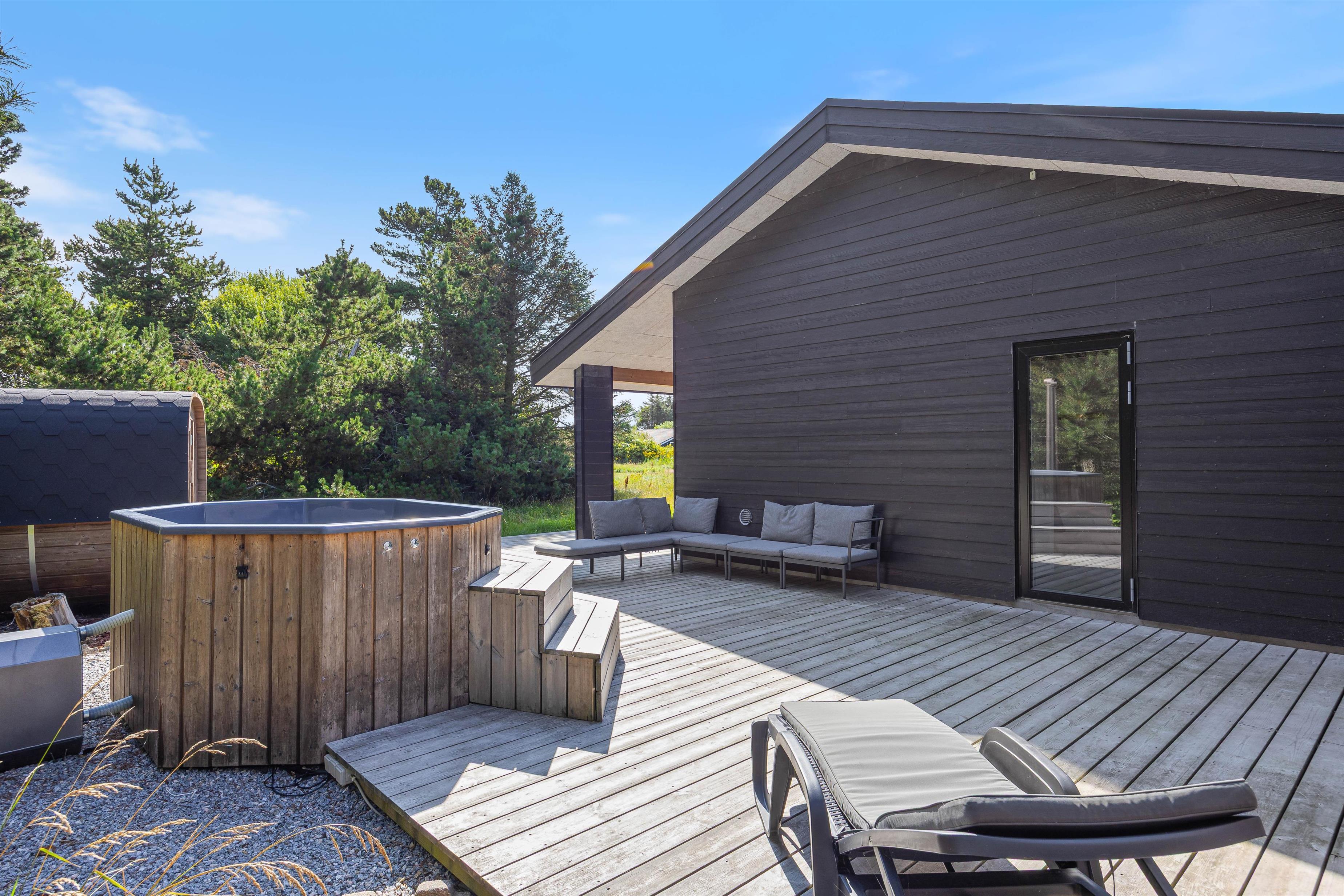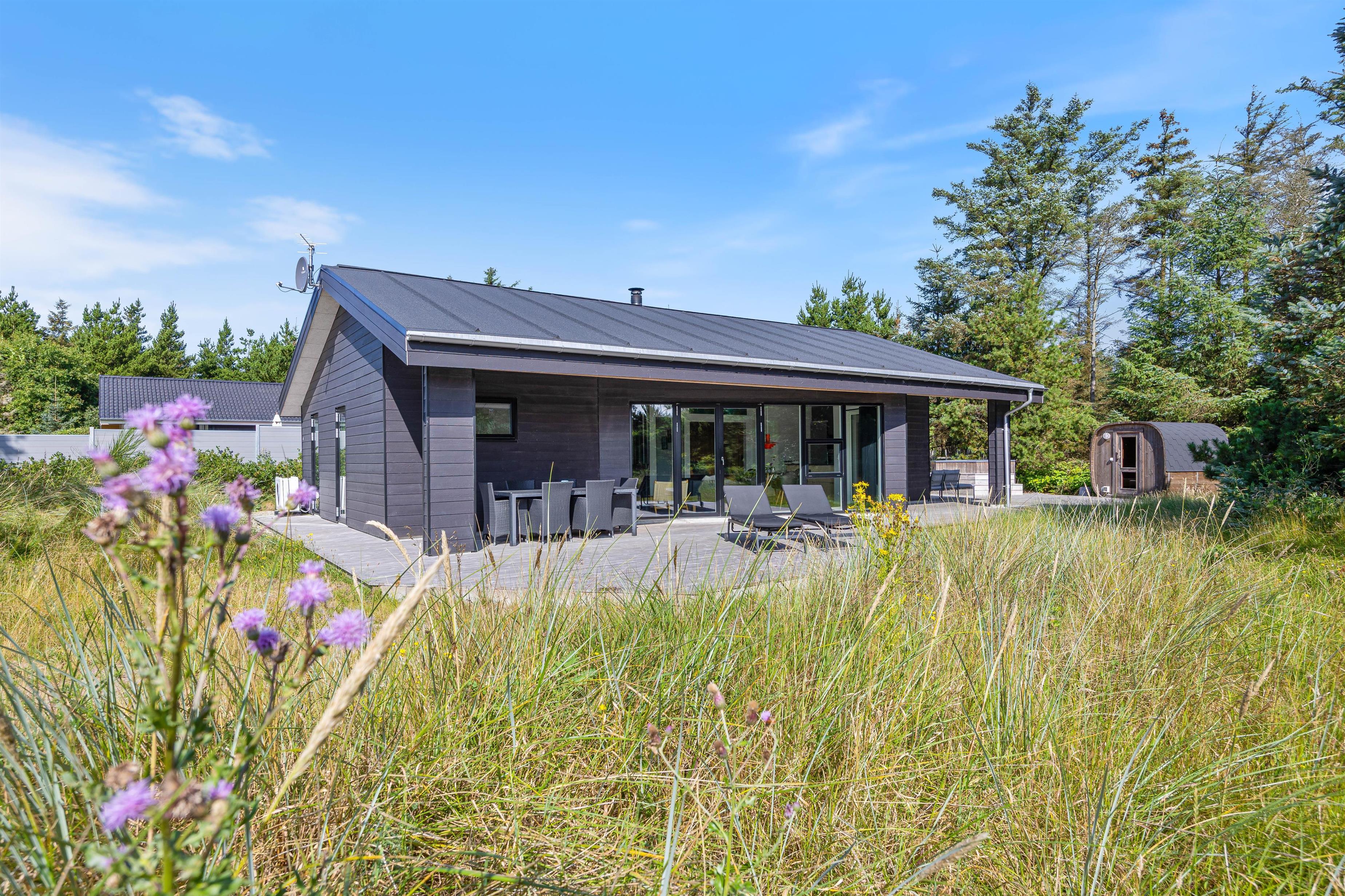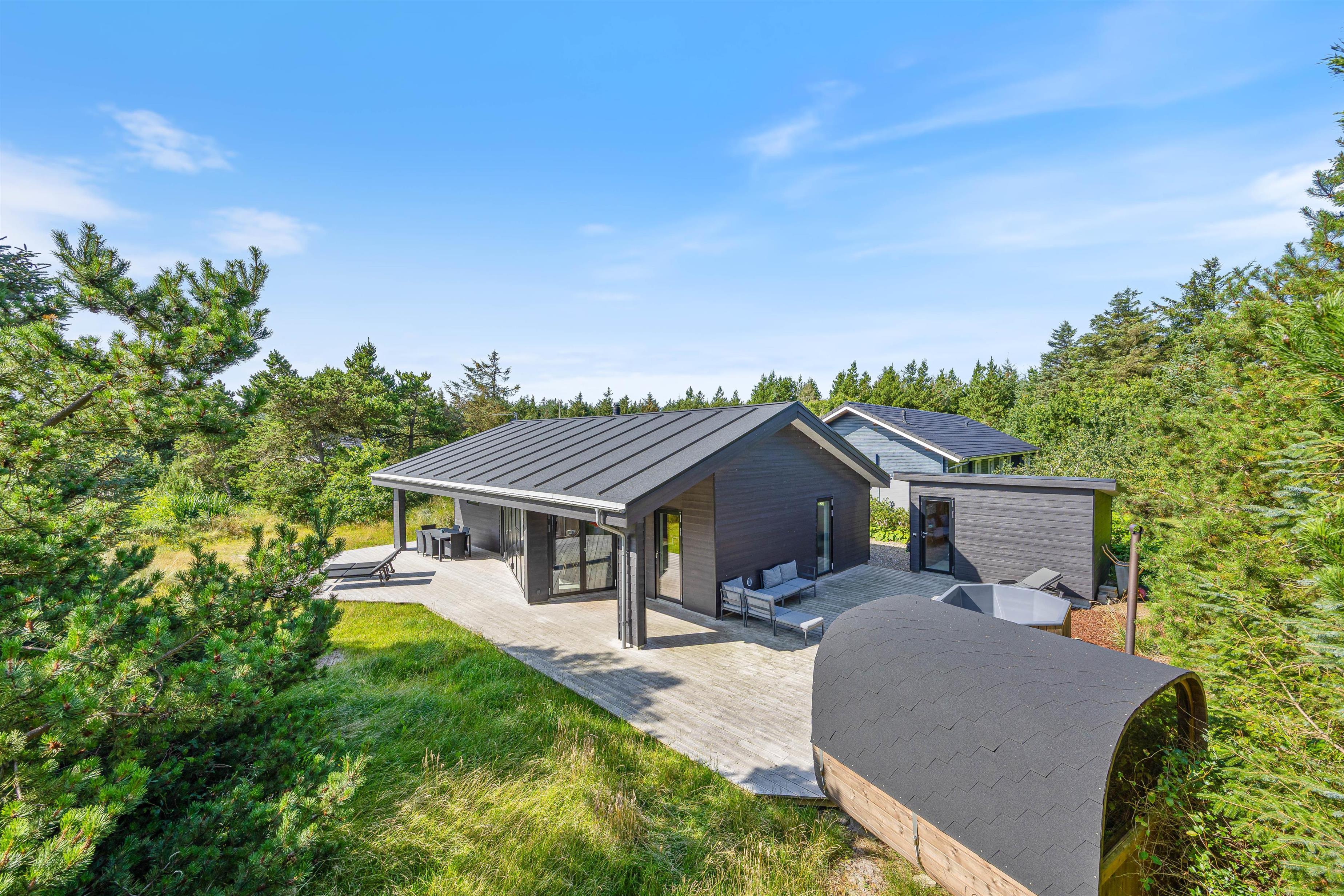 På Hagevej 15 i Fjand står dette lækre sommerhus og venter på jer. Sommerhuset, der blev opført i 2021, kan rumme 6 personer og 2 hunde, som er tilladt på adressen. Sommerhuset indbyder til forkælelse i form af et vildmarksbad og en udesauna, som begge er placeret i haven, der er afskærmet af store flotte træer, der bidrager til privatlivet.