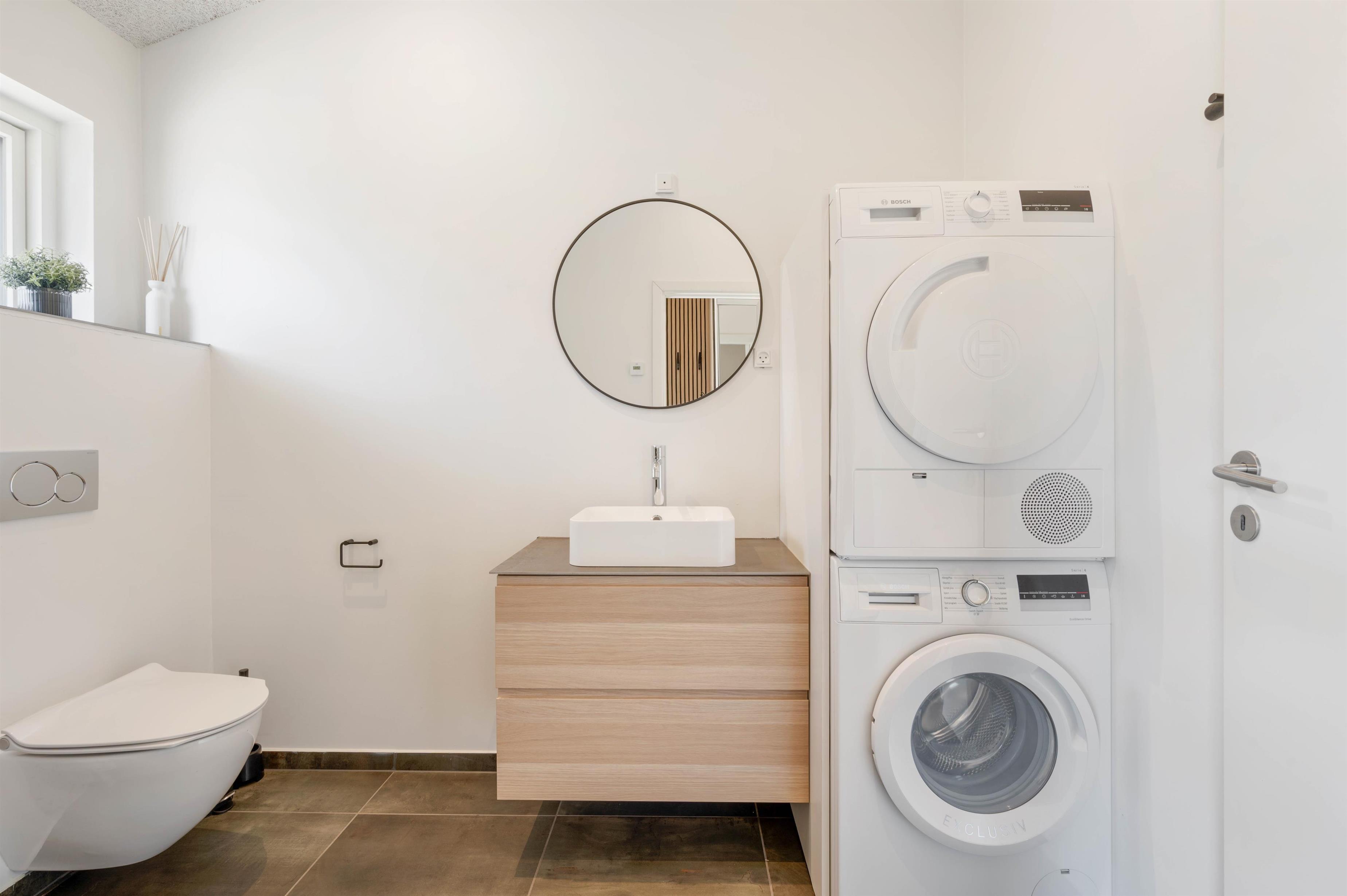 De lækre omgivelser byder jer straks velkommen. Her er der virkelig taget godt imod jer som gæster. Stue og køkken er i åben forbindelse, og der er indbygget en hyggekrog, som gør det muligt at samle hele familien i husets hjerte. Brændeovnen i stuen værner om hyggen, og foran den kan hele familien samles. Muligheden for en mere miljøvenlig opvarmning finder I også i husets luft-til-vand varmepumpe. Desuden kan I benytte det hurtige internet til at streame jeres yndlingsfilm.