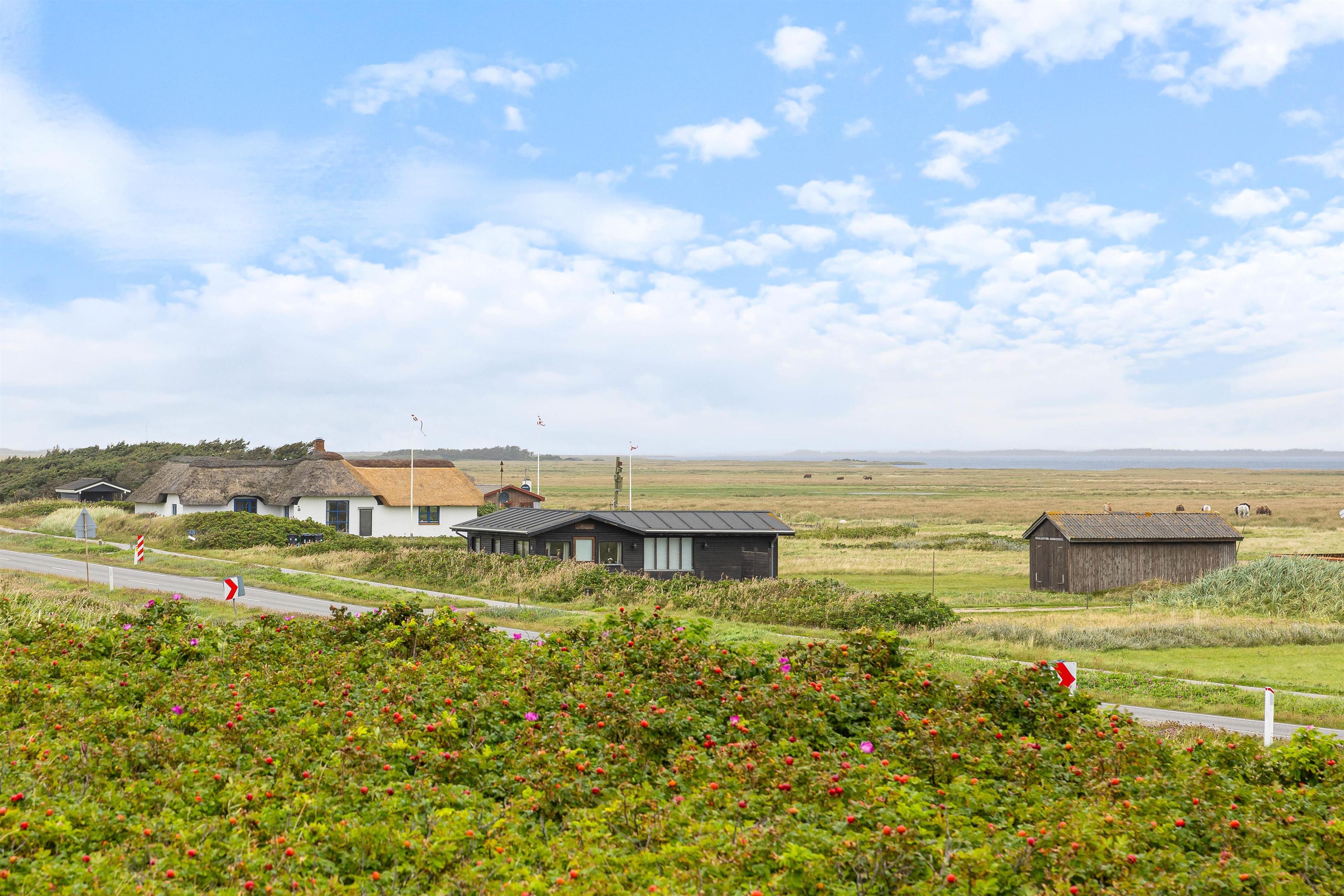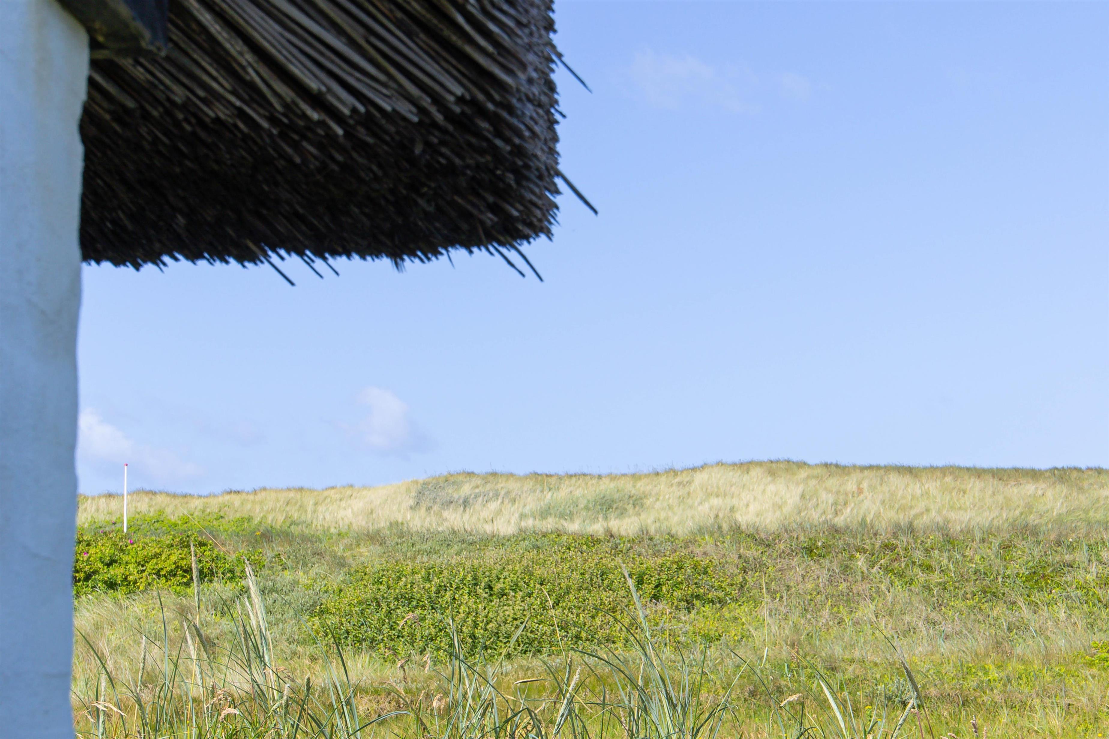 Det stråtækte feriehus med den hvide facade og de blåmalede vinduer og døre byder jer velkommen, så snart I ankommer. Feriehusets indre byder på en hyggelig atmosfære. I køkkenet er der en opvaskemaskine, så opvasken kan klares, mens I lader batterierne op efter en lang gåtur ved Vesterhavet. Når I kommer tilbage efter en lang gåtur, kan I tænde op i brændeovnen og lytte til ildens knitren.