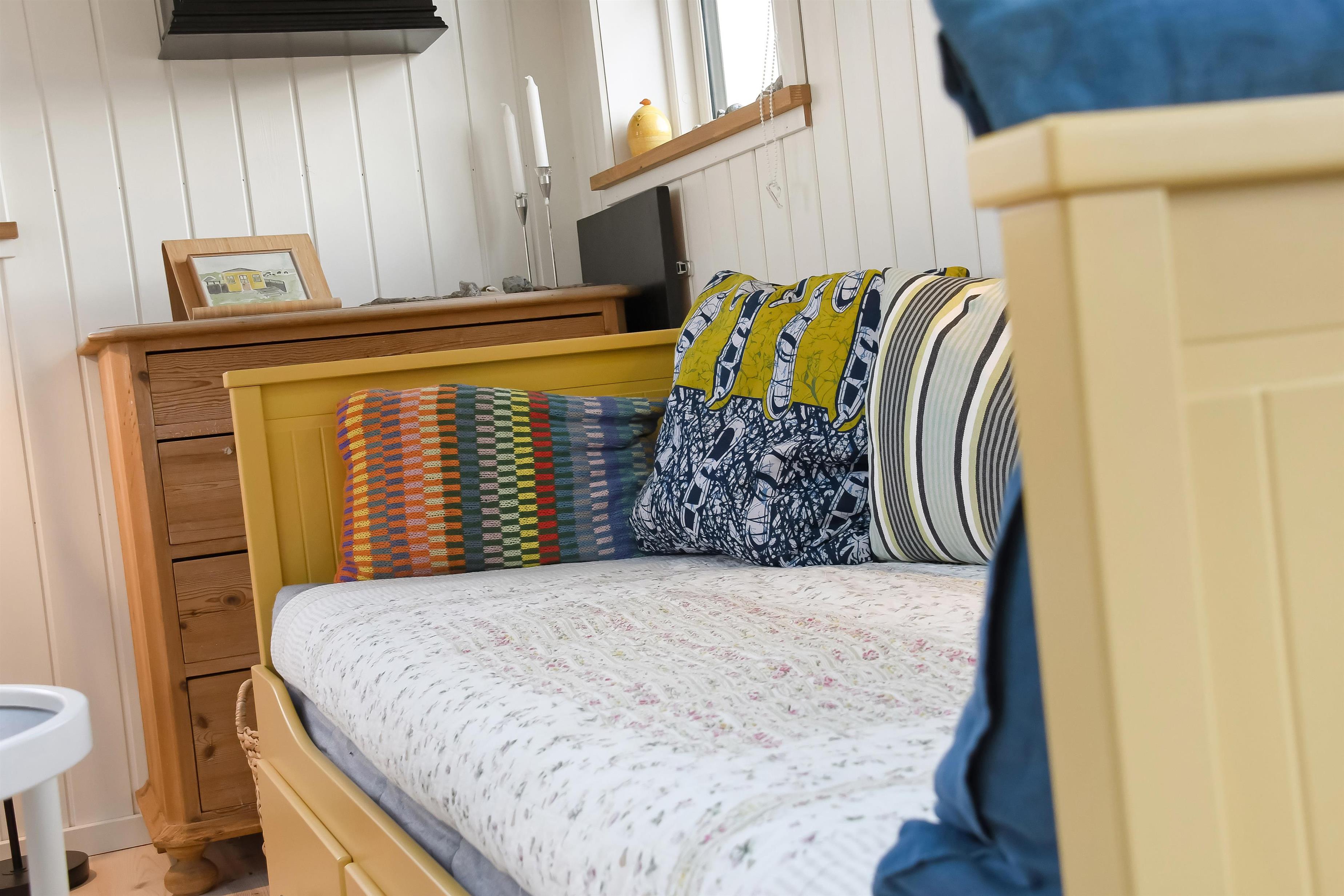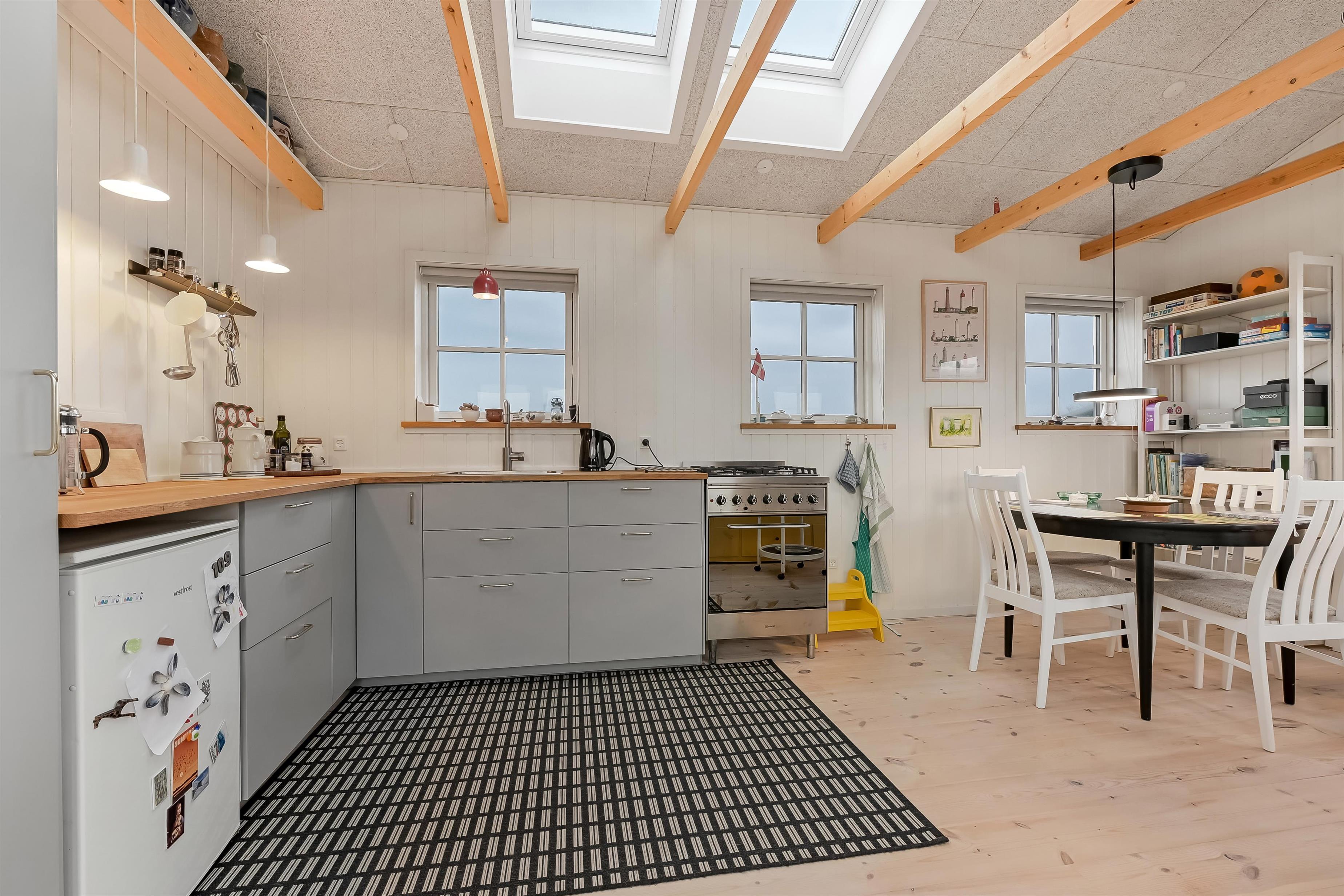 Indvendigt rummer huset et hyggeligt soveværelse med dobbeltseng, et veludstyret køkken og et pænt badeværelse med bruser og gulvvarme. Opholdsrummet fungerer som husets naturlige samlingspunkt, hvor du kan slappe af efter en dag ved stranden eller i klitterne.