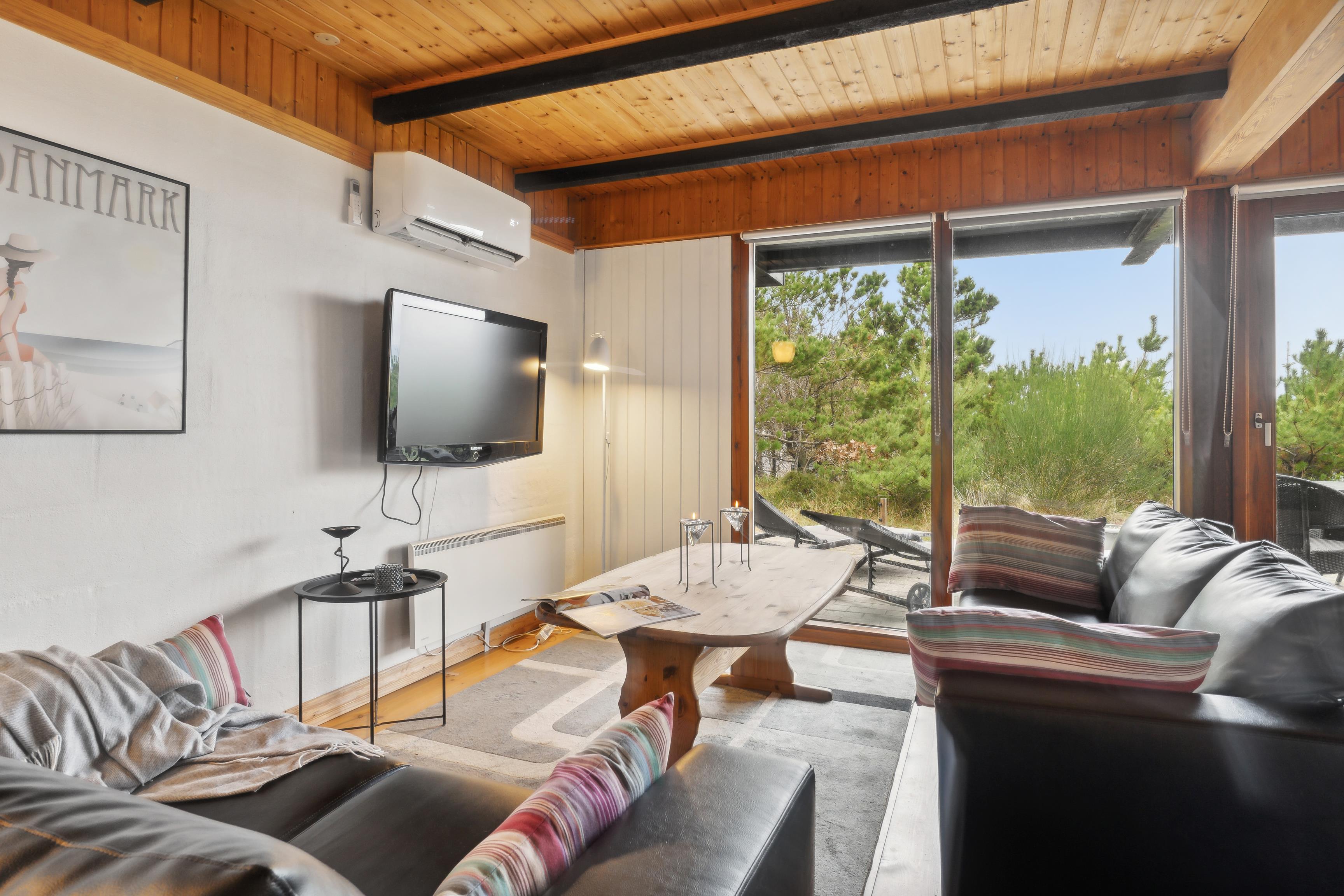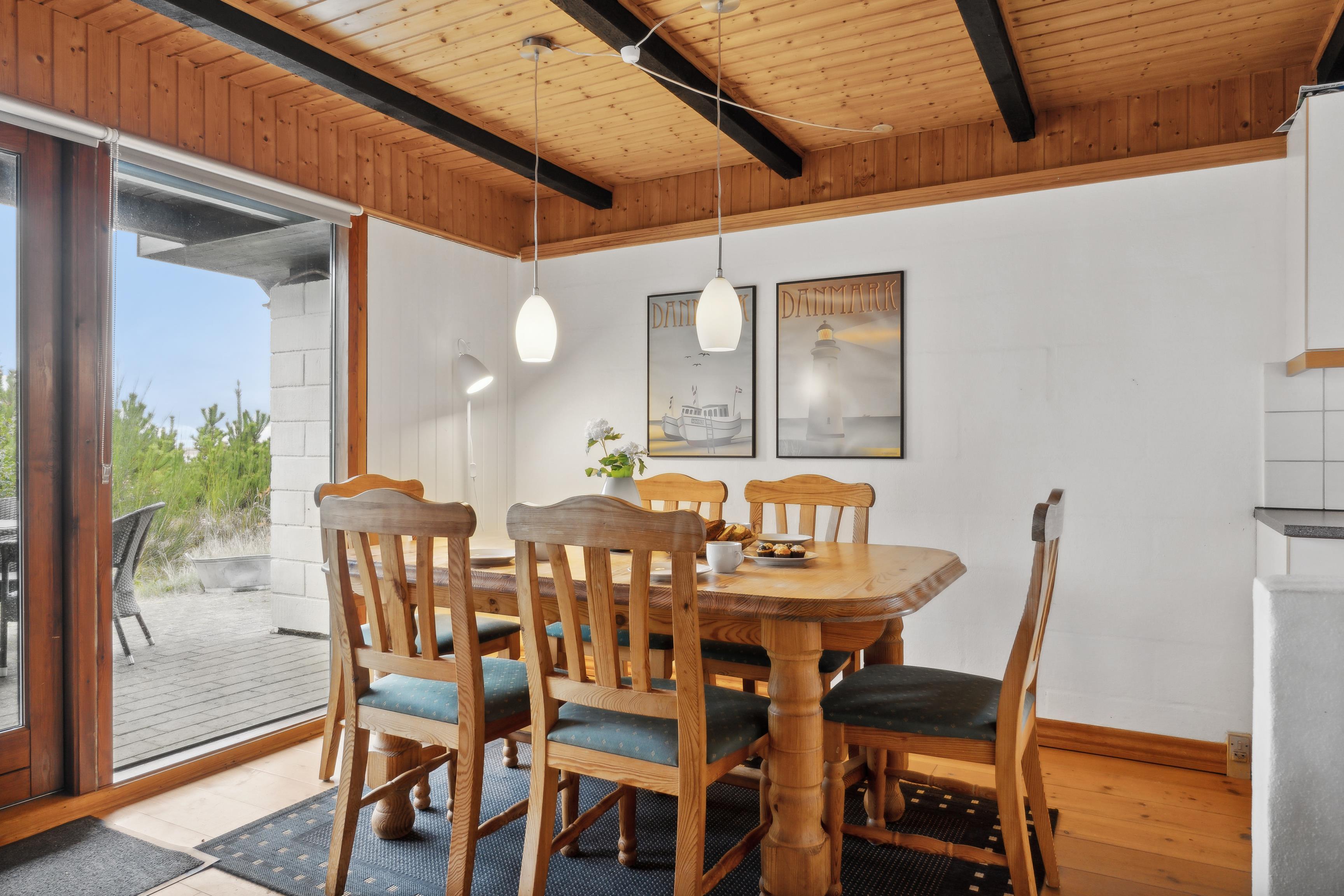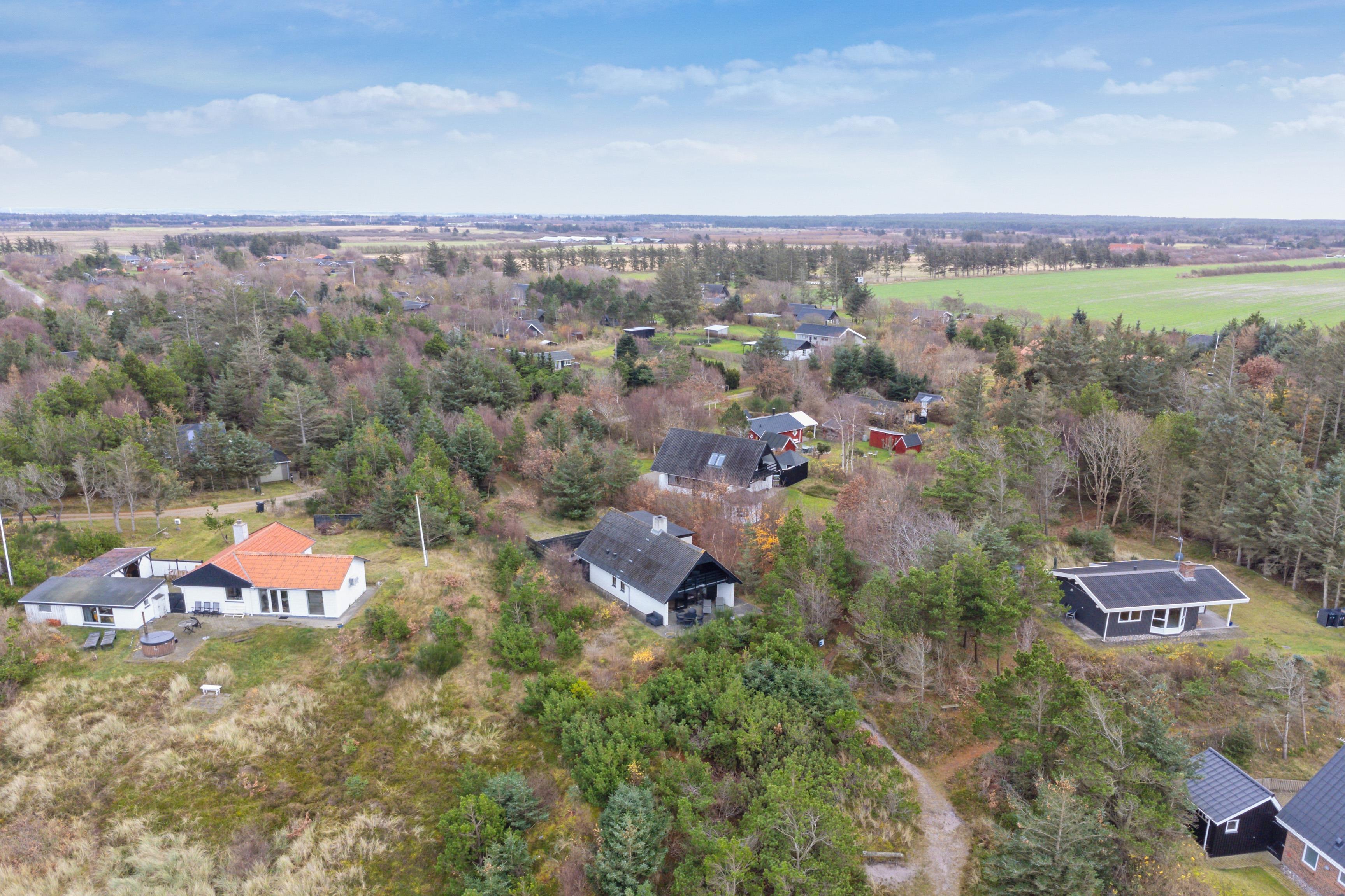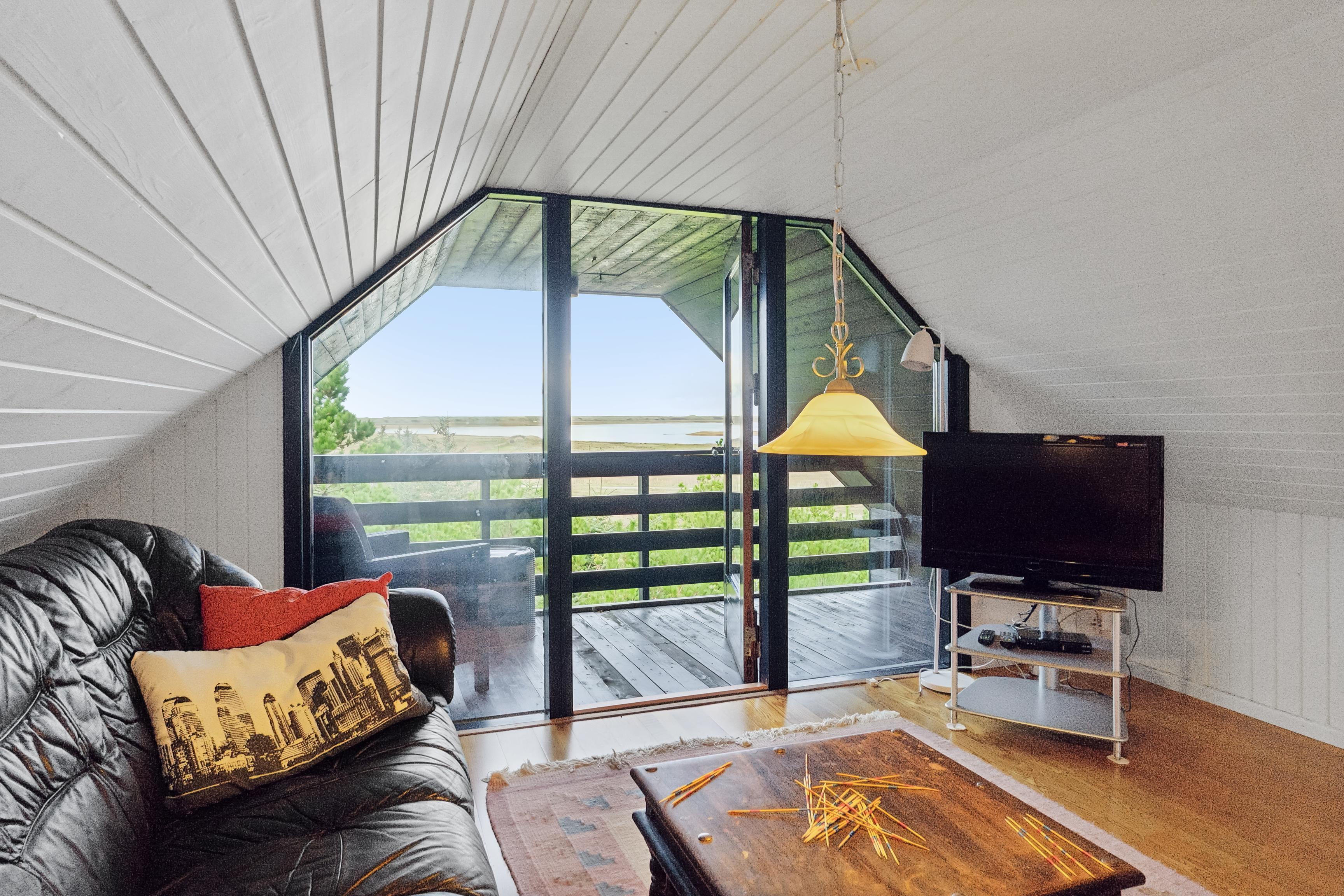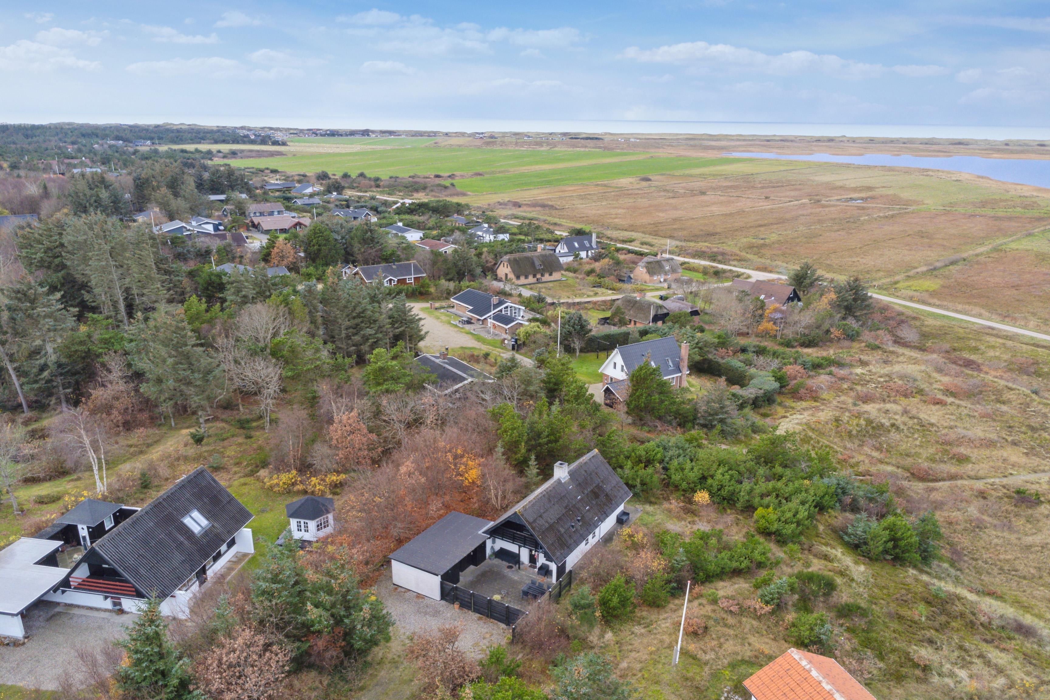 Det er sjældent, at man finder et feriehus, der både byder på gode læforhold og en imponerende udsigt – men dette hus har begge dele. Højt placeret på bakkerne ved Nissum Fjord, tilbyder det en betagende panoramaudsigt over fjorden, de omkringliggende enge og klitterne i baggrunden.