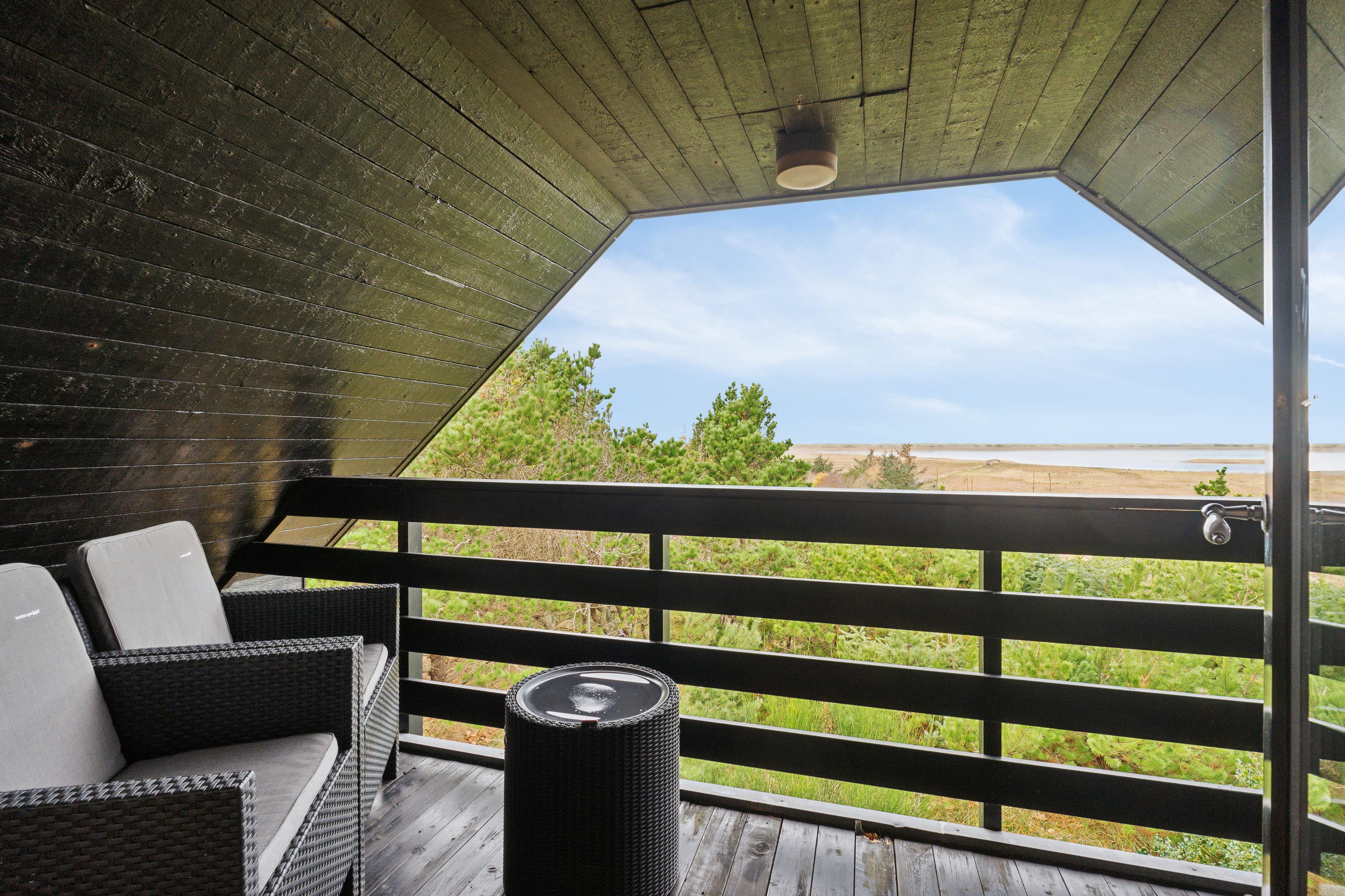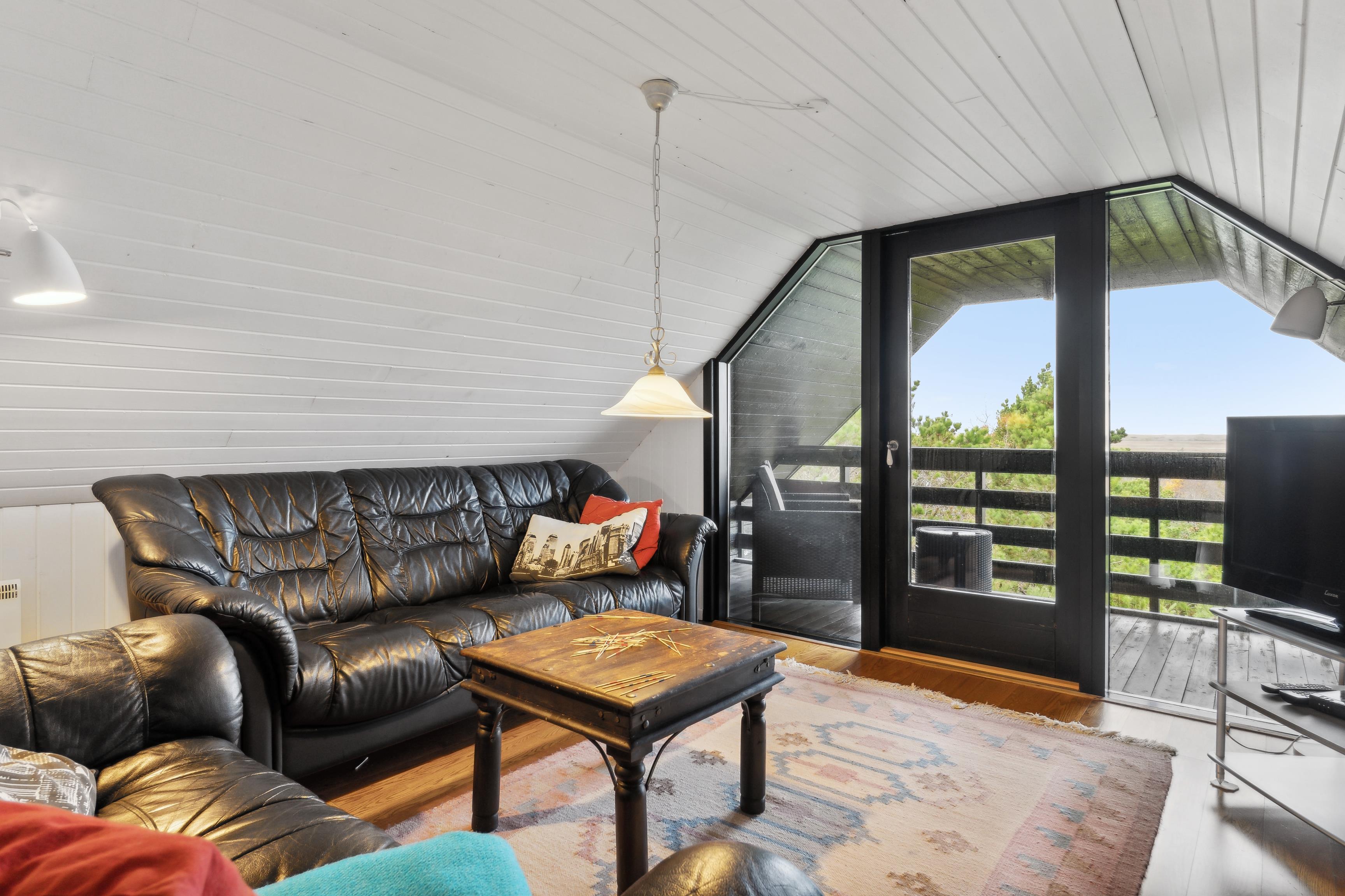 1. sal: På førstesalen finder I et værelse og en stue med samme betagende udsigt over fjorden og klitterne. Der er også en skøn altan mod fjorden – et perfekt sted at nyde solnedgangen over Vesterhavet.