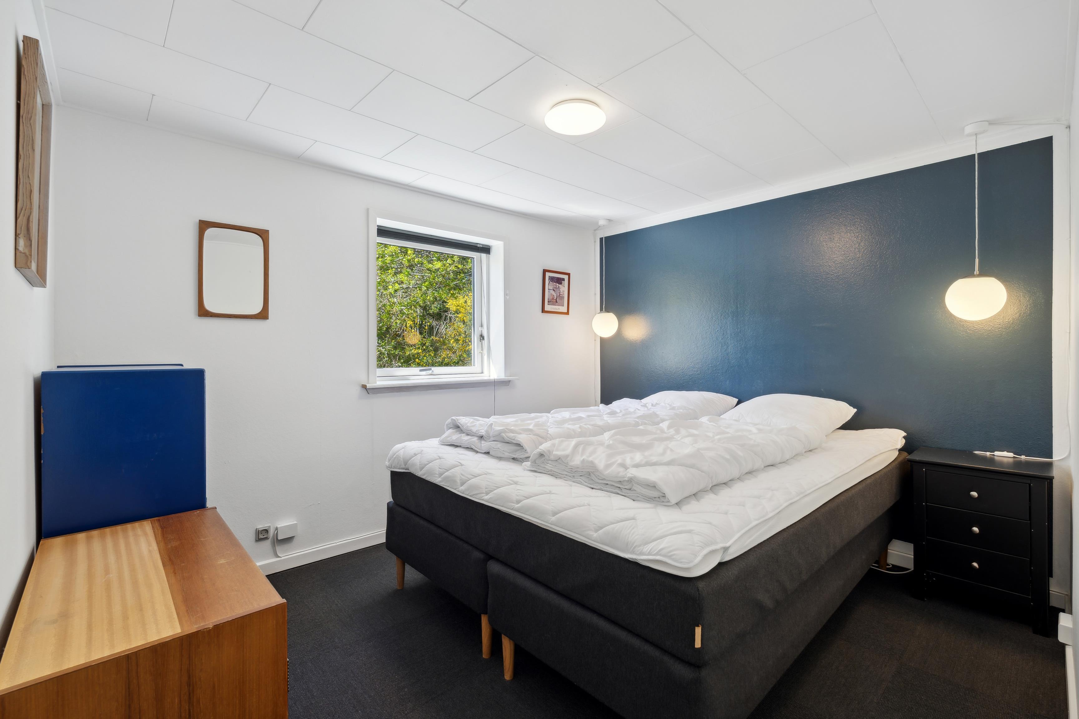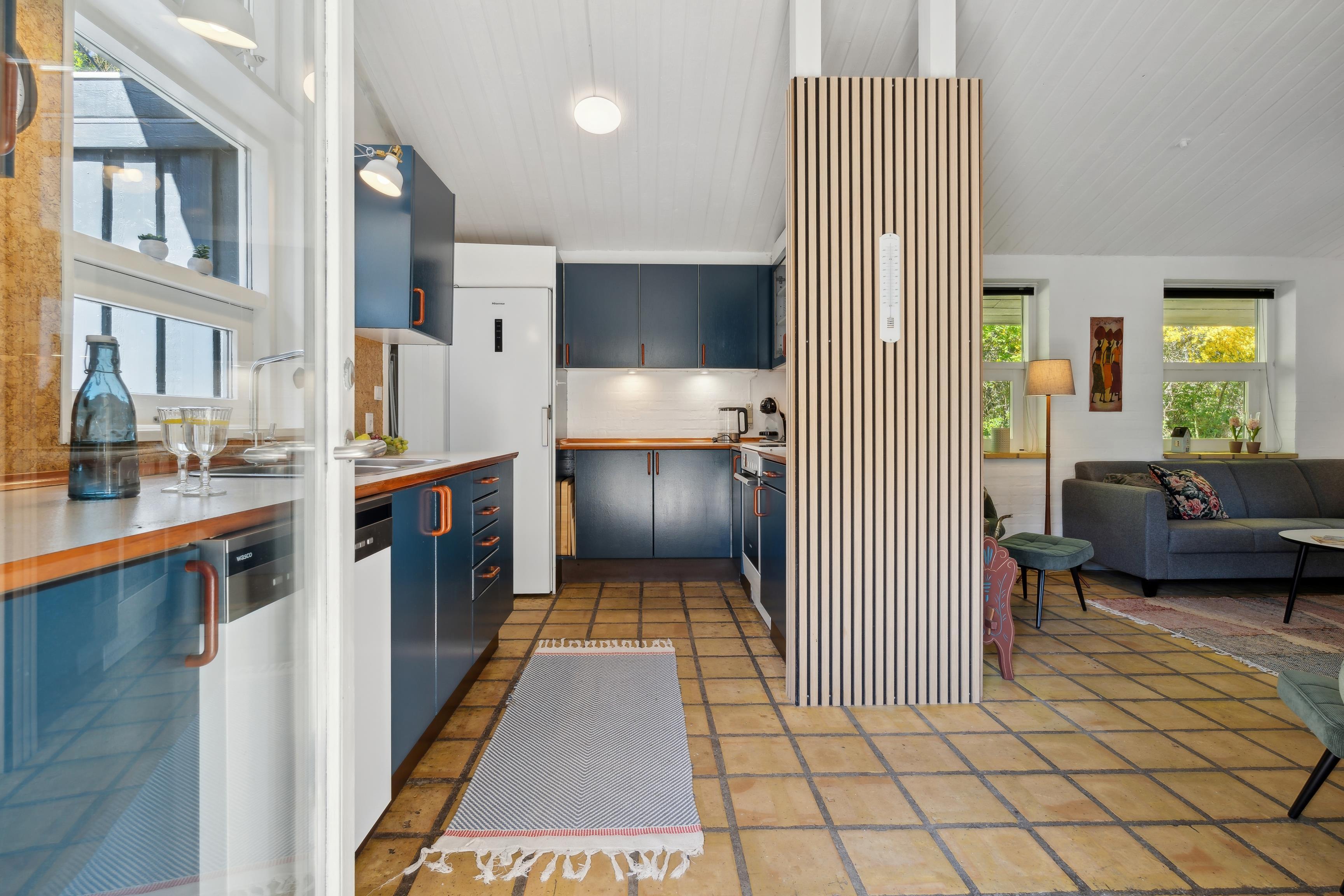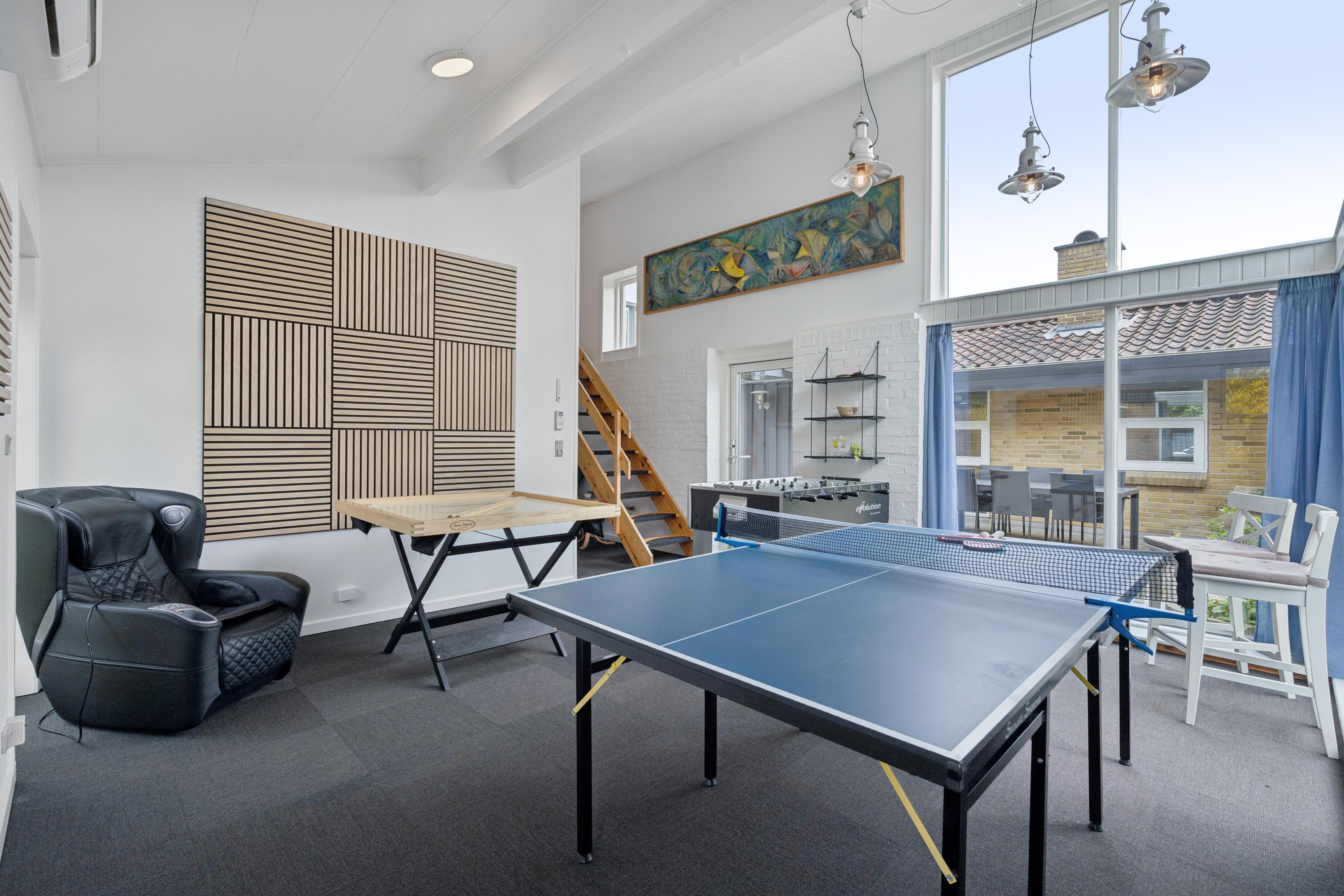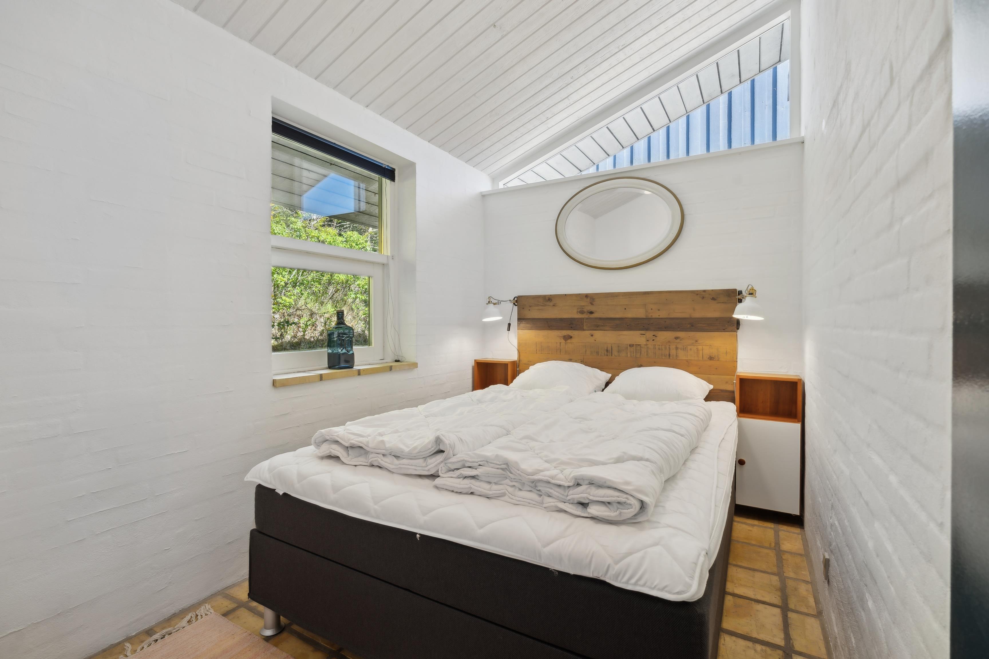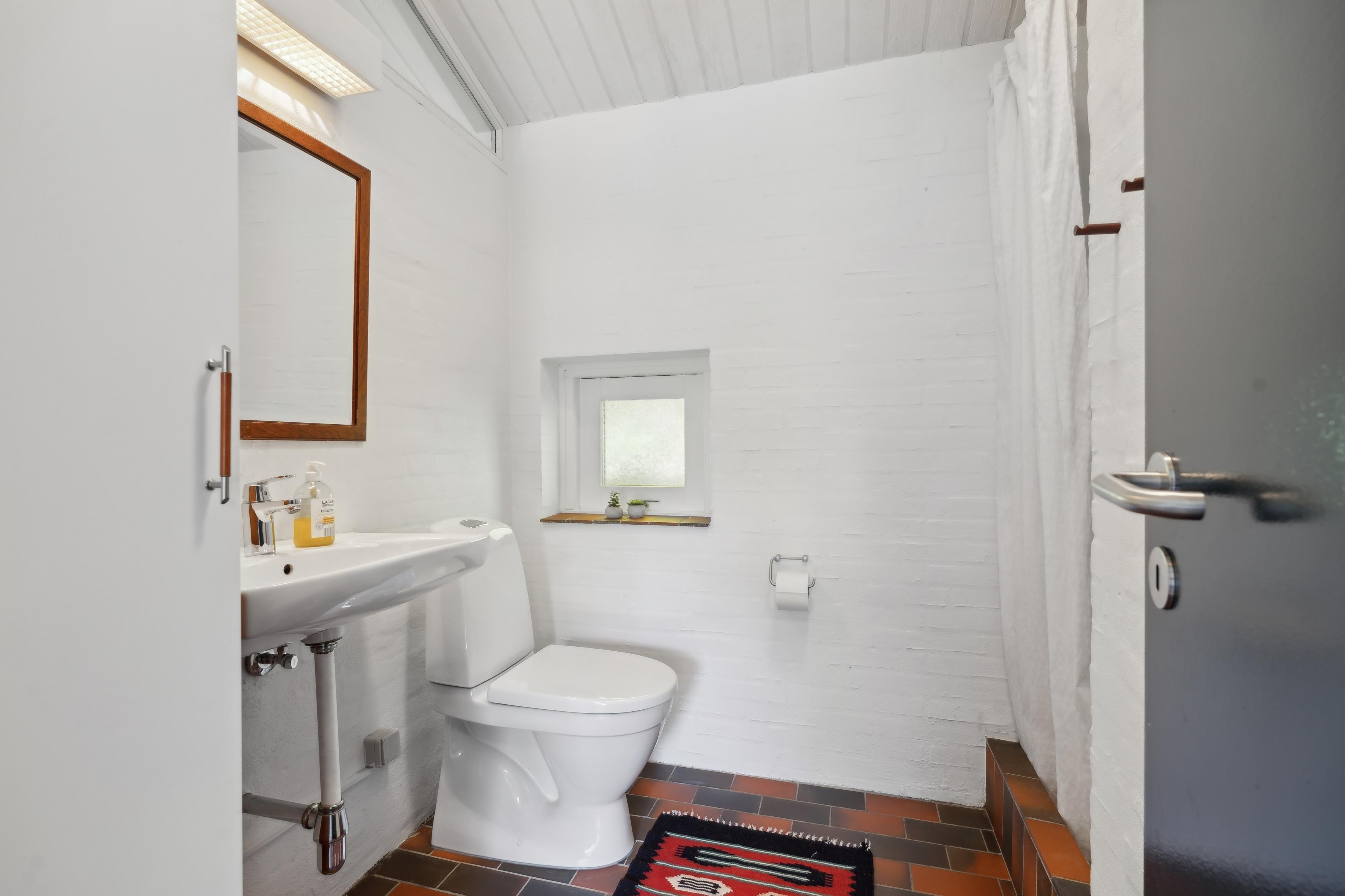 Dette charmerende sommerhus med ægte sommerhusstemning indbyder til god underholdning og leg i aktivitetsrummet samt afslapning foran brændeovnen i den hyggelige stue. Sommerhuset er delt op i 2 afdelinger. En afdeling med 3 værelser, stue, køkken og et badeværelse med bruser. Den anden afdeling har aktivitetsrum, et værelse med dobbeltseng, et badeværelse med badekar samt en hems med to enkelt senge. Der er en god trappe op til hemsen. Fra hemsen er der udgang til en lille altan, hvor kaffen kan nydes mellem trætoppene. I sommerhusets aktivitetsrum er der god mulighed for at konkurrere i bordtennis, bordfodbold eller bob. Der er 2 varmepumper i sommerhuset, et i hver afdeling. I alt 10 personer med maksimalt 3 kæledyr kan nyde og slappe af på ferien her.