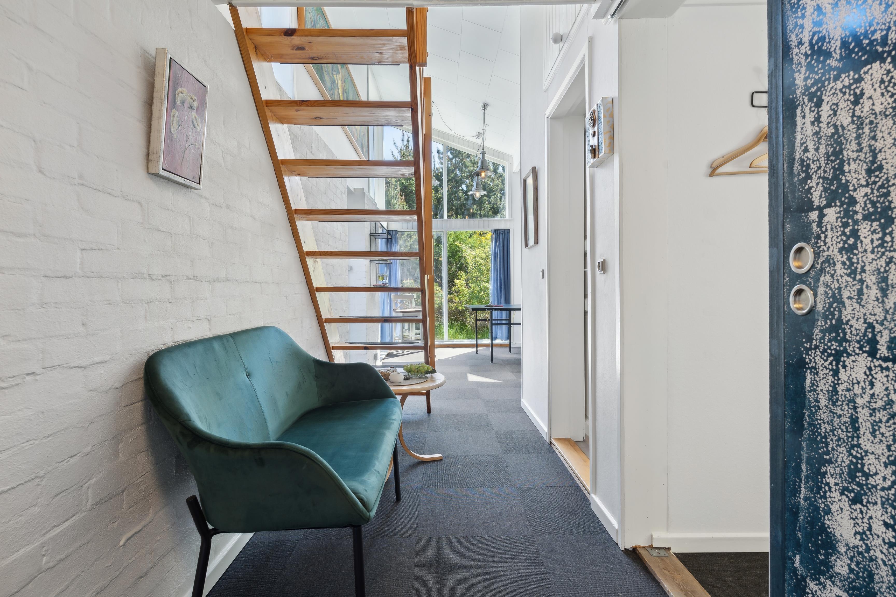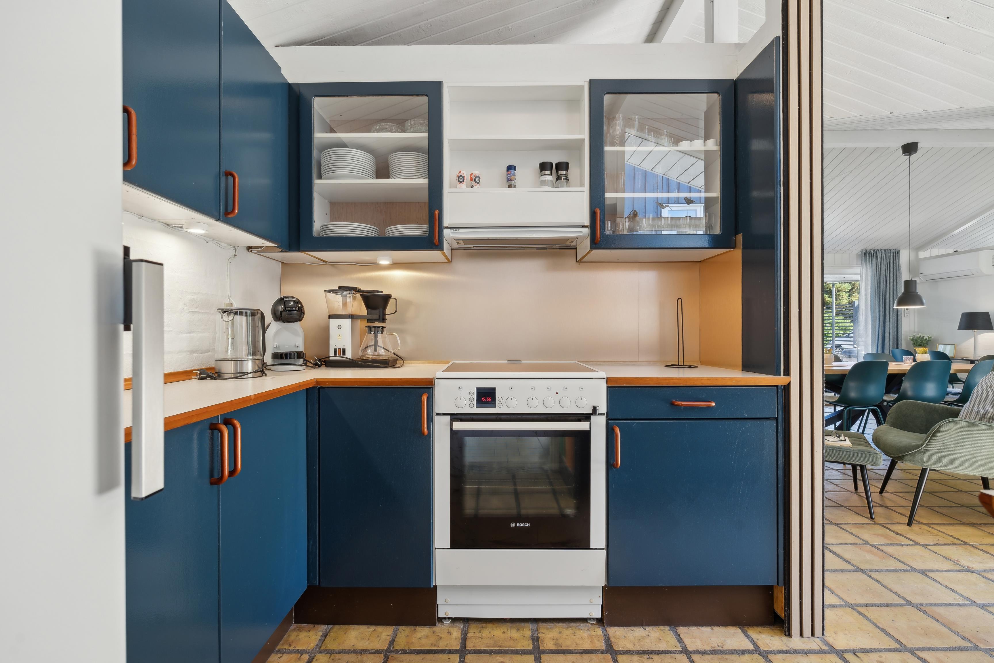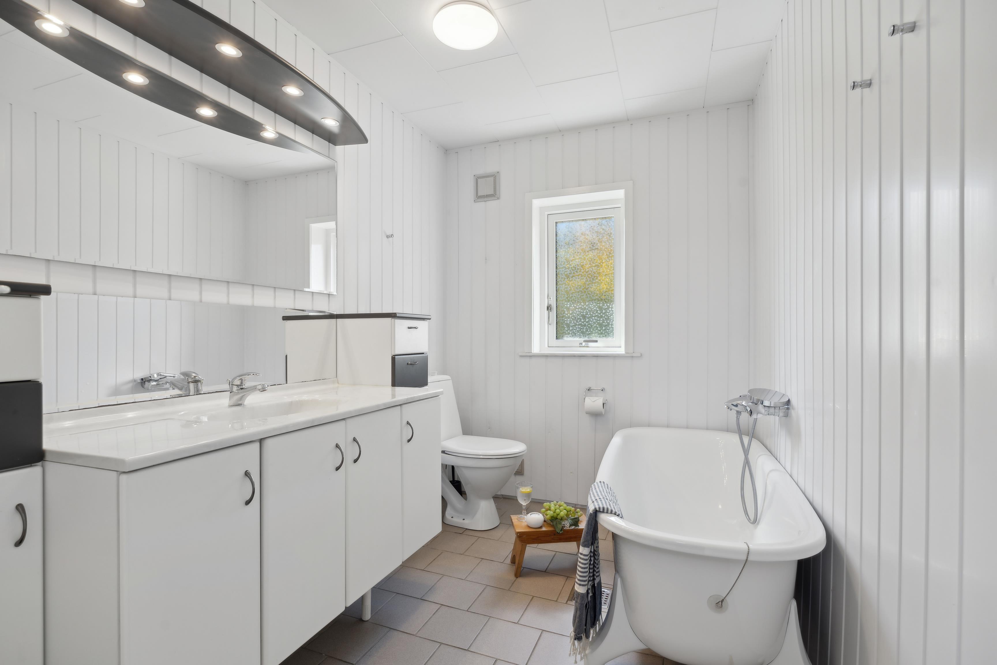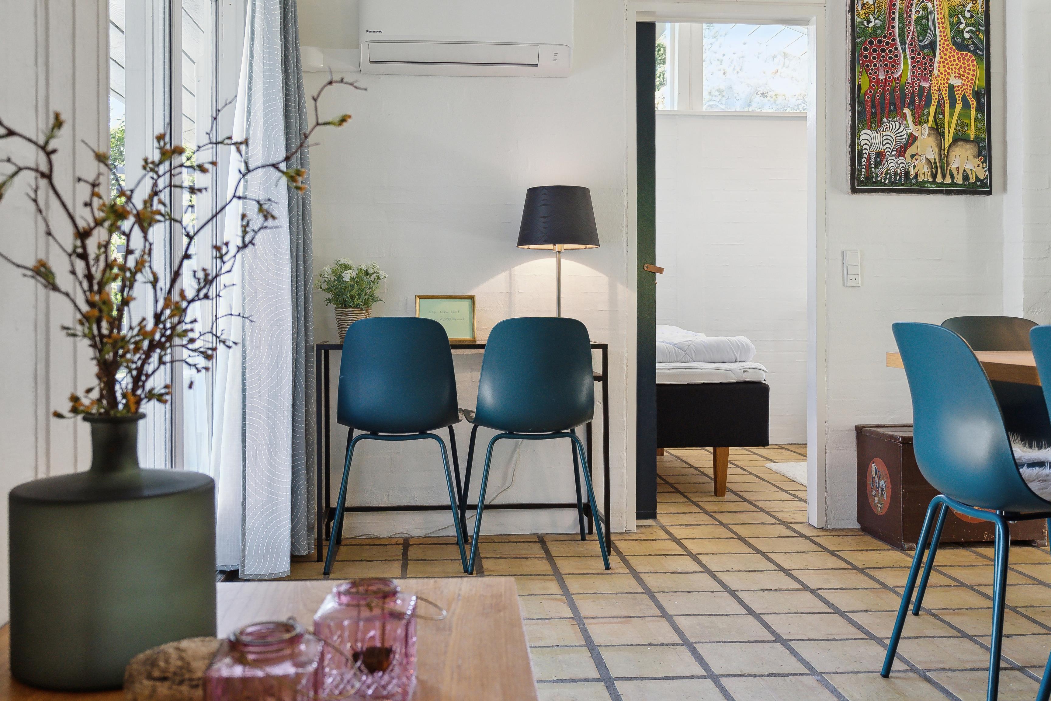 Dette charmerende sommerhus med ægte sommerhusstemning indbyder til god underholdning og leg i aktivitetsrummet samt afslapning foran brændeovnen i den hyggelige stue. Sommerhuset er delt op i 2 afdelinger. En afdeling med 3 værelser, stue, køkken og et badeværelse med bruser. Den anden afdeling har aktivitetsrum, et værelse med dobbeltseng, et badeværelse med badekar samt en hems med to enkelt senge. Der er en god trappe op til hemsen. Fra hemsen er der udgang til en lille altan, hvor kaffen kan nydes mellem trætoppene. I sommerhusets aktivitetsrum er der god mulighed for at konkurrere i bordtennis, bordfodbold eller bob. Der er 2 varmepumper i sommerhuset, et i hver afdeling. I alt 10 personer med maksimalt 3 kæledyr kan nyde og slappe af på ferien her.