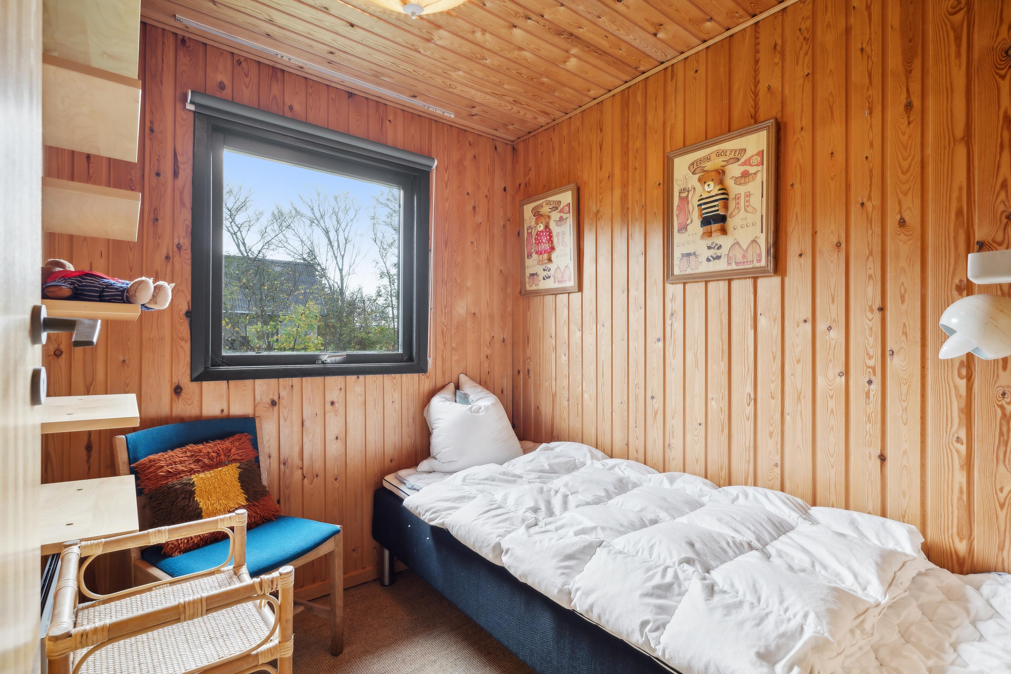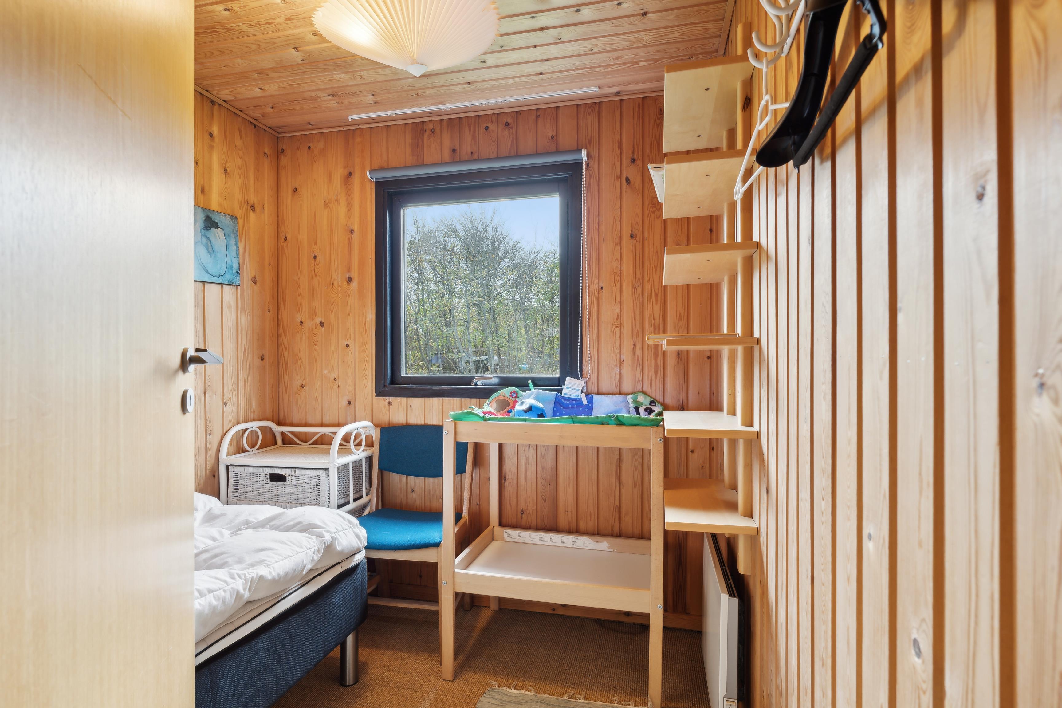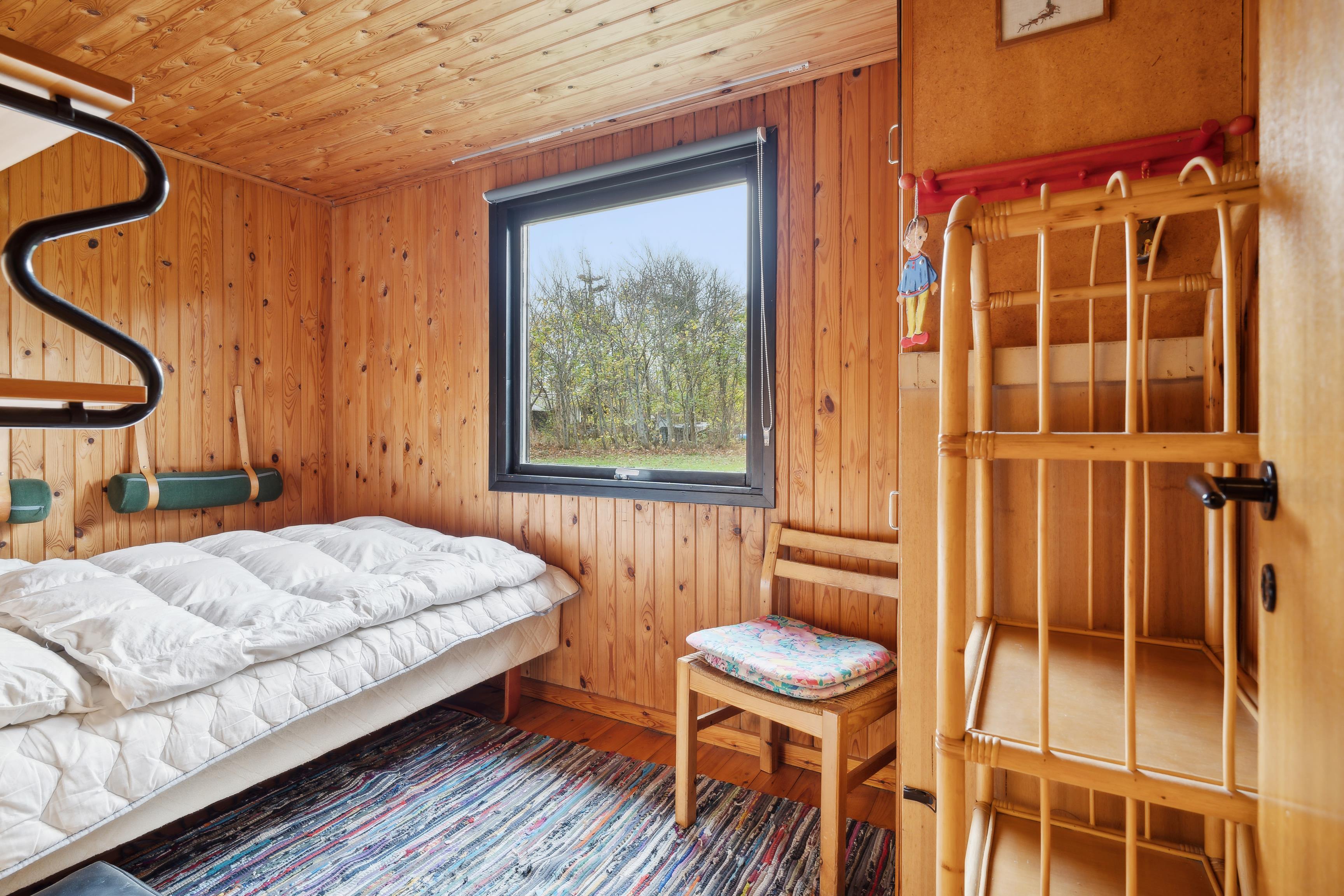 Foruden et badeværelse med gulvvarme og bruser rummer huset fire soveværelser: et med dobbeltseng, to værelser med hver en enkeltseng og et fjerde værelse med køjesenge