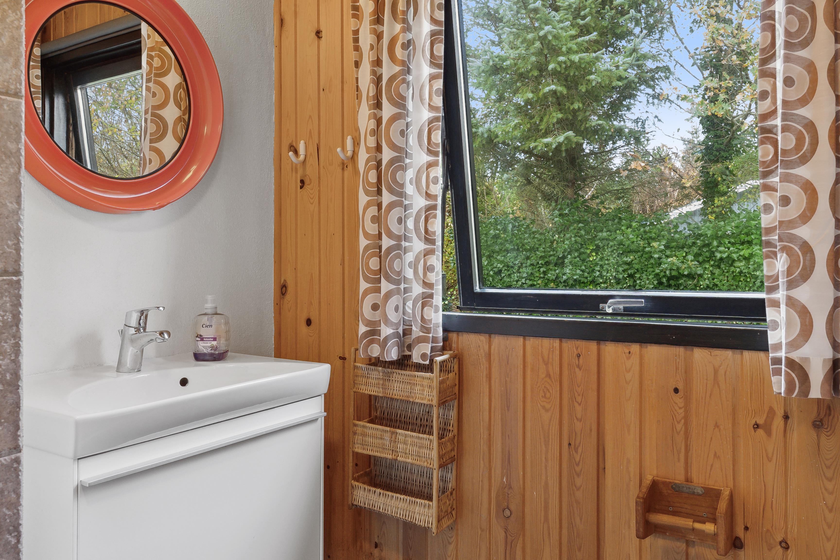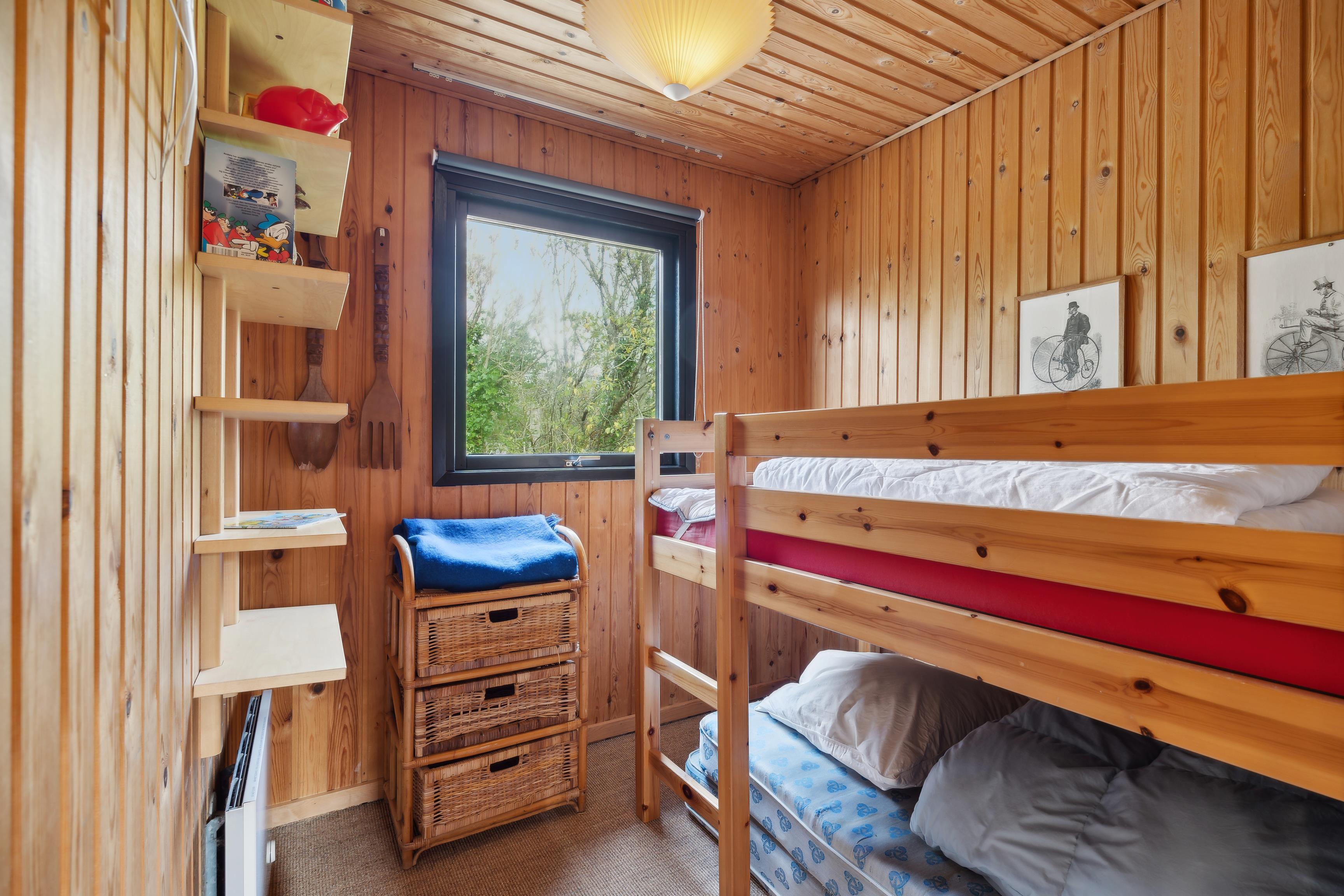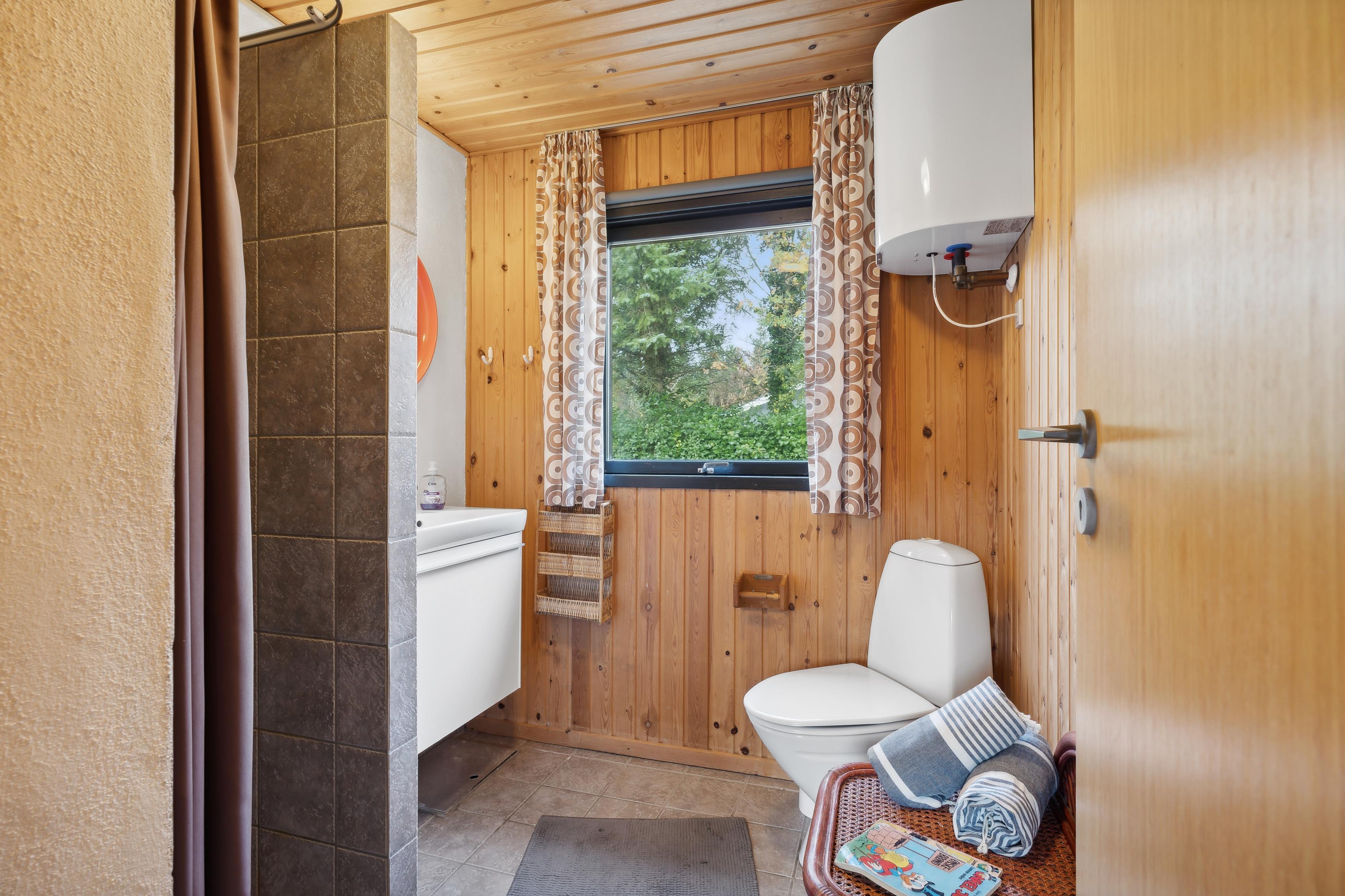 Foruden et badeværelse med gulvvarme og bruser rummer huset fire soveværelser: et med dobbeltseng, to værelser med hver en enkeltseng og et fjerde værelse med køjesenge