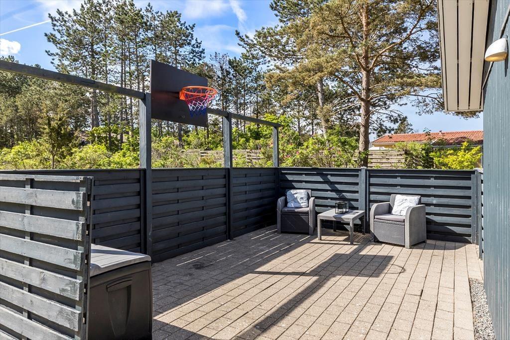 Haven er som en grøn oase, hvor I kan skabe minder fra morgen til aften. Den store fliseterrasse har alt, hvad hjertet kan begære – solrige kroge, en grill til både gas og kul, og et bålsted med gryde til at lave mad under åben himmel. Når børnene ikke skyder til måls på fodboldmålene eller spiller bold på græsplænen, kan de udforske Alfreds hemmelige hule, gemt godt væk bagerst i den lukkede have. Haven er helt afskærmet, så både børn og firbenede familiemedlemmer kan boltre sig frit og trygt.