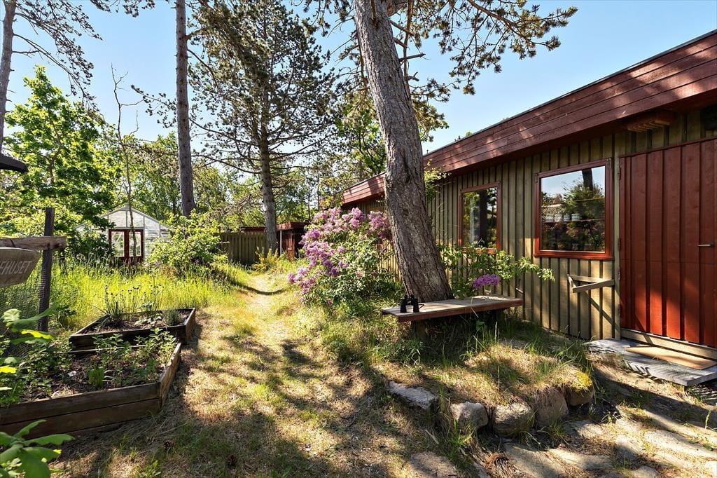 Nyd livet udenfor: Forestil dig en stor, vidunderlig grund i første række til vandet. Fra huset kan du tage en afslappet gåtur over grunden, krydse vejen og snart står du ved den skønne Fjellerup Strand, hvor sandet er blødt og vandet klart. På vej tilbage fra en opfriskende dukkert, kan du nemt svinge forbi det hyggelige ishus for at nyde en lækker is. Naturgrunden er noget helt særligt. Den byder på masser af dejlige steder at sidde og slappe af, her er små stier og vild beplantning, der giver en afslappende følelse. Du finder nemt din egen yndlingslille plet, hvor du kan lade tankerne flyde til fuglesang fra trætoppene. De små gange og skjulte kroge inviterer til opdagelse, leg og eventyr for både børn og voksne. Et sted, hvor minder skabes, hvor tiden står stille og hvor du kan finde ro og glæde i naturens skønhed