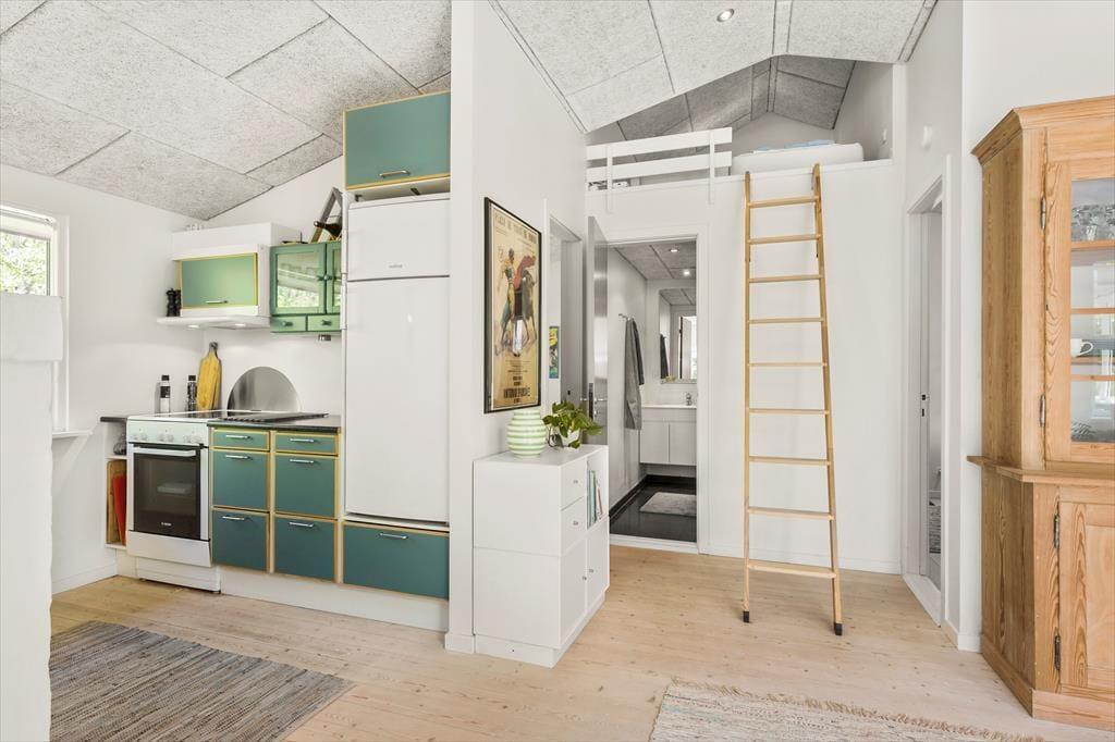 Velkommen indenfor I den dybe, tætte skov gemmer dette sommerhus sig blandt træernes grønne løv. Det er et sted, hvor hvert hjørne oser af hygge og varme, og hvor naturens nærvær føles som en kærkommen omfavnelse. På verandaen breder sig en atmosfære af afslapning og samvær, med en terrassevarmer og et læhegn, der skaber en behagelig kokon, så du kan sidde ude længe. Over hovedet svajer vinrankerne og giver en følelse af at være på en sydlandsk terrasse midt i den danske skov. Køkken med sommerhusstemning og et strejf af landlig idyl. Her kan du tilberede dejlig feriemad, mens du holder øje med de mindste og sludrer med de ældste. I stuen danser flammerne fra brændeovnen, og i hjørnet er spisekrogen med rustik slagbænk, hvor du kan nyde maden med udsigt til den fortryllende skovgrund udenfor. Sommerhuset byder på to hyggelige soveværelser - begge med dobbeltseng og en sovehems, hvor du kan lade drømmene flyve frit under det skrå loft. Badeværelset er indrettet med alt, hvad du behøver for at føle dig velkommen og komfortabel.