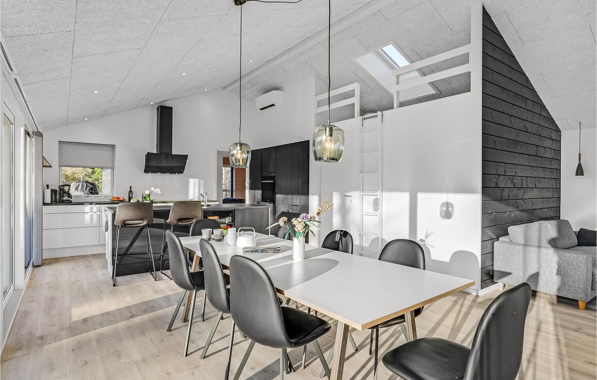 Velkommen til dette stilfulde feriehus med lækre faciliteter. Husets rum er åbne og lyse med store vinduespartier og god plads at slappe af på. Tilbered lækre feriemåltider i husets veludstyrede køkken og stream jeres yndlings serier og film via Chromecast på den store fladskærm i stuen.