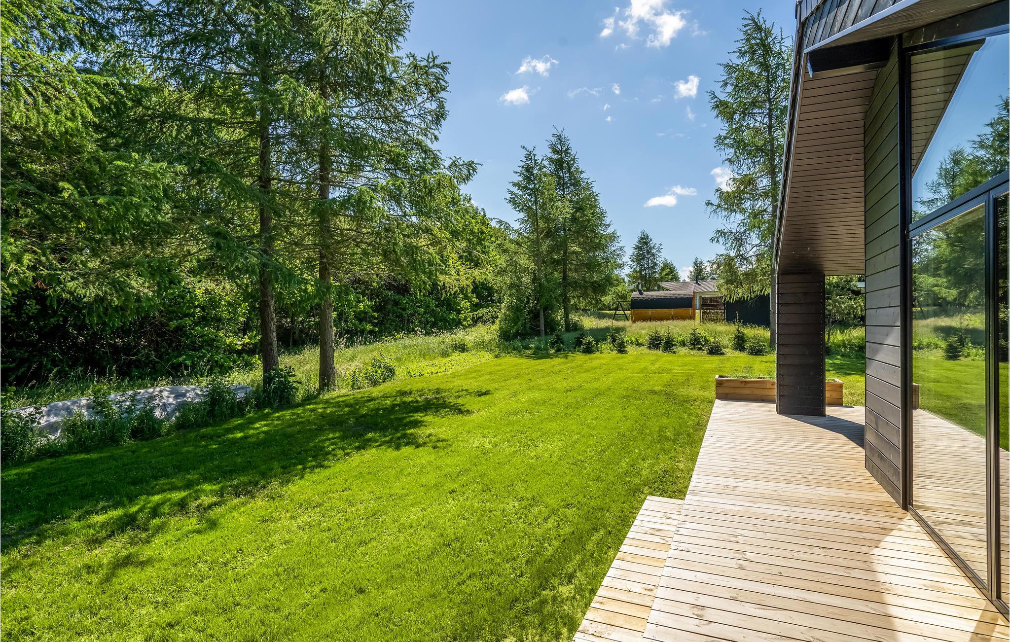 Til huset hører en kæmpestor træterrasse, hvor I kan nyde solen og ferien i fulde drag. Her finder I også et udendørs spabad - det perfekte sted at nyde en drink om aftenen. Huset ligger på en stor naturgrund, hvor jeres børn kan lege og boltre sig.