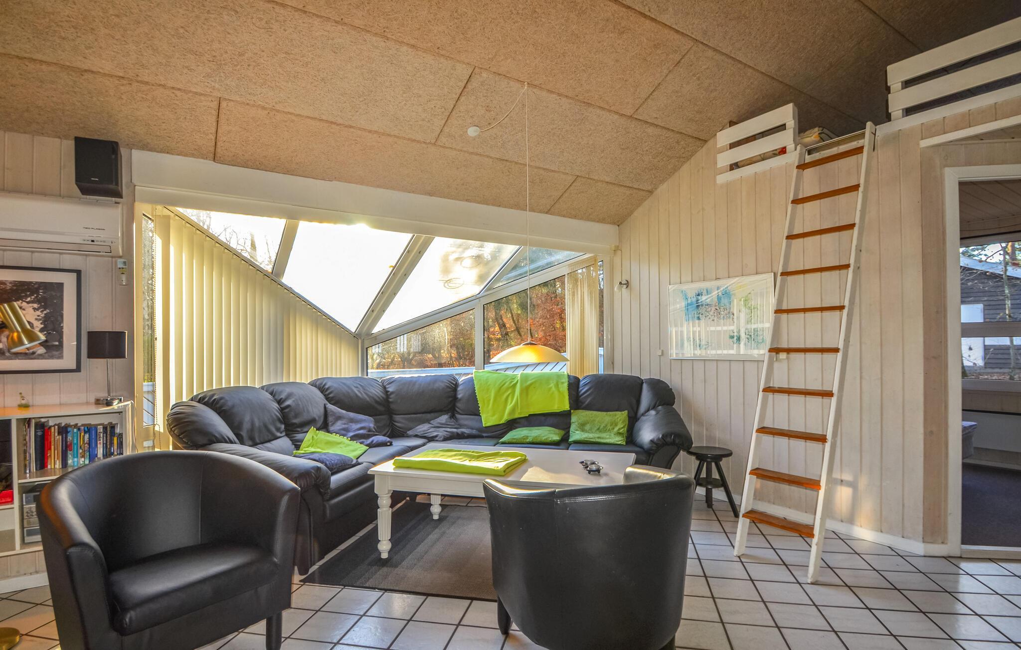 Et flot og meget velholdt feriehus såvel indenfor som udenfor. Huset ligger på en skøn grund i et meget naturskønt område tæt på skov og strand. Der er særdeles gode muligheder for at cykle eller gå lange ture. Der kan fiskes fra båd, i put and take søer eller direkte fra stranden. Indenfor i huset venter masser af muligheder som badning i poolen (med svømmetræner samt børnepool), spabad, sauna, bordfodbold og gratis internet. Udendørs findes et legehus, sandkasse og gynger. Ved huset finder I desuden et skur til opbevaring af f.eks. cykler. Der kan spilles badminton, kroket m.m. TV signaler modtages digitalt såvel fra tysk som dansk tv, inkl. alle DR kanaler og TV2. Huset er yderst energivenligt idet opvarmningen af såvel poolvand som stue sker med energivenlige varmepumper, hvilket medfører lavere energiomkostninger. Anlægget kan også virke som aircondition. Ejerne af huset sørger til enhver tid for, at huset er flot vedligeholdt.