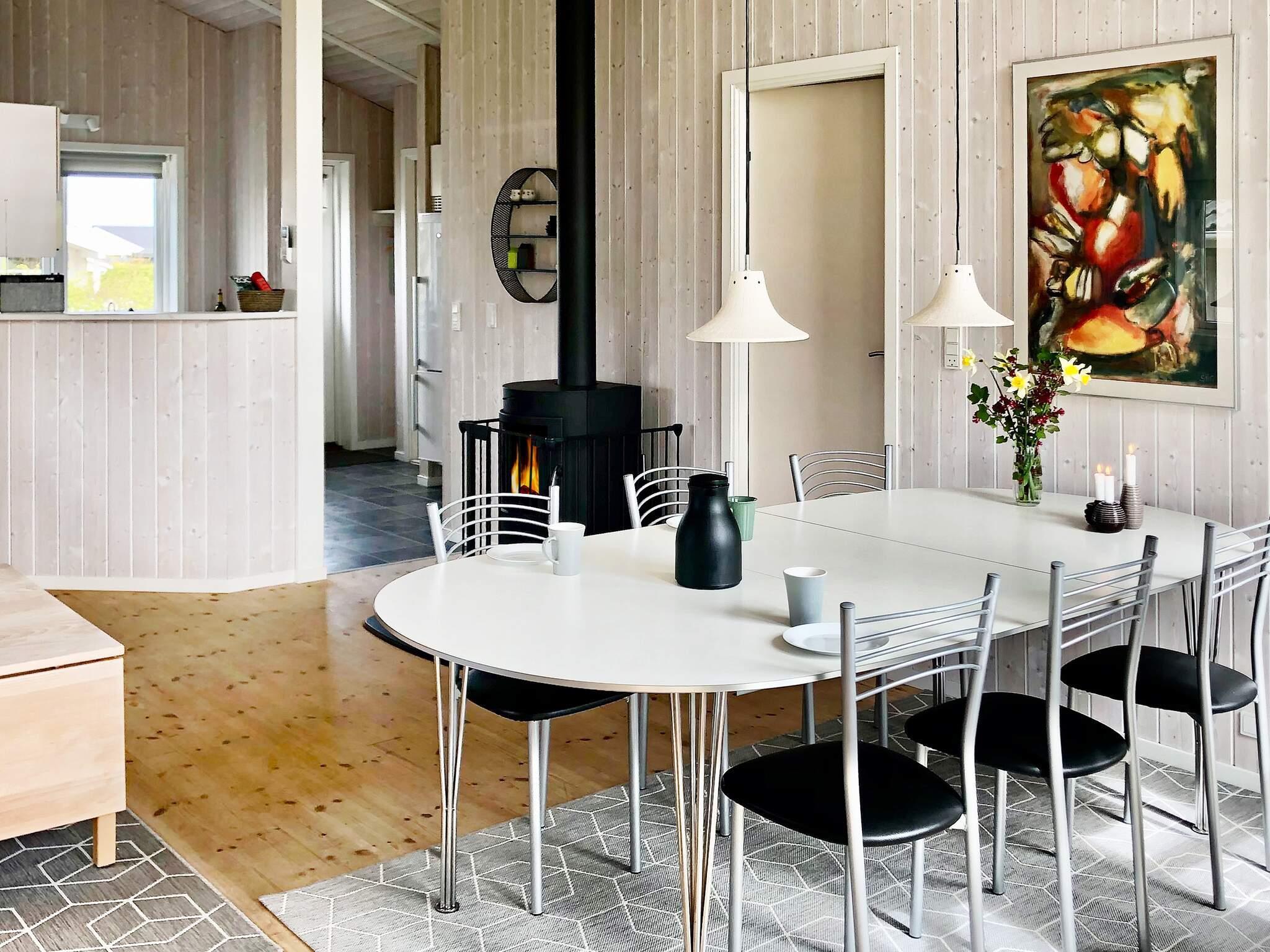 I Flovt finder I dette rummelige sommerhus bare cirka 300 metre fra stranden. Sommerhusets hjerte er det lyse og rummelige køkken/alrum. Herfra er der overalt udsigt til haven.