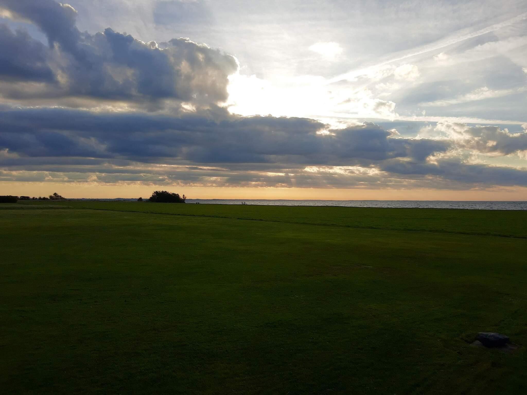Hyggeligt sommerhus ved Flovt Strand med brændeovn, overdækket terrasse og legeplads til børn.
