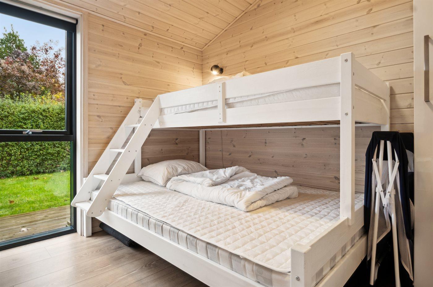 Der er i alt 4 soveværelser. Sovepladserne fordeler sig på: 4 sovepladser i dobbeltsenge. 4 sovepladser i køjesenge. Derudover er der 1 stk. barneseng.