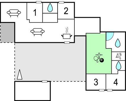 Huset er smagfuldt og lyst indrettet samt moderne møbleret. Dejligt køkken/alrum, gode soveværelser og flotte badeværelser. Her har I alt hvad hjertet kan begære, hvis I gerne vil have en aktiv ferie. I huset findes et poolbord, hvor I kan udfordre familien til en fredsommelig dyst. I kan også slappe af på de dejlige terrasser.