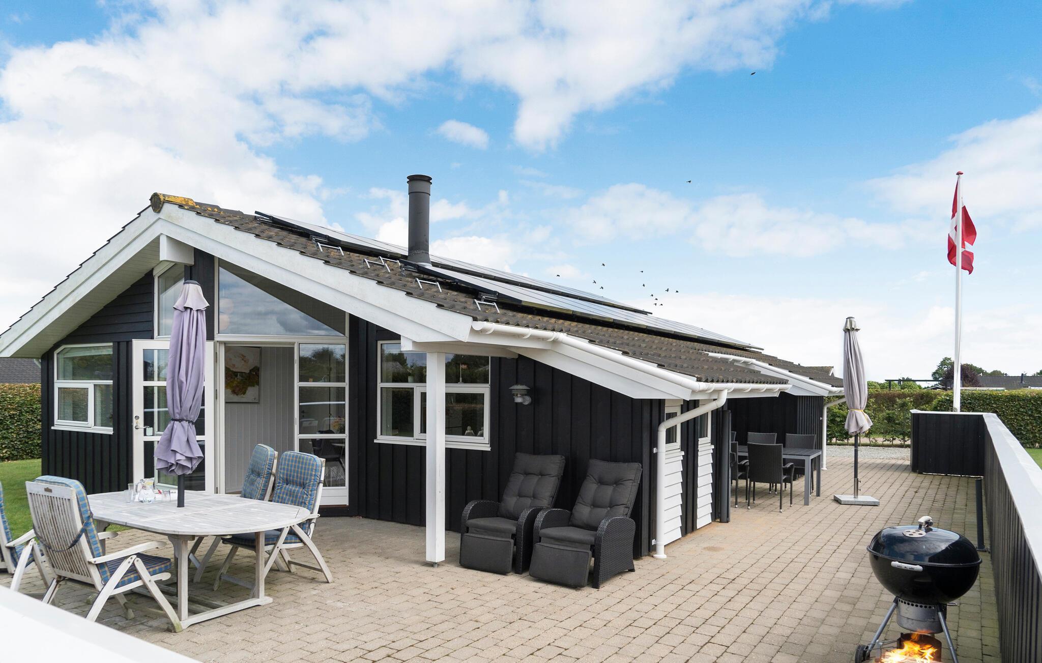 Nyd afslappende feriedage i et sommerhus med sauna, spabad og stor terrasse tæt ved Flovt Strand.