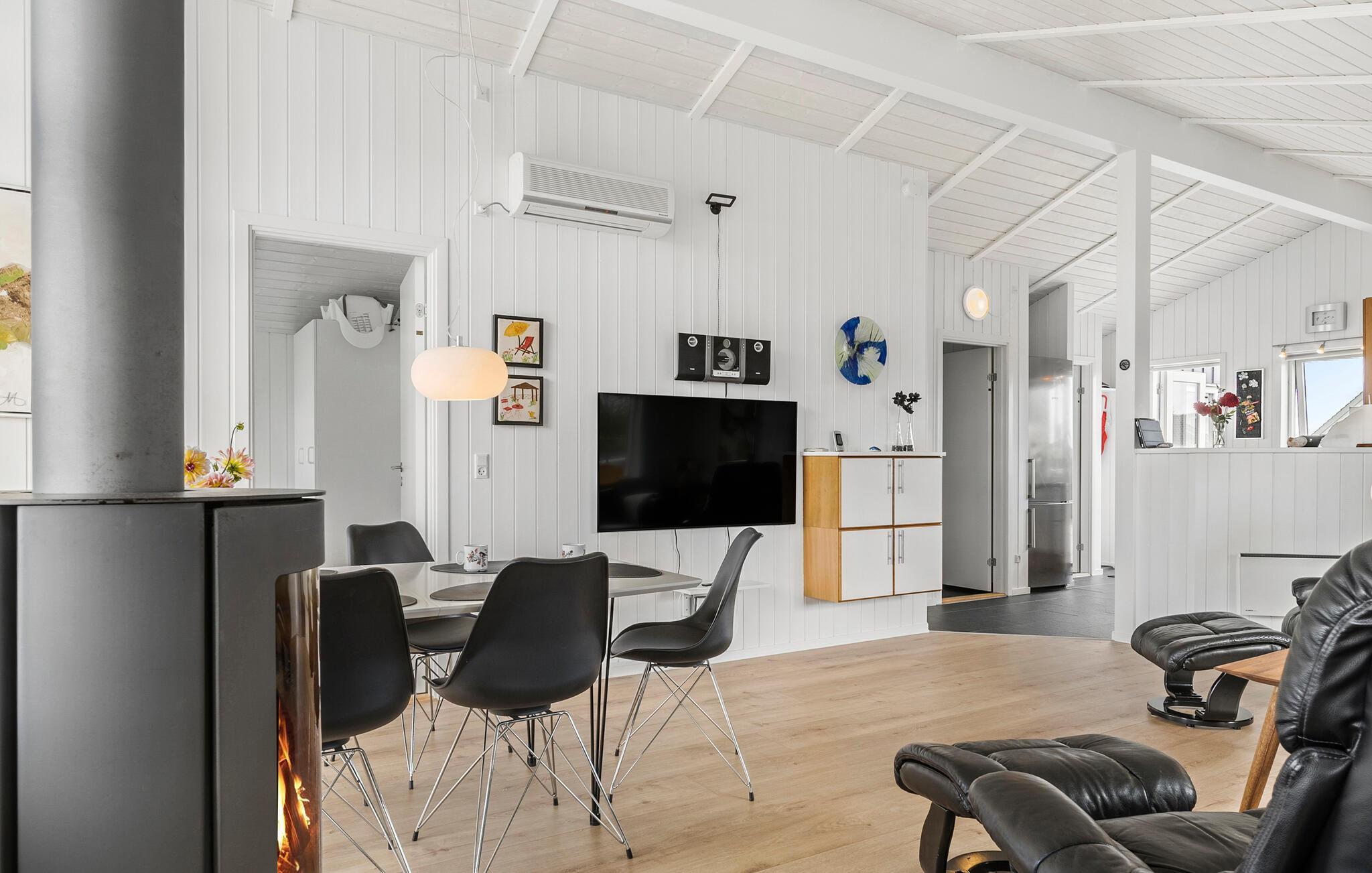 Dette skønne sommerhus er et dejligt helle, hvis I drømmer om at sætte hverdagen på pause. Her kan I tilberede lækre måltider i det veludstyrede køkken og nyde dem udendørs, når vejret er godt. Den store terrasse lægger op til en masse skønne timer under åben himmel. I huset er der sauna og spabad, så vil I gøre noget ekstra godt for jer selv oven på dagens strabadser, er det en herlig måde at sætte punktum for dagen. Til børnene er der både gynger og sandkasse i haven.