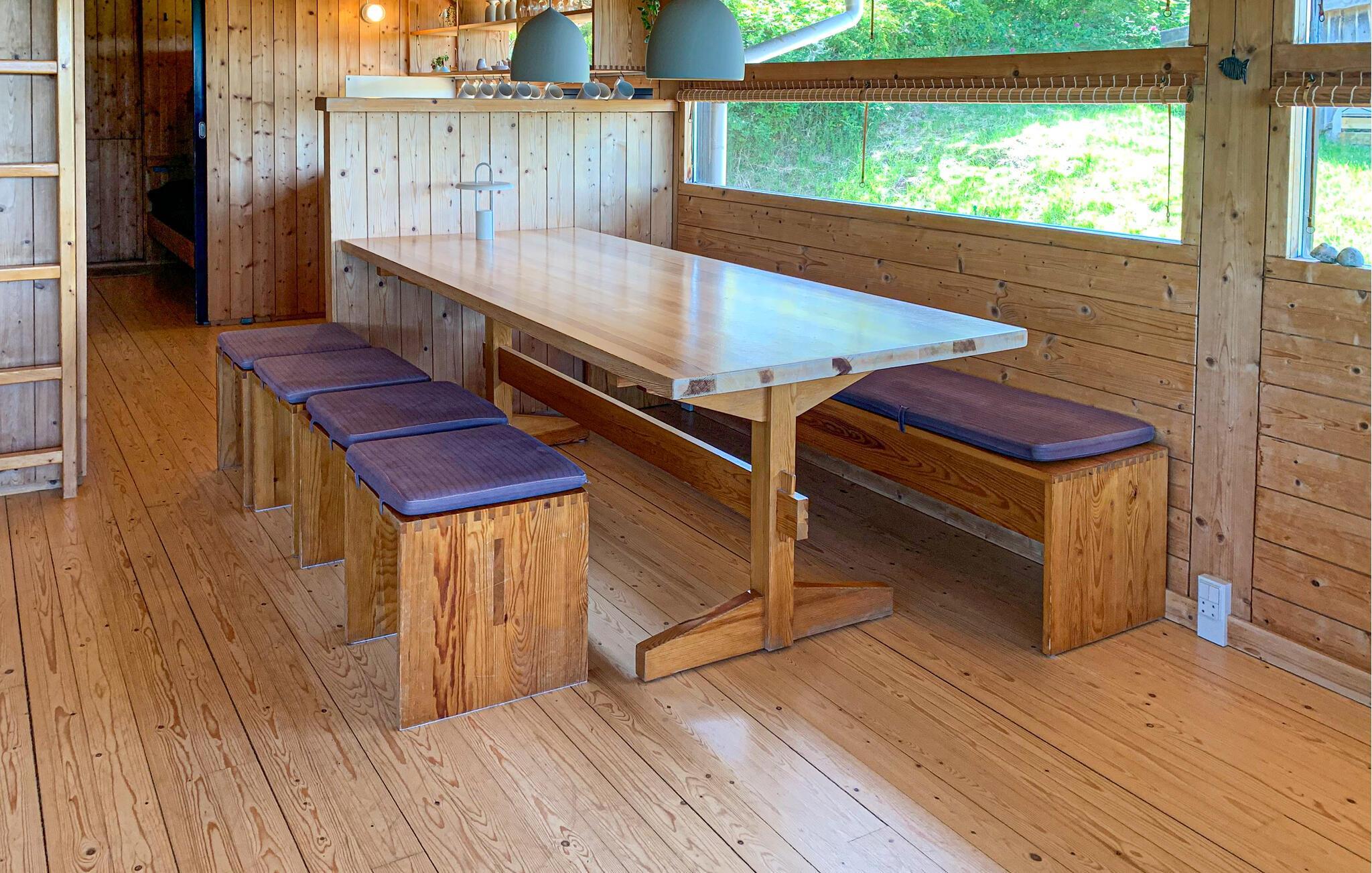 Brug den store terrasse til solbadning eller afslapning med en bog i en liggestol. Den delvist overdækkede træveranda tilbyder ly på blæsende dage og er også oplagt til morgenmad eller aftensmad udendørs. Den naturskønne have med enkle udendørs siddepladser smelter harmonisk sammen med omgivelserne.