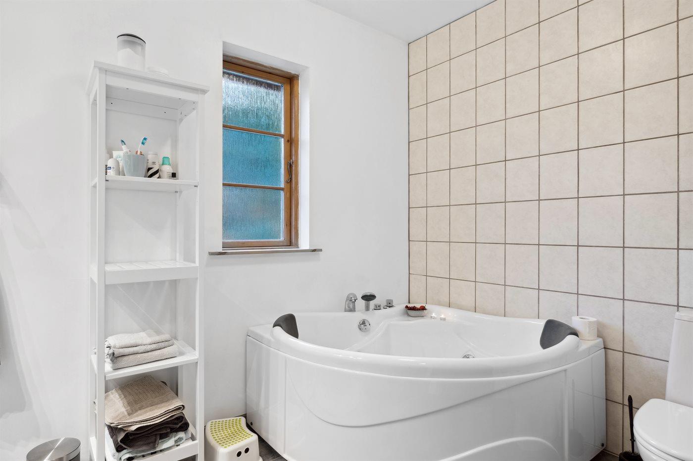 Der er 1 badeværelse med bruseniche og 2 toiletter, heraf 1 gæstetoilet. Der er gulvvarme på 1 badeværelse. Der er gulvvarme på gæstetoilettet. I saunaen er der mulighed for afslapning.