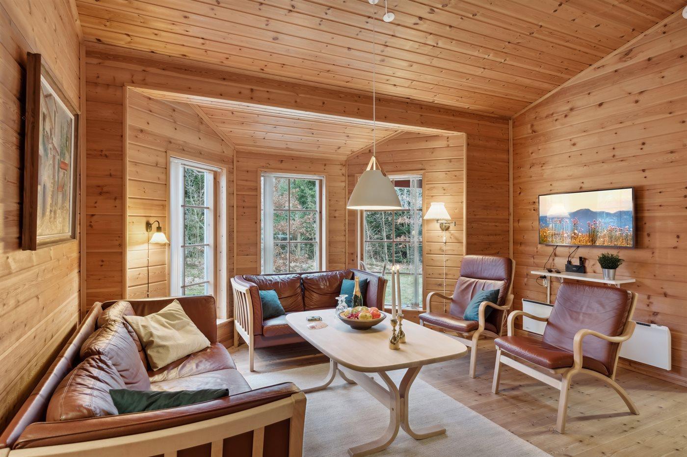 Hyggeligt sommerhus i naturskønt område med sauna, spa og store terrasser.