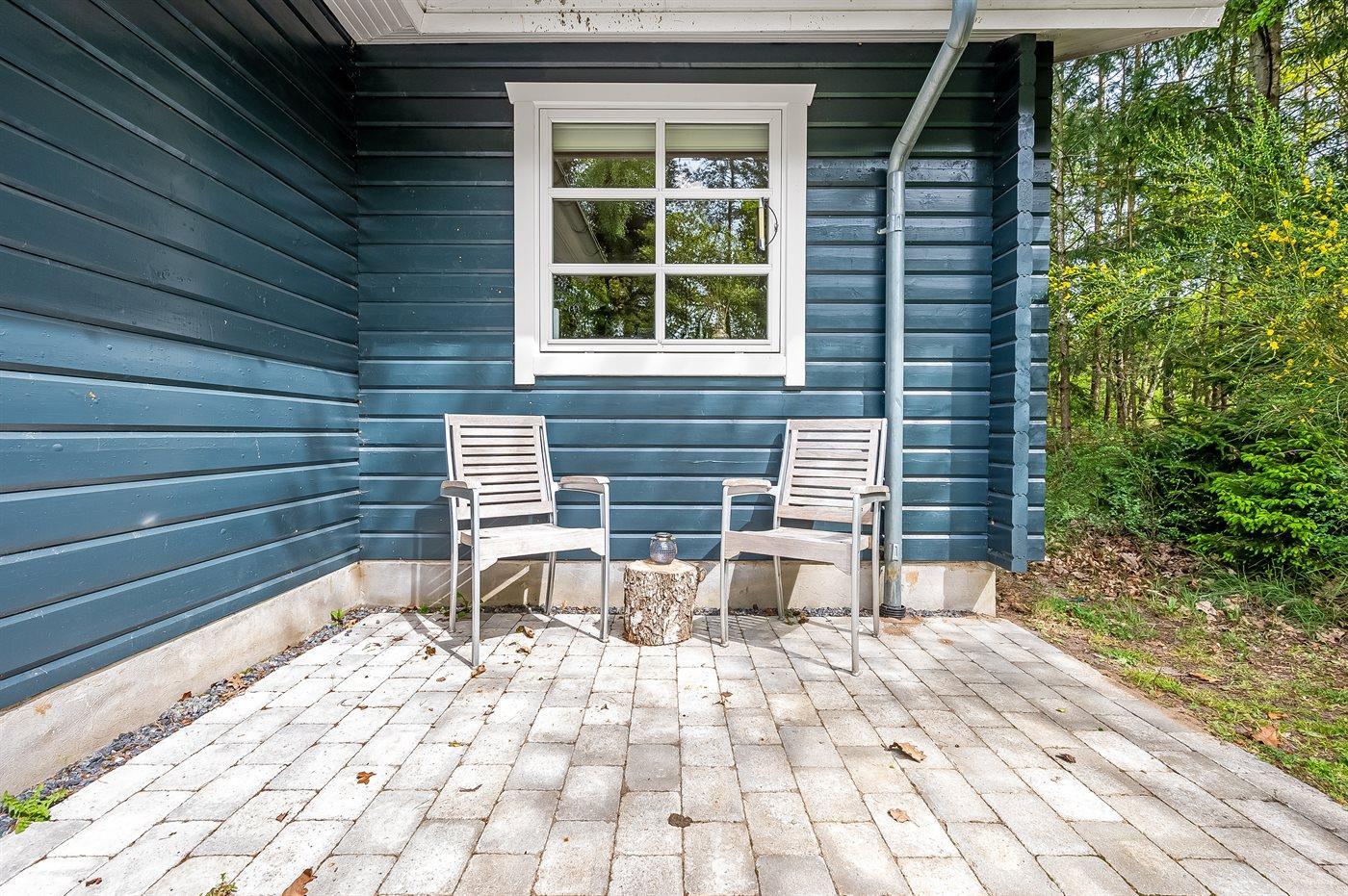 Ferieboligen er beliggende på en 1858 m² stor naturgrund. Der er 9000 m til havet. Der er en sø i en afstand af 1000 m. Nærmeste forretning er beliggende i en afstand af 3800 m. Der er en golfbane i en afstand af 10000 m. Til ferieboligen hører åbent terrasseareal. Der er redskabsrum. Grill til rådighed. Der er garage til rådighed. Parkering ved ferieboligen.