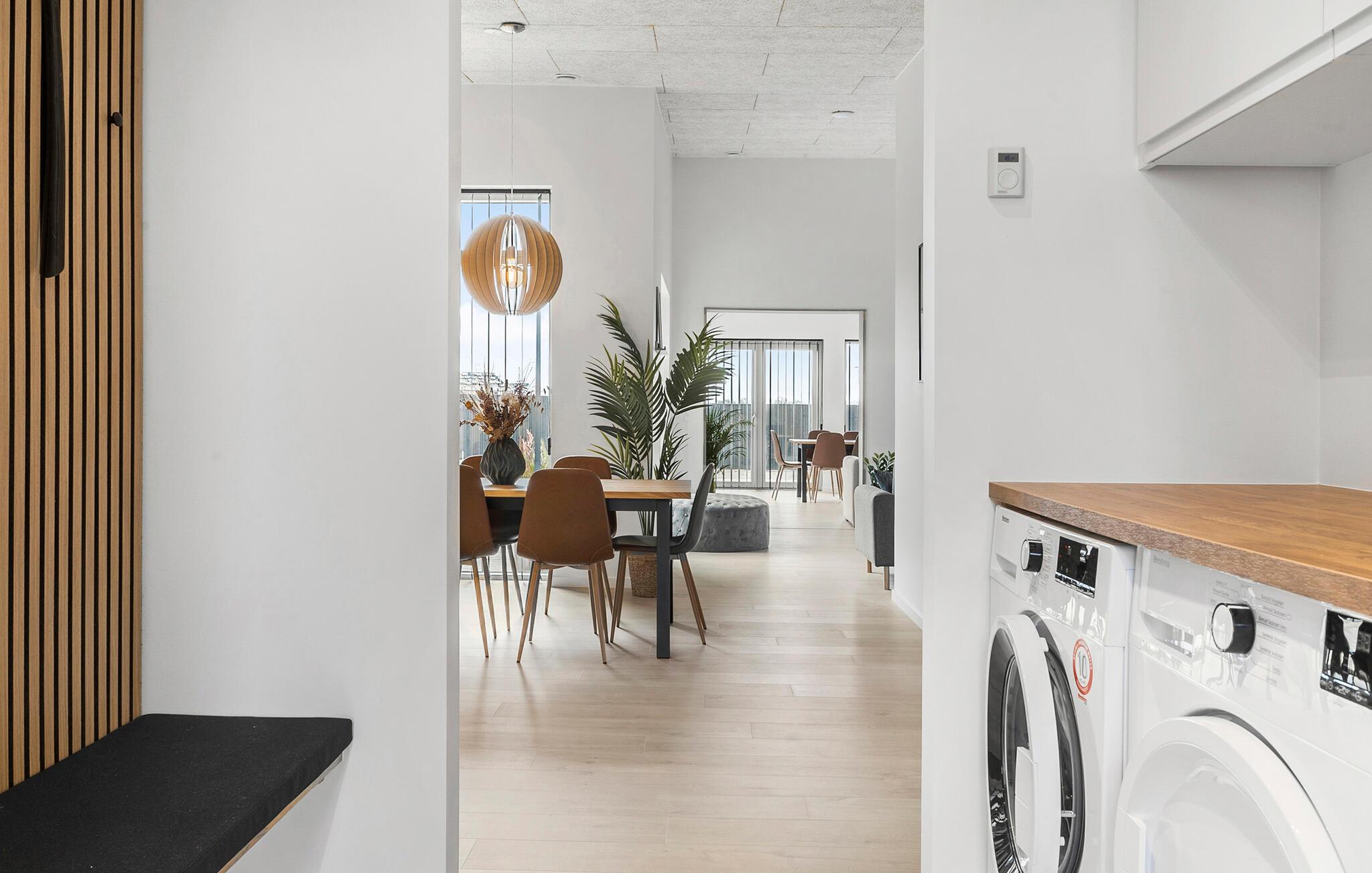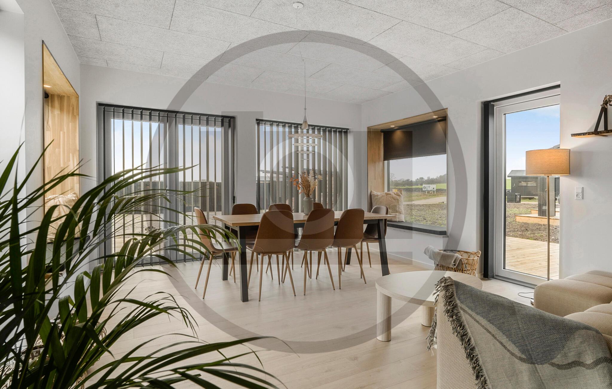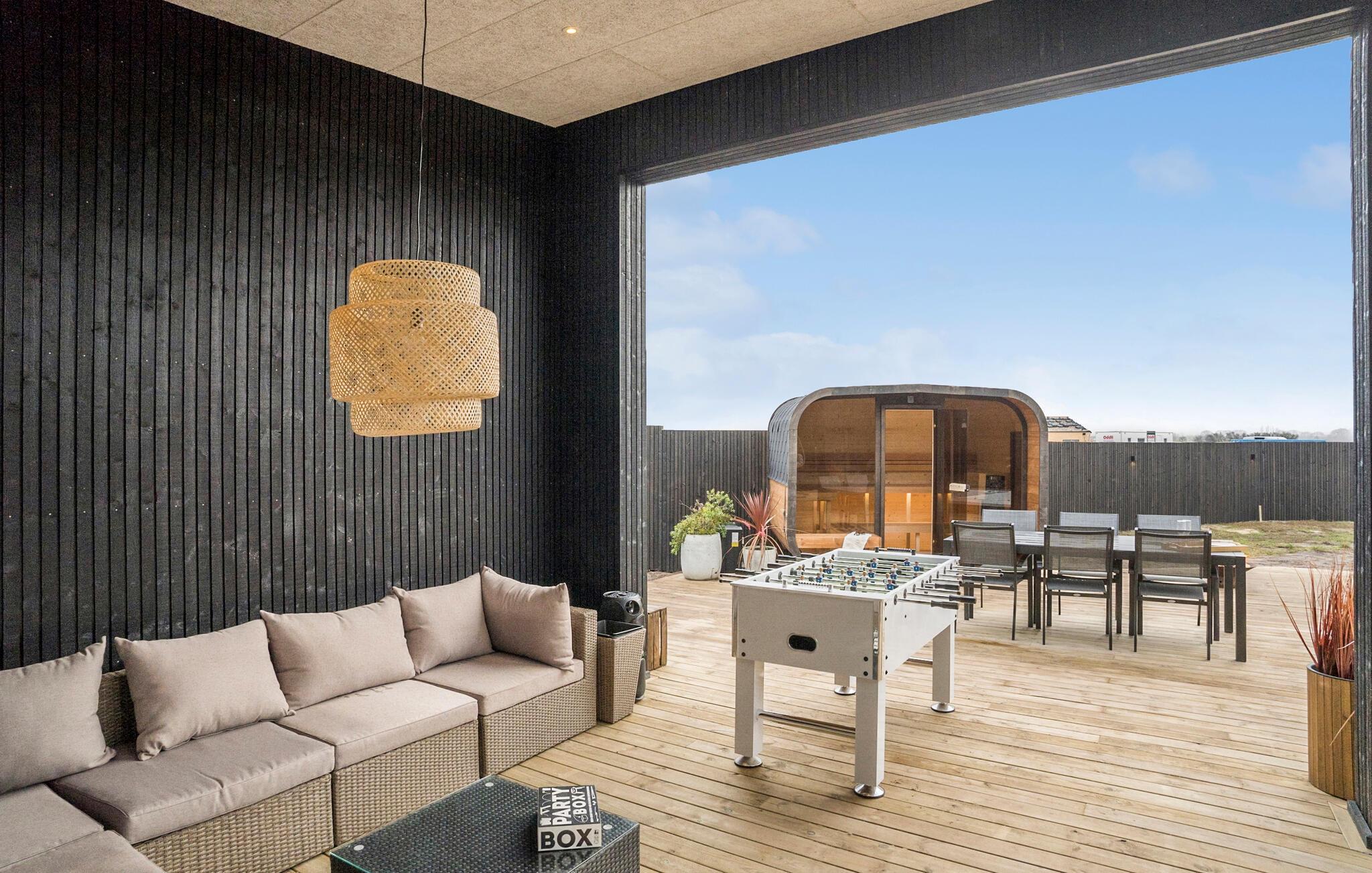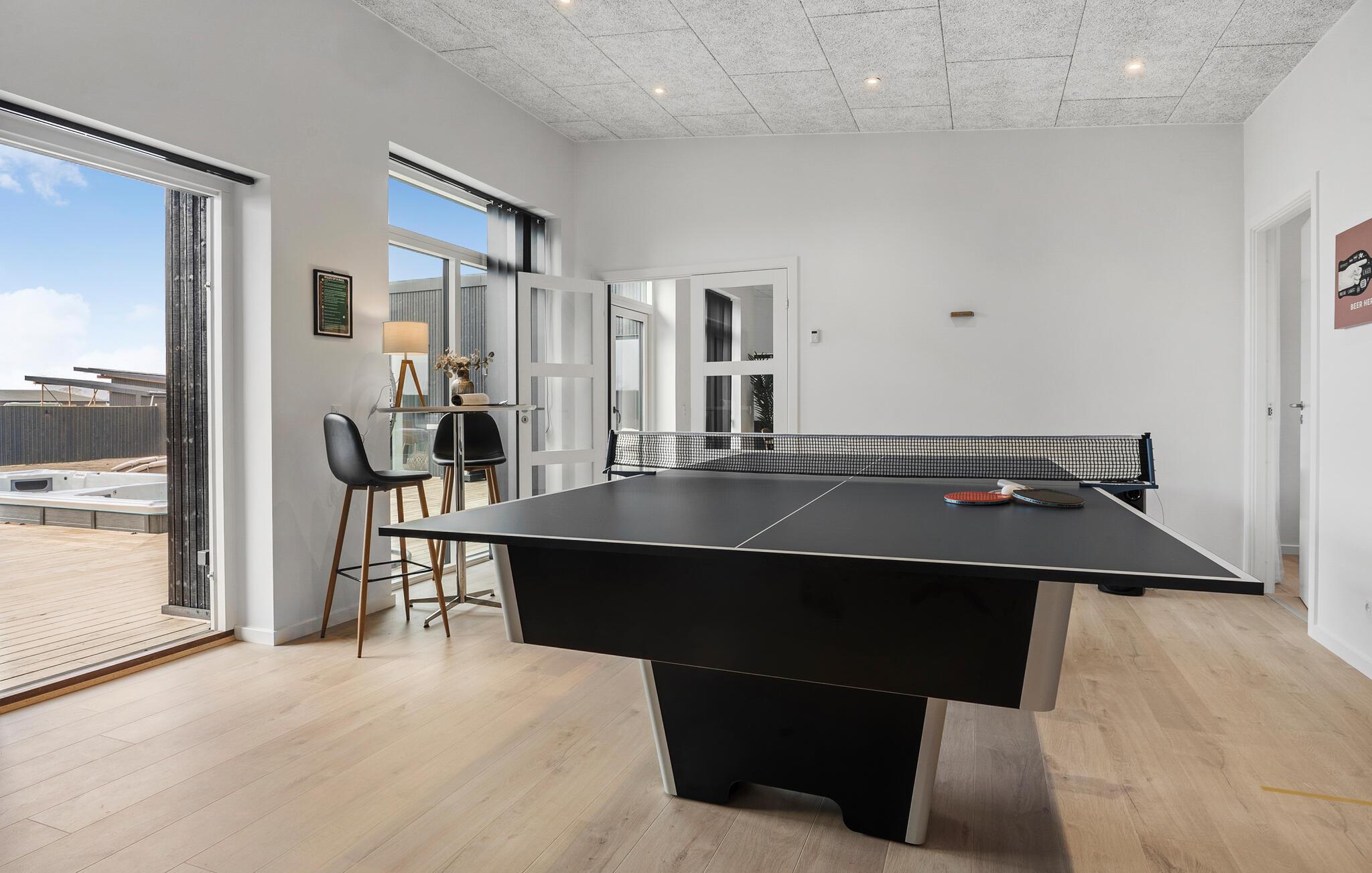 Moderne luksussommerhus i Ebeltoft med pool, spabad, sauna og aktivitetsrum for en afslappende ferie.