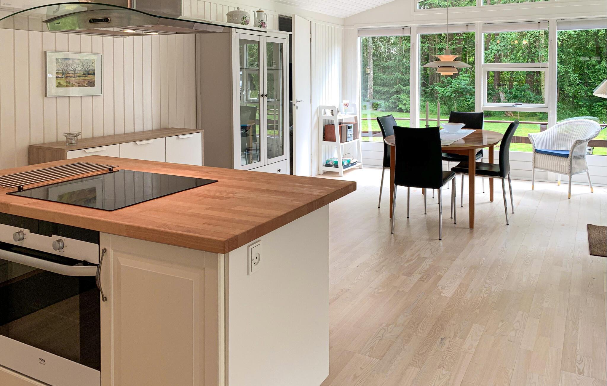 Træd indenfor, og lad jer betage af den hyggelige atmosfære i dette smagfuldt indrettede feriehus. Hyggelige timer foran pejsen og stilfulde måltider med udsigt over de grønne områder venter jer. Nyd et glas vin og hyggelige snakke, mens I laver mad i det indbydende køkken, og stream en spændende film efter en lang dag i den friske luft.